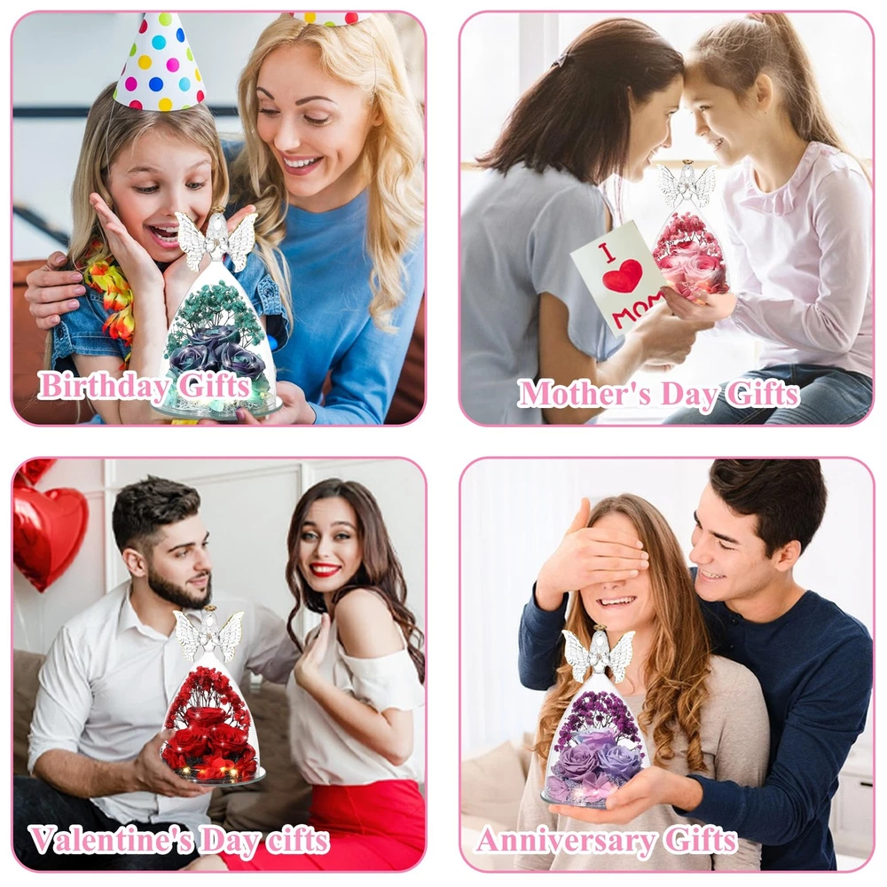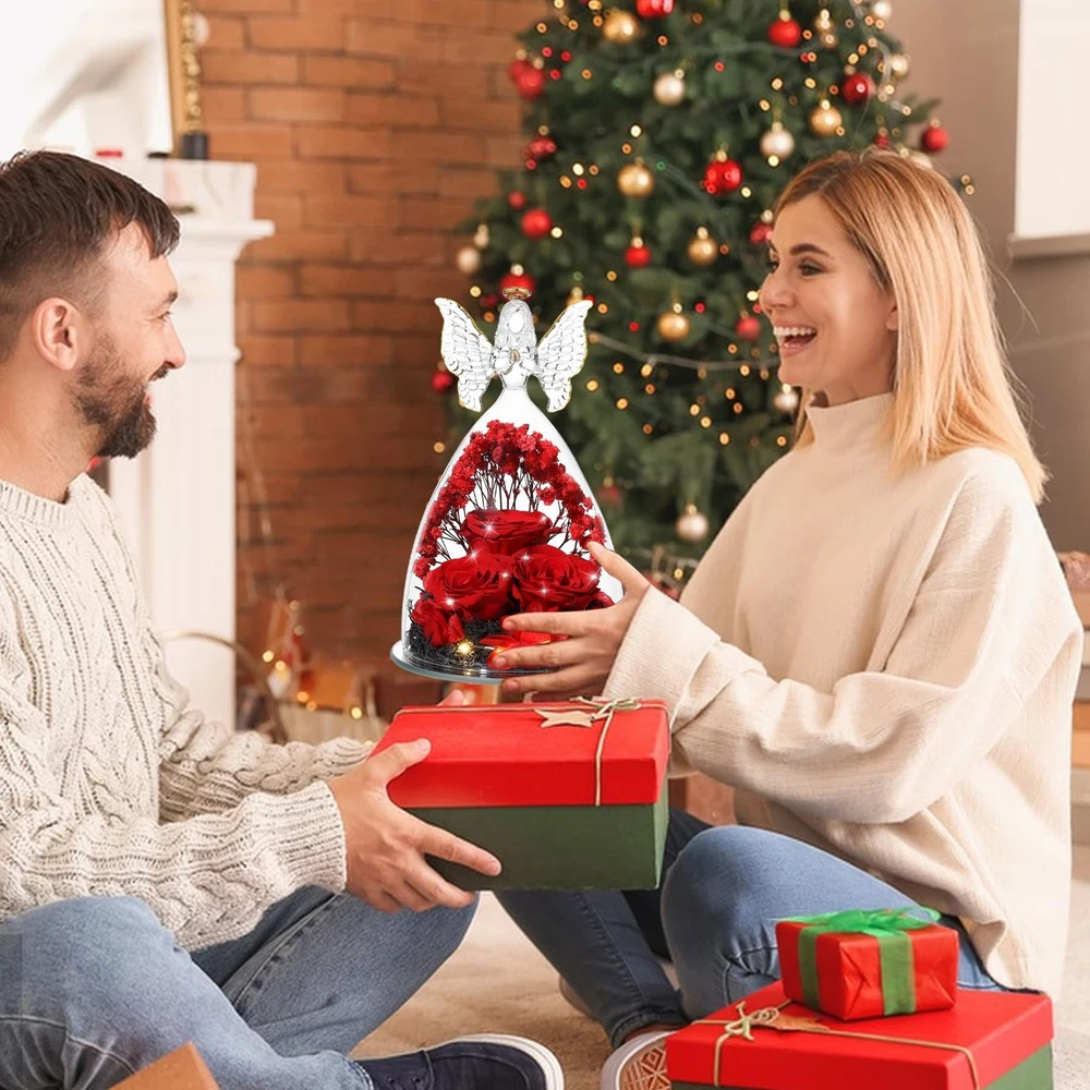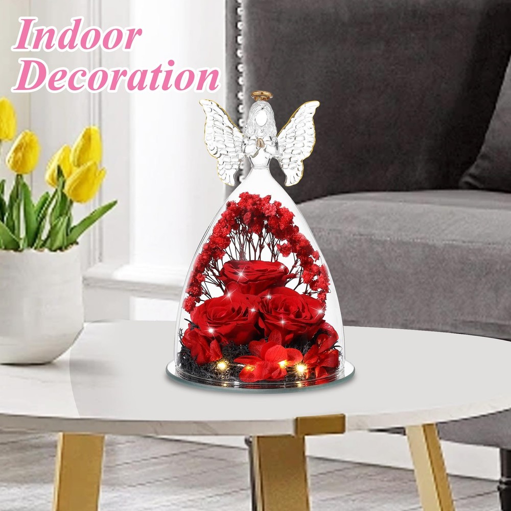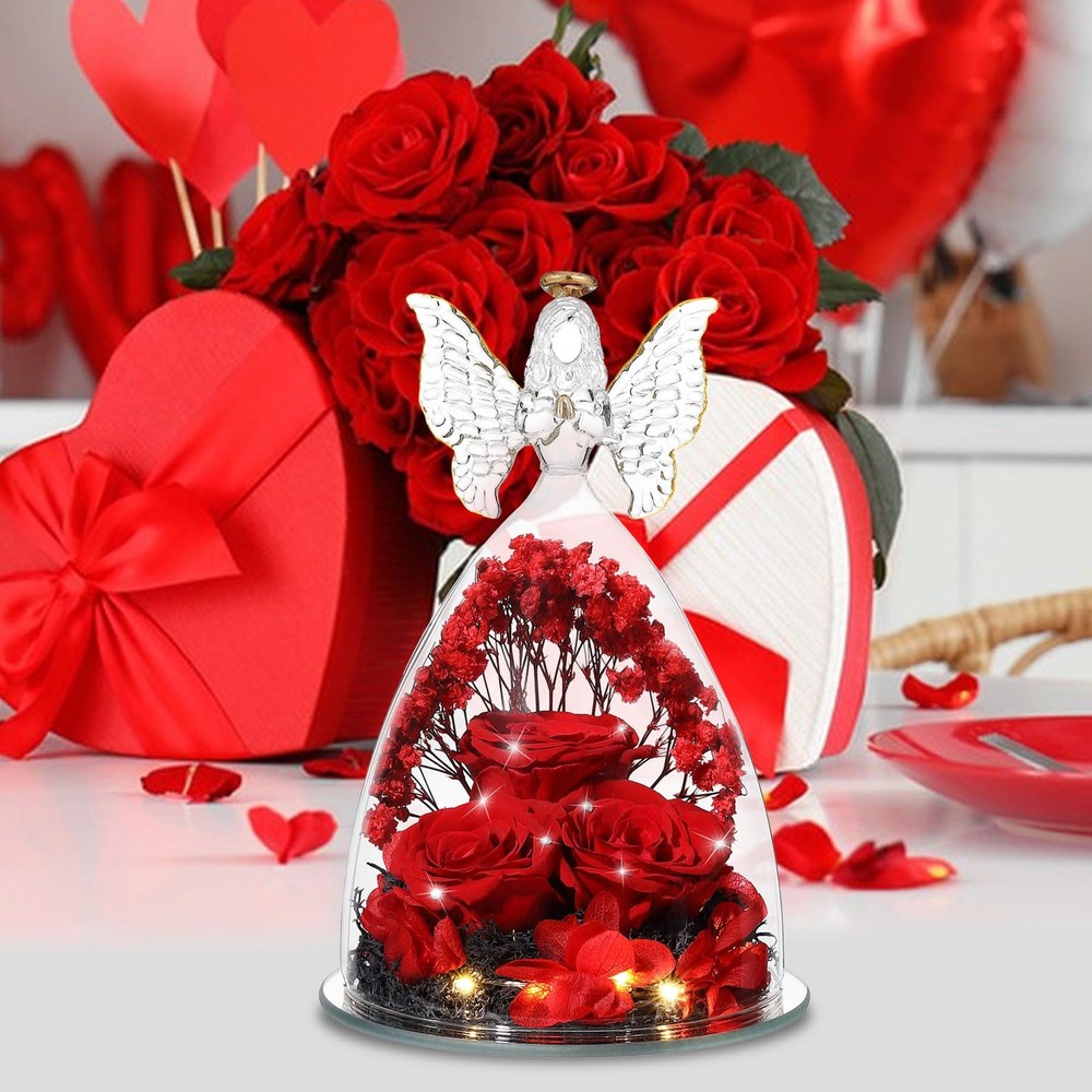 6.7 Inch Height Large Angel Figurines with Real Rose, Preserved Real Flower Rose for Valentine's Day Anniversary Christmas Angel Gifts Roses for Her, Mom, Girlfriend Patented Flower Bouquet and Angel Figurines, Forever Real Three Roses, Rose of love gifts for her: The preserved rose flower that never withers means eternal love, best gift to express love for your loved ones, romantic gift for her; Elegant Angel Figurines,Gift for Women: Angel represents best wishes,warmth and guardian, perfect gifts gifts for girlfriend,wife, fiance,mom Unique Gift,Mothers Day Gift: Angel with Rose is a symbol of love and best wishes, the angel with preserved real flower rose will be a lovely gift for Valentine's Day,Thanksgiving, Christmas, birthday, Mother's Day,anniversaries, or any other special occasions and festivals, which will show your eternal love for him or her. 【What you get】Beauty Angel Figurines with Real Rose inside,Gift Card,Gift Box,Gift for Angel Lovers and Rose Lovers,No Women Would Refuse a Gift with Love and Blessing Which Our Angel Rose Represents; Large Size,Patented Flower Bouquet Design: The diameter of the angel is 11 cm (4.33 inches) and the height is 17 cm (6.7 inches),We are the only one with Large Angels, Also got patent for the Flower Bouquet Design;