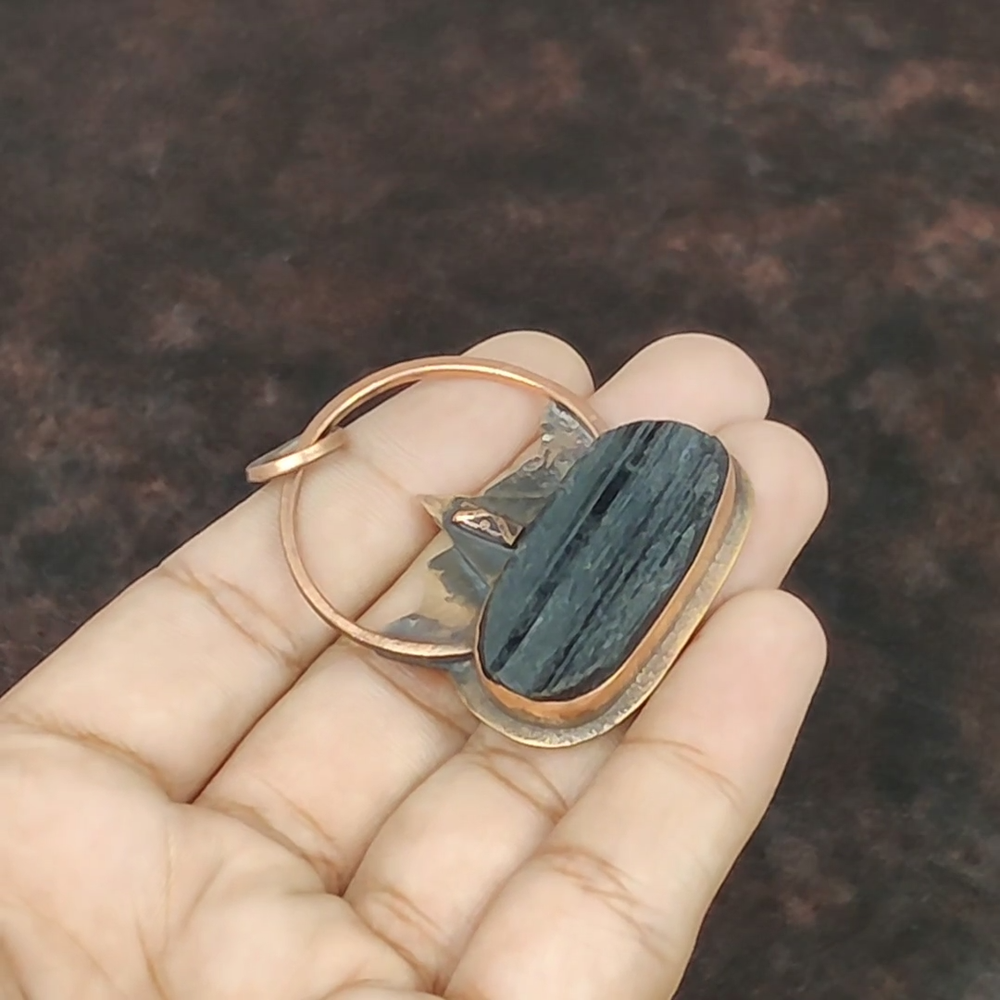 Note : Due to the natural formation of this gemstone. Slight variation in design and color are to be expected. Welcome to Royalamericans Mothers day Sale Copper Oval Natural Black Tourmaline Rough Art Deco Pendant Handmade Pendant, Wire Wrapped Pendant, Wire Wrapped Jewelry, Copper Pendant, Copper Wire Pendant, Wrapped Jewelry, Wire Wrap Pendant, Wire Wrap Jewelry SKU : WP-123 Gemstone : Black Tourmaline Rough Stone Shape : Oval Metal Purity : Unknown Copper Length : 53 Millimeters Width : 40 Millimeters Copper has been used for jewelry making for thousands of years, dating back to ancient civilizations such as the Egyptians, Romans, and Aztecs. Copper was valued for its beauty, versatility, and durability, and was often used to make everything from jewelry and coins to cookware and tools. In addition to its historical significance, copper jewelry also offers several benefits. Copper is a natural conductor of heat and electricity, which makes it ideal for energy healing and therapeutic purposes. Wearing copper jewelry is believed to have various health benefits, such as improving circulation, reducing inflammation, and boosting the immune system. Some people also believe that copper jewelry has the ability to balance energy and improve mood. For Mother's Day Gift For Father's Day Gift For Promise For Valentine's Day For Halloween Party For Christmas Day Gift For New Year Party For Mom For Her If you can't find the information you need or need some advice for your design? Feel free to contact us. We are fast to reply :) All our work is made by hand with Love and Care in our workshop Thank you so much for visiting and hope you enjoy shopping with us Royalamericans is committed to delivering the best quality sterling silver jewelry to customers. As a handmade jewelry manufacturer, we offer an extensive selection of copper gemstone jewelry that showcases the brilliance of our craftsmanship. We are an experienced handmade jewelry supplier with expertise in embellishing gemstones to suit every style. We offer you the liberty to create your jewelry ensemble with sparkling, earthy, and pure gemstones. Our Talented artisans masterfully handcraft each piece of jewelry you see here. Our pieces are made with genuine gemstones.