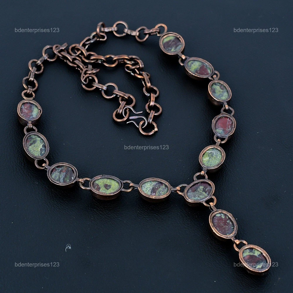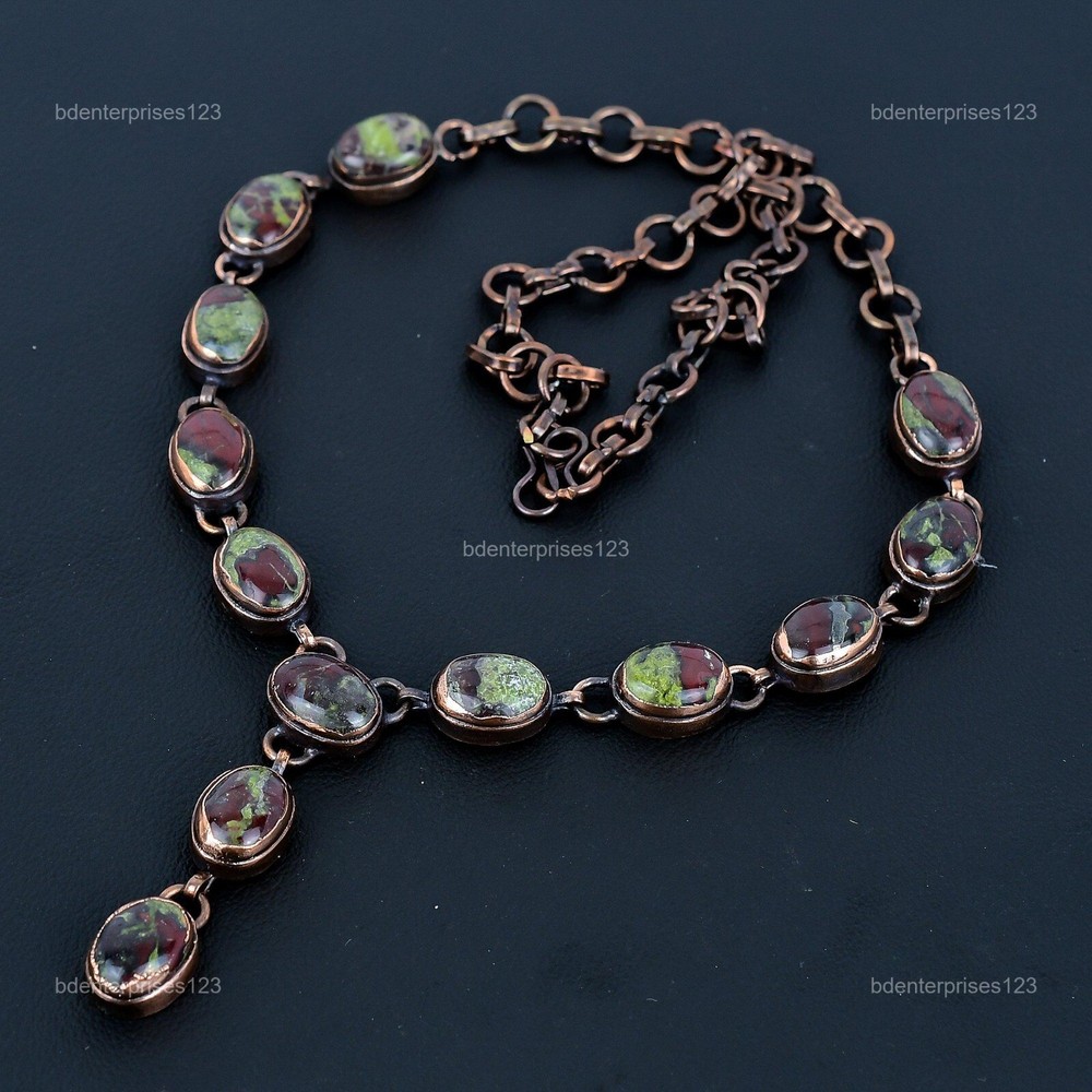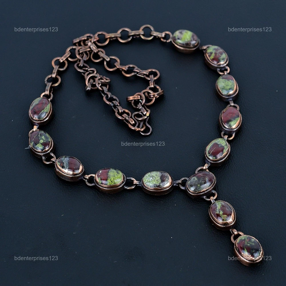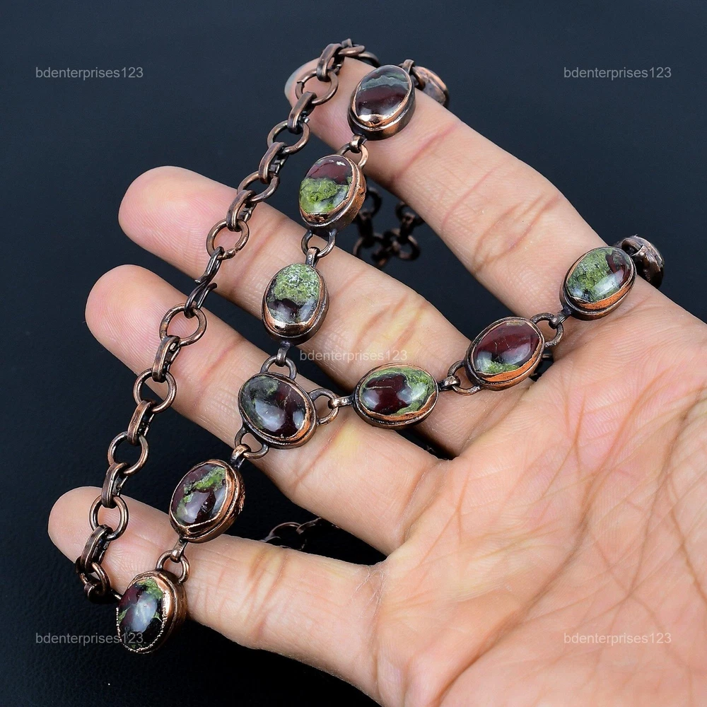 Signed: Yes Style: Chain Number of Gemstones: As Seen in Picture Type: Necklace Vintage: No Brand: Unbranded Color: Brown Material: Crystal, Gemstone, Stone, Metal, Mineral Main Stone Treatment: Not Enhanced Pendant/Locket Type: Not Applicable Metal Purity: Unknown Country/Region of Manufacture: India Main Stone Color: Green Occasion: Anniversary, Birthday, Engagement, Wedding Features: Adjustable, Engraved, Handcrafted Secondary Stone: No Stone Base Metal: Copper Customized: No Seller Notes: “Handcrafted Gemstone Necklace Jewelry” Main Stone Creation: Natural Seller Warranty: Yes Theme: Beauty, Bohemian, Ethnic, Healing, Love, Luck, Holiday Wholesale: Yes Country of Origin: India Antique: No Metal: Copper Main Stone: Dragon Bloodstone Necklace Length: 20.0 in Cut Grade: Very Good Main Stone Shape: Oval