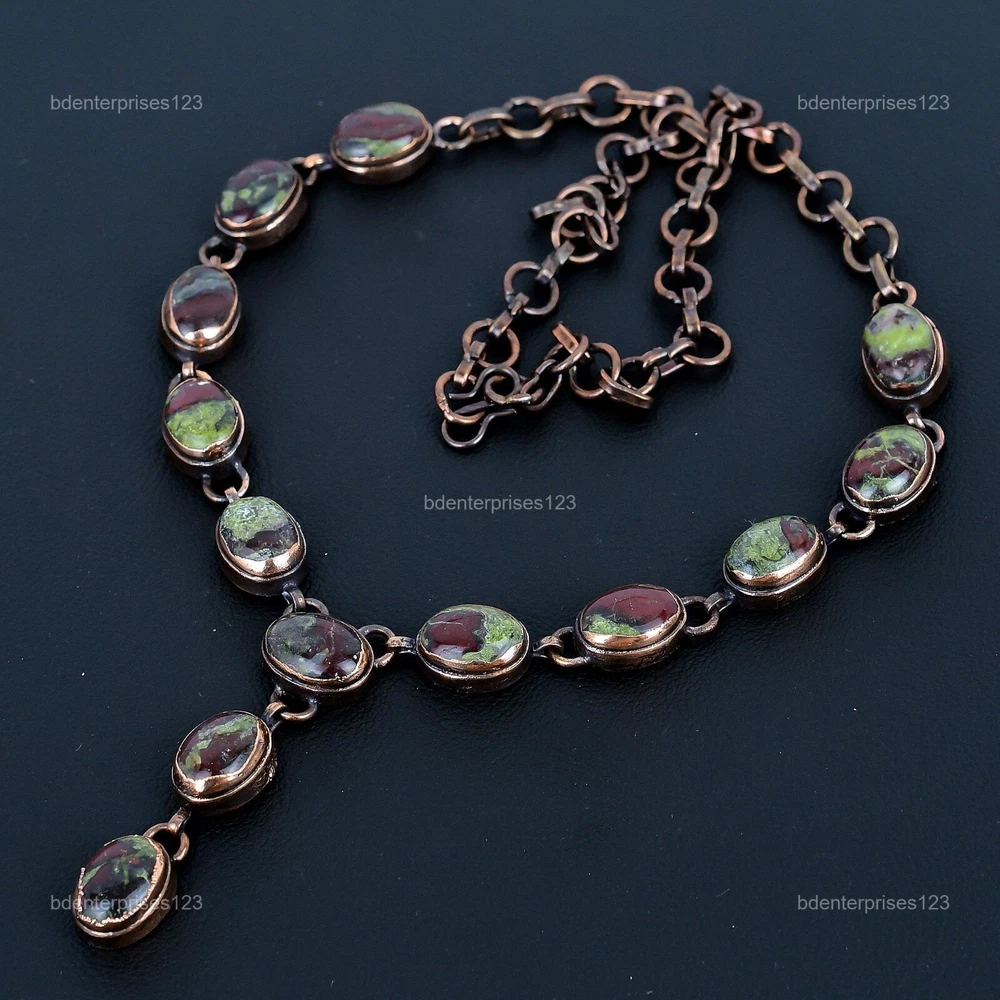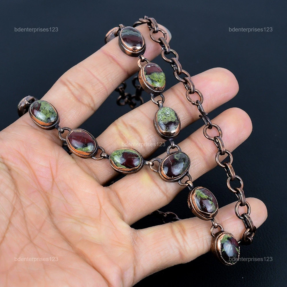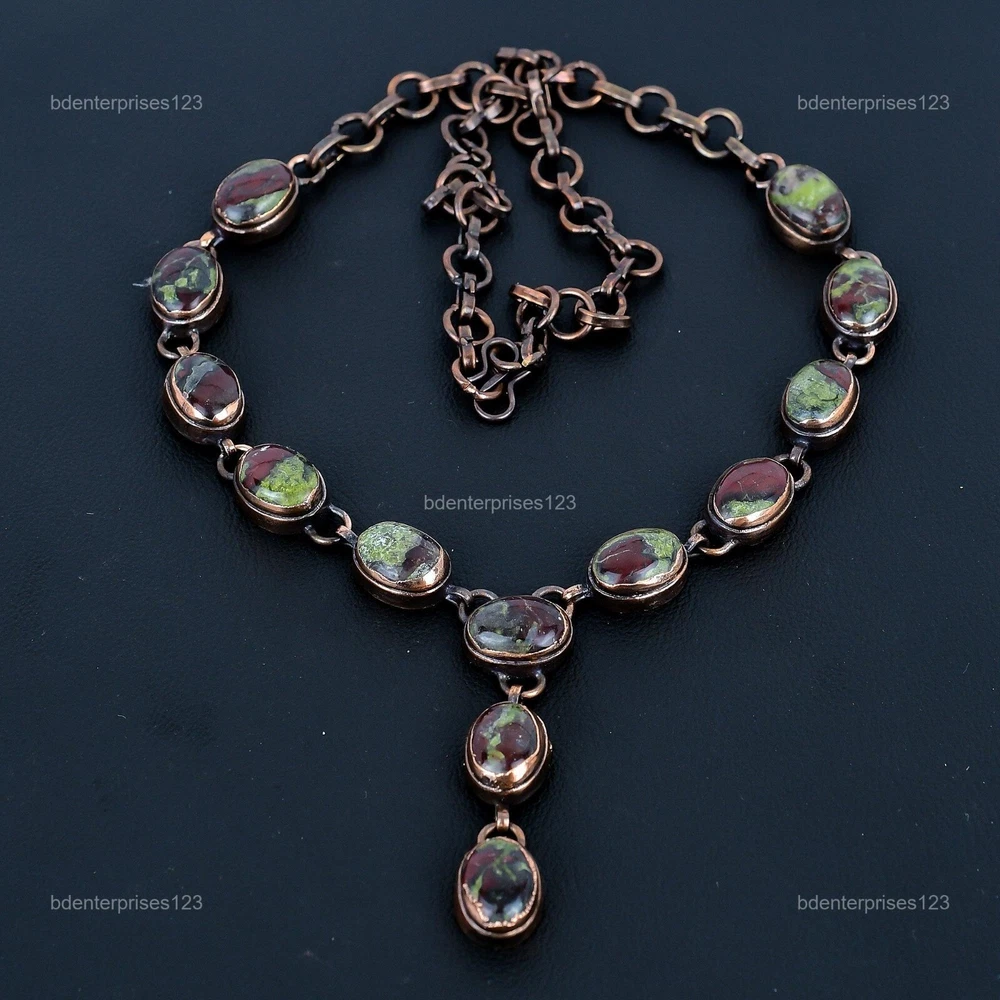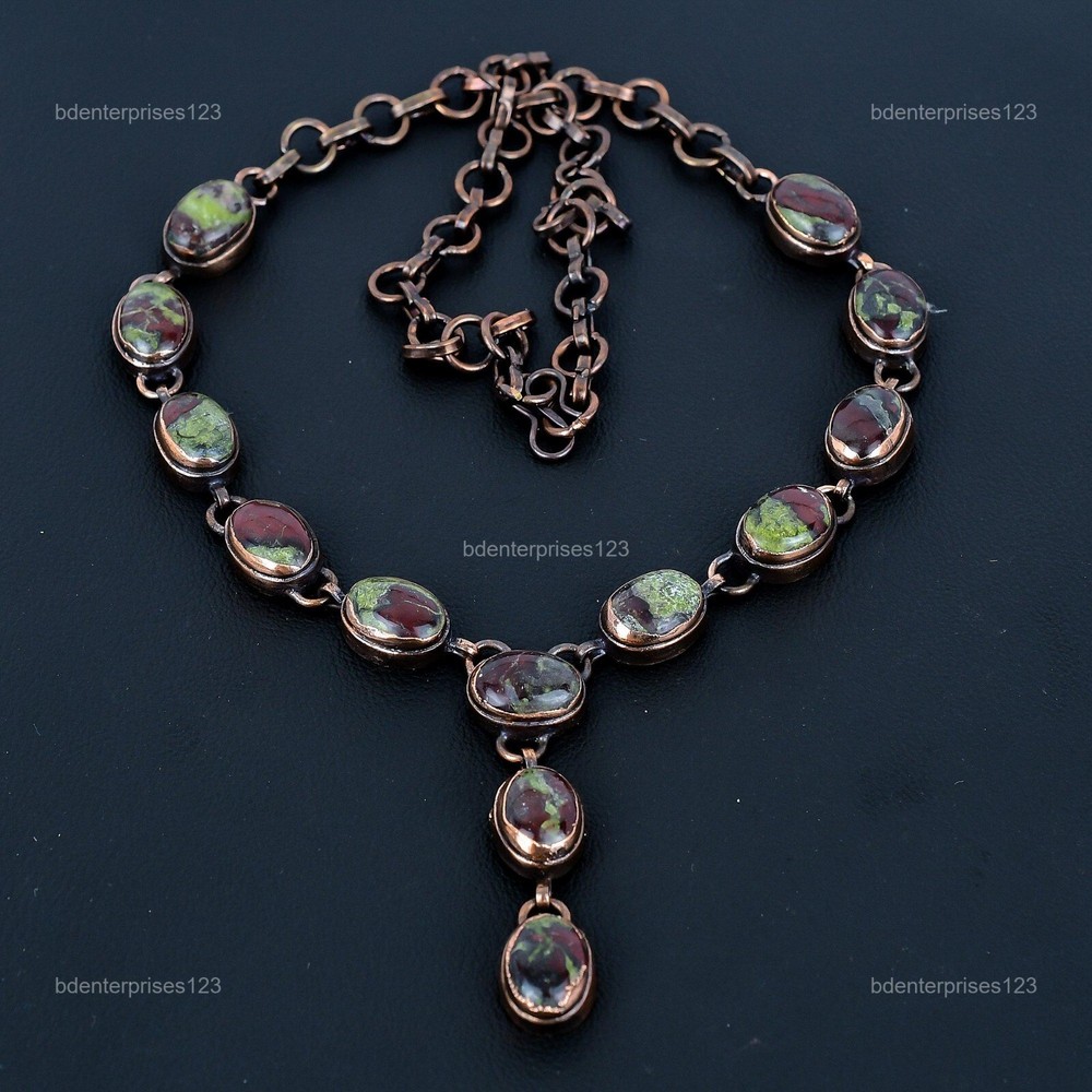 Signed: Yes Style: Chain Number of Gemstones: As Seen in Picture Type: Necklace Vintage: No Brand: Unbranded Color: Brown Material: Crystal, Gemstone, Stone, Metal, Mineral Main Stone Treatment: Not Enhanced Pendant/Locket Type: Not Applicable Metal Purity: Unknown Country/Region of Manufacture: India Main Stone Color: Green Occasion: Anniversary, Birthday, Engagement, Wedding Features: Adjustable, Engraved, Handcrafted Secondary Stone: No Stone Base Metal: Copper Customized: No Seller Notes: “Handcrafted Gemstone Necklace Jewelry” Main Stone Creation: Natural Seller Warranty: Yes Theme: Beauty, Bohemian, Ethnic, Healing, Love, Luck, Holiday Wholesale: Yes Country of Origin: India Antique: No Metal: Copper Main Stone: Dragon Bloodstone Necklace Length: 20.0 in Cut Grade: Very Good Main Stone Shape: Oval