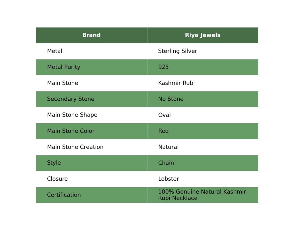 Note : Due to the natural formation of this gemstone. Slight variation in design and color are to be expected. Welcome to Riyajewels Mothers day Sale Natural Kashmir Rubi Artisan Chain Necklace 925 Sterling Silver Handmade Necklace, Sterling Silver Necklace, Kashmir Rubi Necklace, Handcrafted Necklace SKU : PN-1423 Gemstone : Kashmir Rubi Stone Shape : Oval Metal Purity : 925 Sterling Silver Necklace Length : 20 Inches Adjustable : Yes Silver Jewelry is a popular choice for many people due to its unique properties and numerous benefits. Here are some of the key properties and benefits of wearing silver jewelry: Properties: Durability: Silver is a durable metal that can withstand regular wear and tear. Malleability: Silver is highly malleable, which means it can be easily shaped and molded into various designs. Conductivity: Silver is an excellent conductor of heat and electricity. Anti-bacterial: Silver has natural anti-bacterial properties, which can help prevent the growth of harmful bacteria. Benefits: Aesthetic appeal: Silver jewelry is known for its beauty and versatility, and can be worn with a variety of outfits and styles. Hypoallergenic: Silver is generally hypoallergenic, which means it is unlikely to cause an allergic reaction in most people. Healing properties: Some people believe that wearing silver jewelry can help with various physical and emotional conditions, such as arthritis, anxiety, and depression. Spiritual significance: Silver has been used in various cultures for its spiritual and symbolic significance, and wearing silver jewelry can help to connect with these traditions. Investment value: Silver is a precious metal that retains its value over time, and investing in silver jewelry can be a smart financial decision. Overall, silver jewelry offers a unique combination of beauty, durability, and benefits, making it a popular choice for people around the world. For Mother's Day Gift For Father's Day Gift For Promise For Valentine' Day For Halloween Party For Christmas Day Gift For New Year Party For Mom For Her If you can't find the information you need or need some advice for your design? Feel free to contact us. We are fast to reply :) All our work is made by hand with Love and Care in our workshop Thank you so much for visiting and hope you enjoy shopping with us Riyajewels is dedicated to providing customers with high-quality sterling silver jewelry. As a manufacturer of handmade jewelry, we offer an extensive range of silver gemstone jewelry that demonstrates our exceptional craftsmanship. We are skilled in adorning gemstones to complement any style, and we give you the freedom to design your own jewelry collection with dazzling, natural, and genuine gemstones. Our talented craftsmen carefully handcraft each jewelry piece, ensuring that it is unique and made with authentic gemstones.