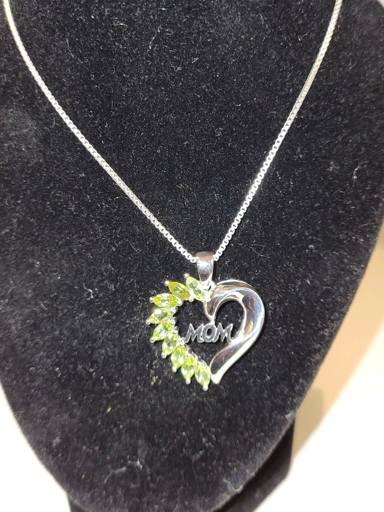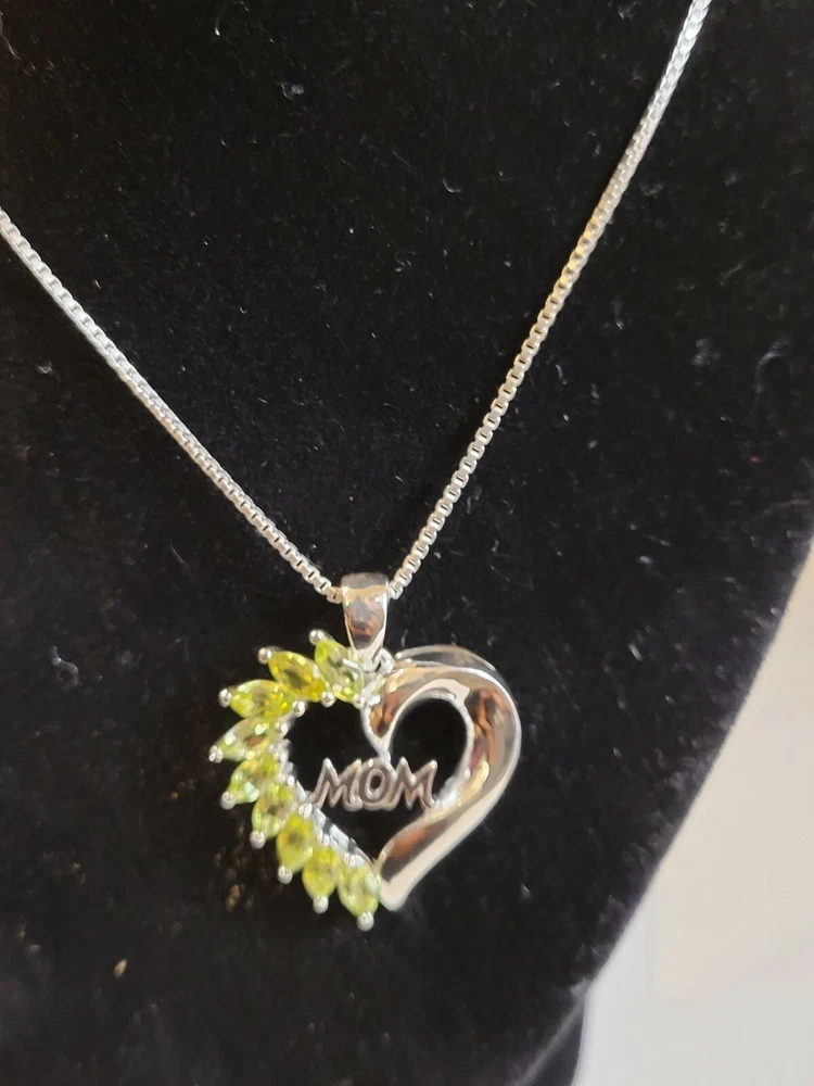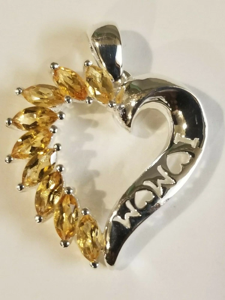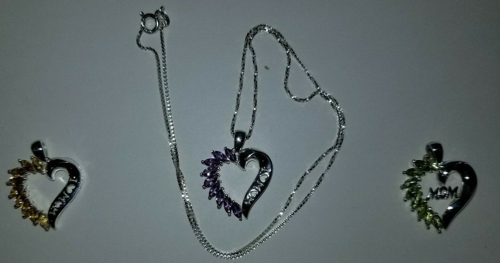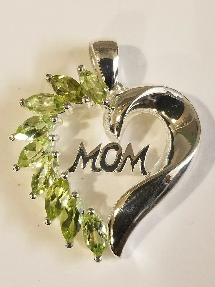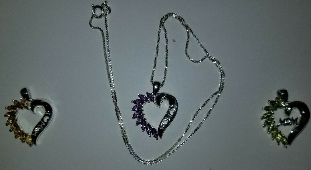 Mothers Day MOM Peridot / Citrine / Amethyst Sterling Silver Heart Pendants ITEM : Pendant METAL : Sterling Silver STONE : Marquise Peridot , Citrine , Amethyst MEASUREMENTS: 25 x 22mm Mothers Day MOM Peridot / Citrine / Amethyst Sterling Silver Heart Pendants. Three different types available, each comes with a silver chain. Limited quantities.