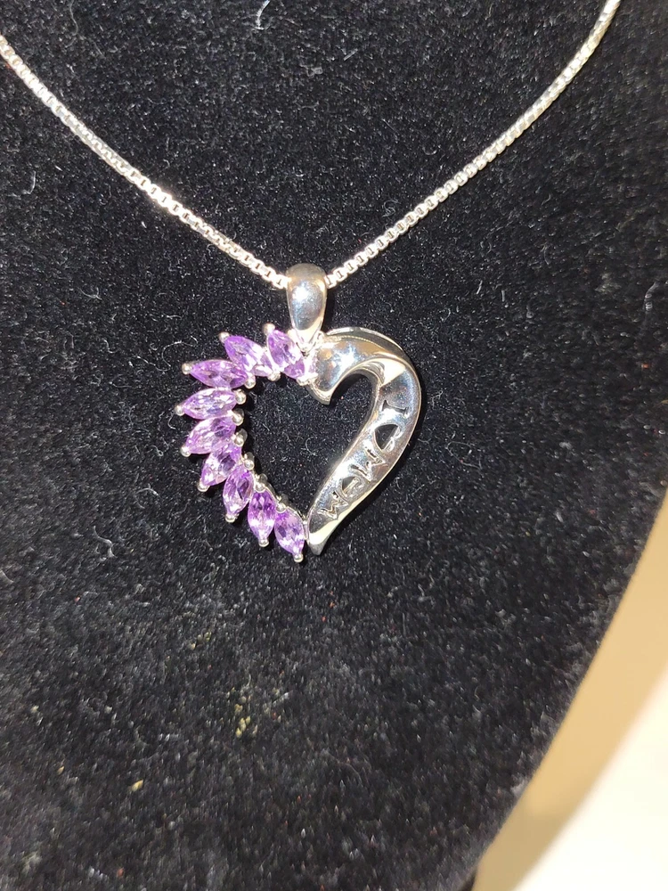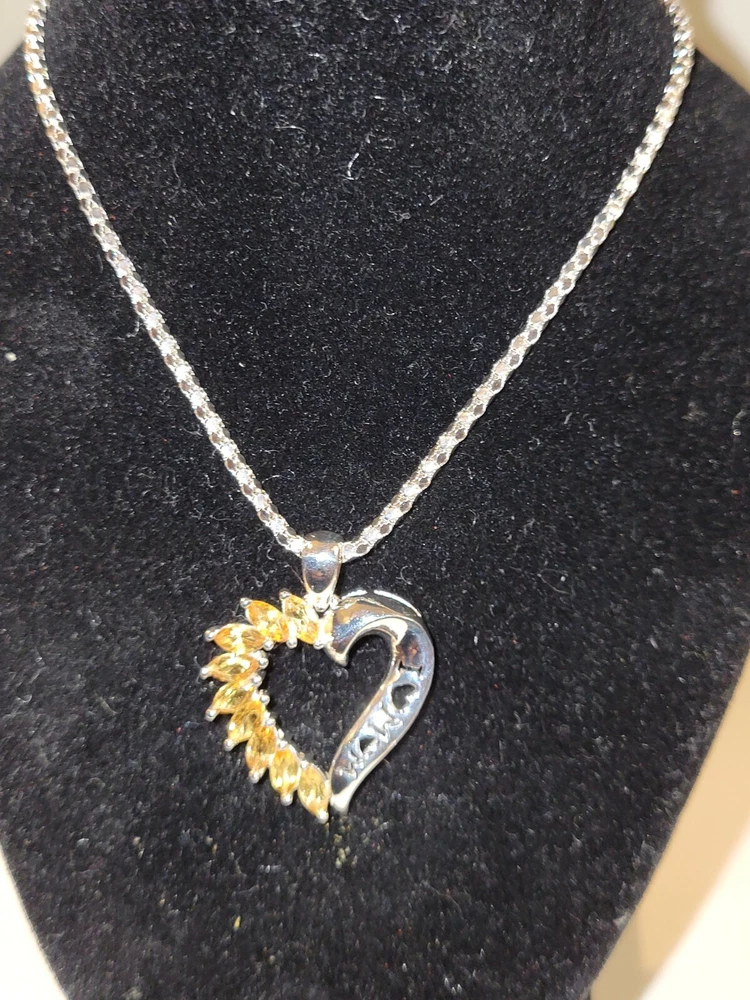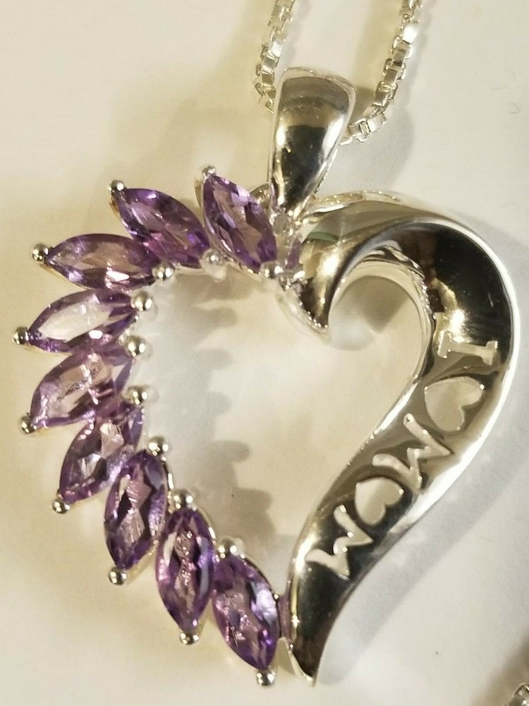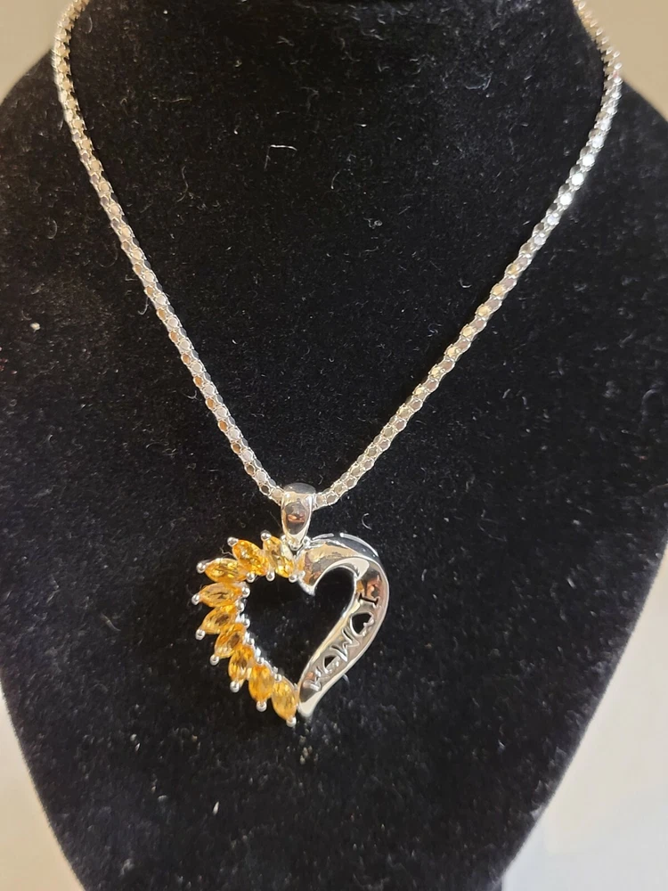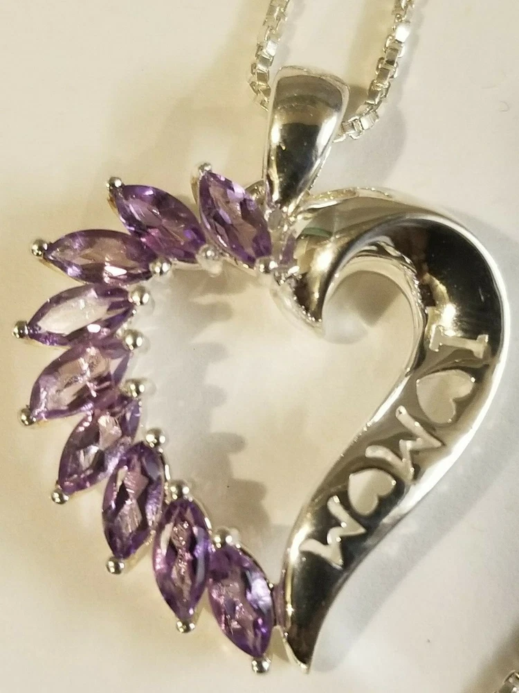 Mothers Day MOM Peridot / Citrine / Amethyst Sterling Silver Heart Pendants ITEM : Pendant METAL : Sterling Silver STONE : Marquise Peridot , Citrine , Amethyst MEASUREMENTS: 25 x 22mm Mothers Day MOM Peridot / Citrine / Amethyst Sterling Silver Heart Pendants. Three different types available, each comes with a silver chain. Limited quantities.