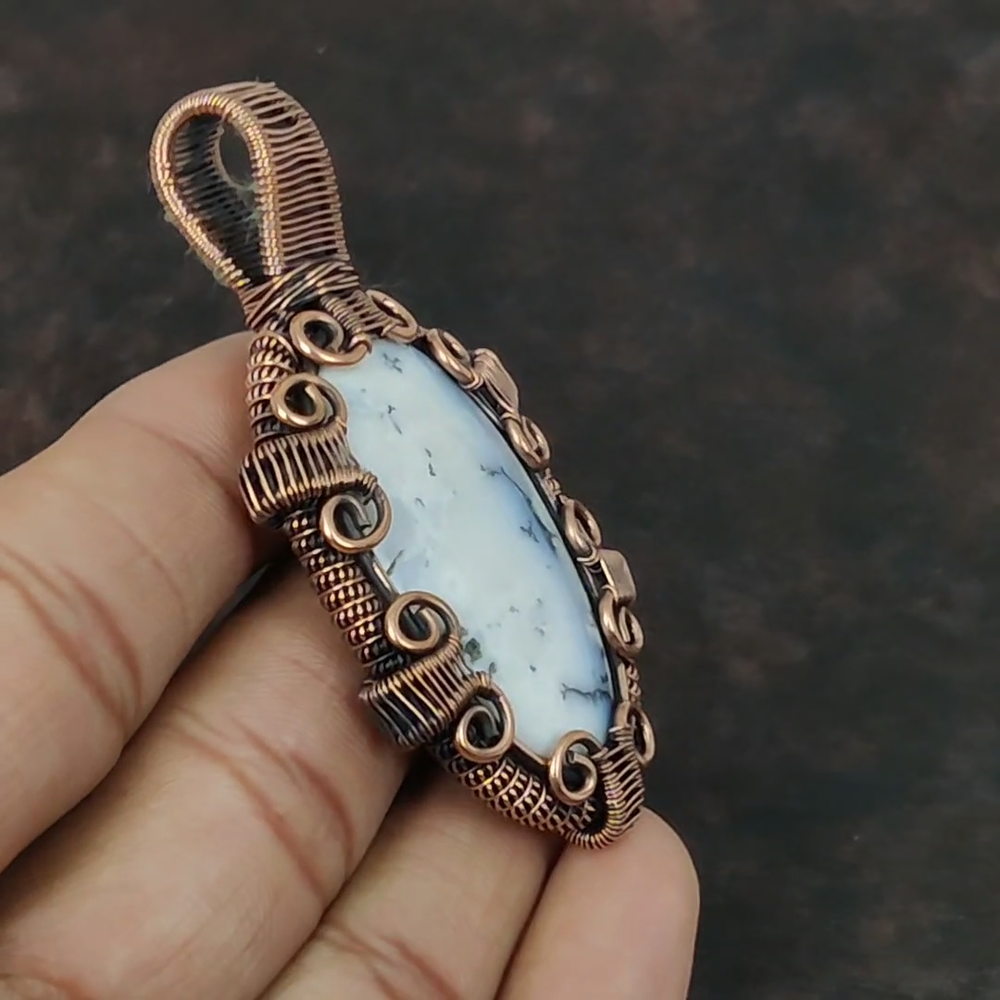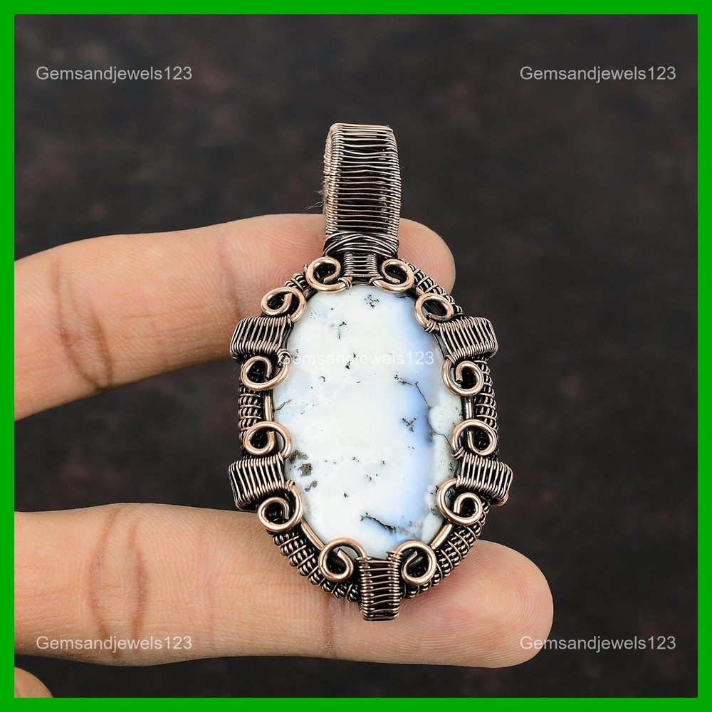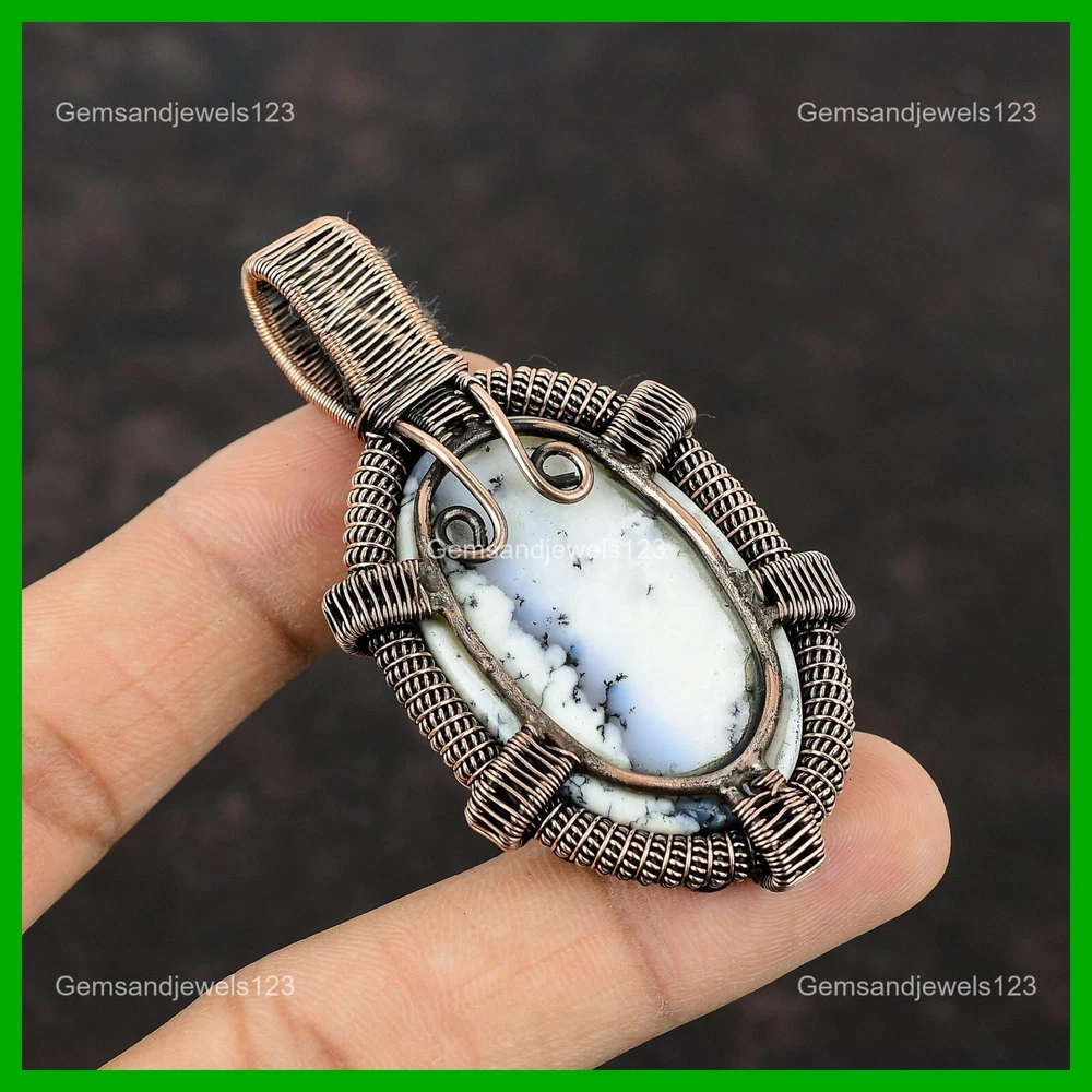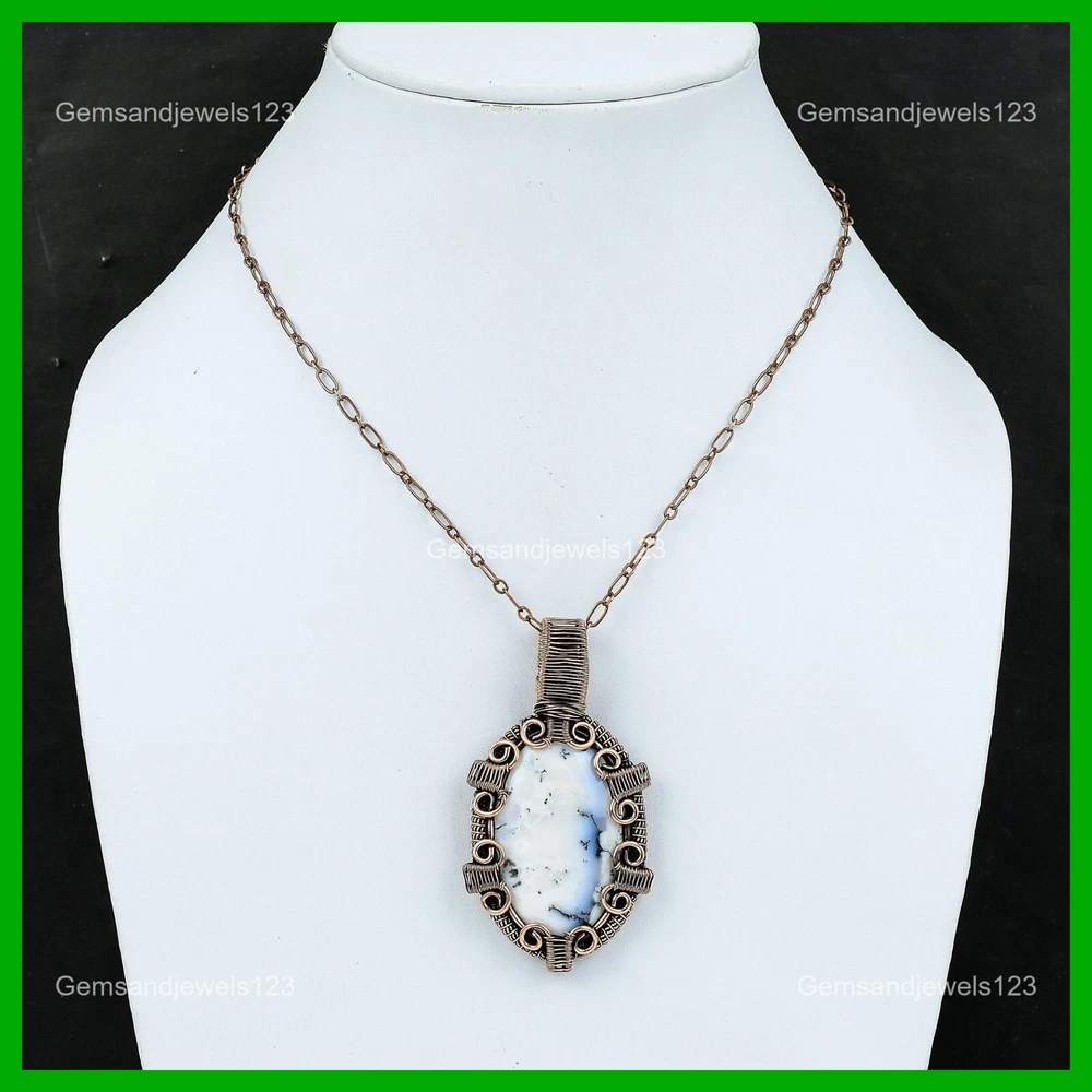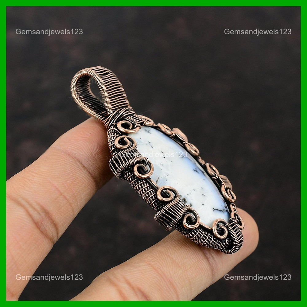 Note : Due to the natural formation of this gemstone. Slight Variation in design and color are to be expected. Welcome to gemsandjewels123 Mothers day Deal Copper Dendrite Opal Stone Wire Wrapped Wedding Pendant Jewelry Handmade Pendant, Wire Wrapped Pendant, Wire Wrapped Jewelry, Copper Pendant, Copper Wire Pendant, Wrapped Jewelry, Wire Wrap Pendant, Wire Wrap Jewelry SKU : VFWP-1107 Gemstone : Dendrite Opal Stone Shape : Oval Metal Purity : Unknown Copper Length : 72 Millimeters Width : 39 Millimeters Copper has been used for jewelry making for thousands of years, dating back to ancient civilizations such as the Egyptians, Romans, and Aztecs. Copper was valued for its beauty, versatility, and durability, and was often used to make everything from jewelry and coins to cookware and tools. In addition to its historical significance, copper jewelry also offers several benefits. Copper is a natural conductor of heat and electricity, which makes it ideal for energy healing and therapeutic purposes. Wearing copper jewelry is believed to have various health benefits, such as improving circulation, reducing inflammation, and boosting the immune system. Some people also believe that copper jewelry has the ability to balance energy and improve mood. For Mother's Day Gift For Father's Day Gift For Promise For Valentine's Day For Halloween Party For Christmas Day Gift For New Year Party For Mom For Her If you can't find the information you need or need some advice for your design? Feel free to contact us. We are fast to reply :) All our work is made by hand with Love and Care in our workshop Thank you so much for visiting and hope you enjoy shopping with us gemsandjewels123 is committed to delivering the best quality sterling silver jewelry to customers. As a handmade jewelry manufacturer, we offer an extensive selection of copper gemstone jewelry that showcases the brilliance of our craftsmanship. We are an experienced handmade jewelry supplier with expertise in embellishing gemstones to suit every style. We offer you the liberty to create your jewelry ensemble with sparkling, earthy, and pure gemstones. Our Talented artisans masterfully handcraft each piece of jewelry you see here. Our pieces are made with genuine gemstones. The one-of-a-kind piece you see here is the same exact piece you will receive.