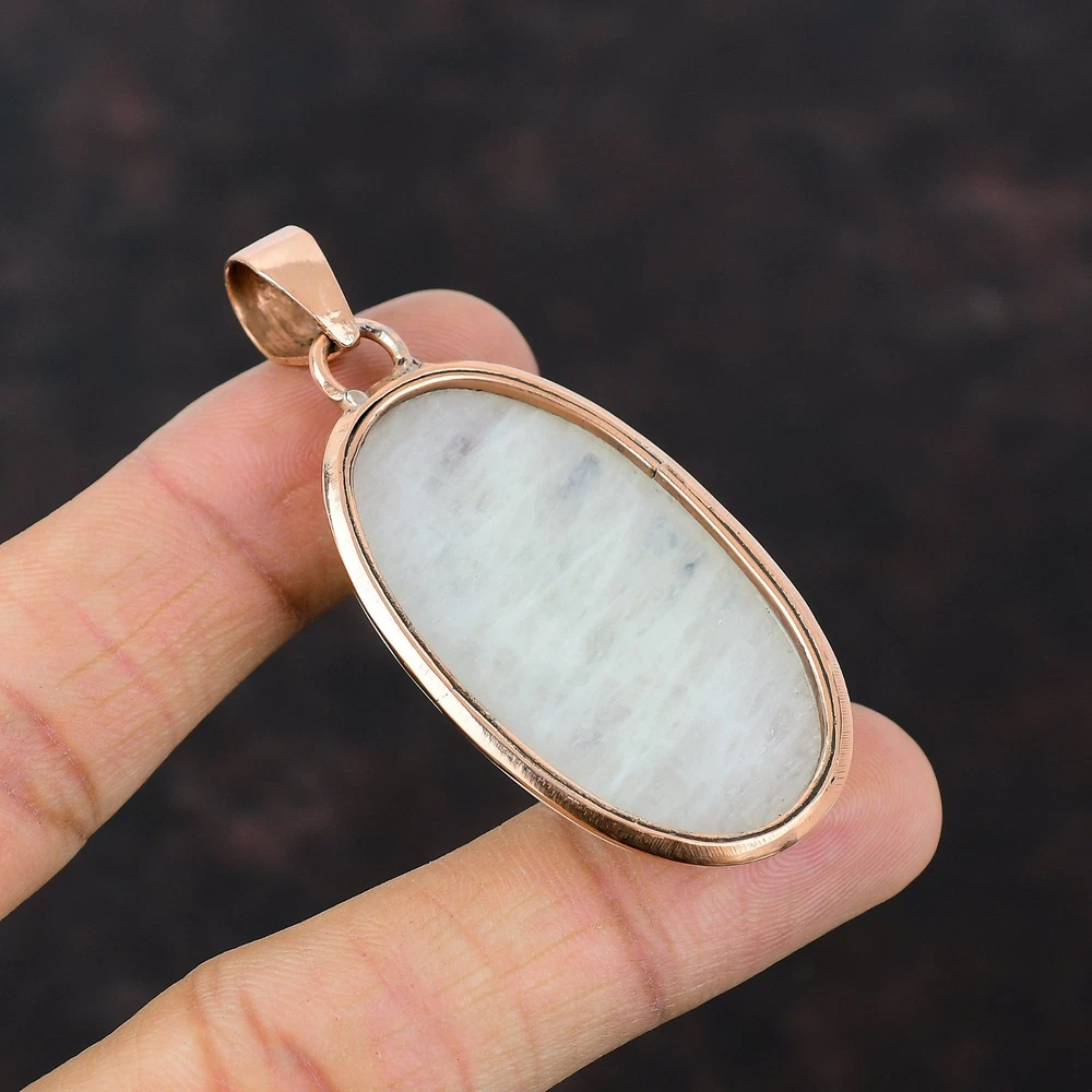 Note : Due to the natural formation of this gemstone. Slight variation in design and color are to be expected. Welcome to Kalka Stones Copper Oval Rainbow Moonstone Stone Crown Chakra Engagement Daughter New Pendant Handmade Pendant, Wire Wrapped Pendant, Wire Wrapped Jewelry, Copper Pendant, Copper Wire Pendant, Wrapped Jewelry, Wire Wrap Pendant, Wire Wrap Jewelry SKU : VWP-1 Gemstone : Rainbow Moonstone Stone Shape : Oval Metal Purity : Unknown Copper Length : 63 Millimeters Width : 29 Millimeters Copper has been used for jewelry making for thousands of years, dating back to ancient civilizations such as the Egyptians, Romans, and Aztecs. Copper was valued for its beauty, versatility, and durability, and was often used to make everything from jewelry and coins to cookware and tools. In addition to its historical significance, copper jewelry also offers several benefits. Copper is a natural conductor of heat and electricity, which makes it ideal for energy healing and therapeutic purposes. Wearing copper jewelry is believed to have various health benefits, such as improving circulation, reducing inflammation, and boosting the immune system. Some people also believe that copper jewelry has the ability to balance energy and improve mood. For Mother's Day Gift For Father's Day Gift For Promise For Valentine's Day For Halloween Party For Christmas Day Gift For New Year Party For Mom For Her If you can't find the information you need or need some advice for your design? Feel free to contact us. We are fast to reply :) All our work is made by hand with Love and Care in our workshop Thank you so much for visiting and hope you enjoy shopping with us Kalka Stones is committed to delivering the best quality jewelry to customers. As a handmade jewelry manufacturer, we offer an extensive selection of copper gemstone jewelry that showcases the brilliance of our craftsmanship. We are an experienced handmade jewelry supplier with expertise in embellishing gemstones to suit every style. We offer you the liberty to create your jewelry ensemble with sparkling, earthy, and pure gemstones. Our Talented artisans masterfully handcraft each piece of jewelry you see here. Our pieces are made with genuine gemstones.