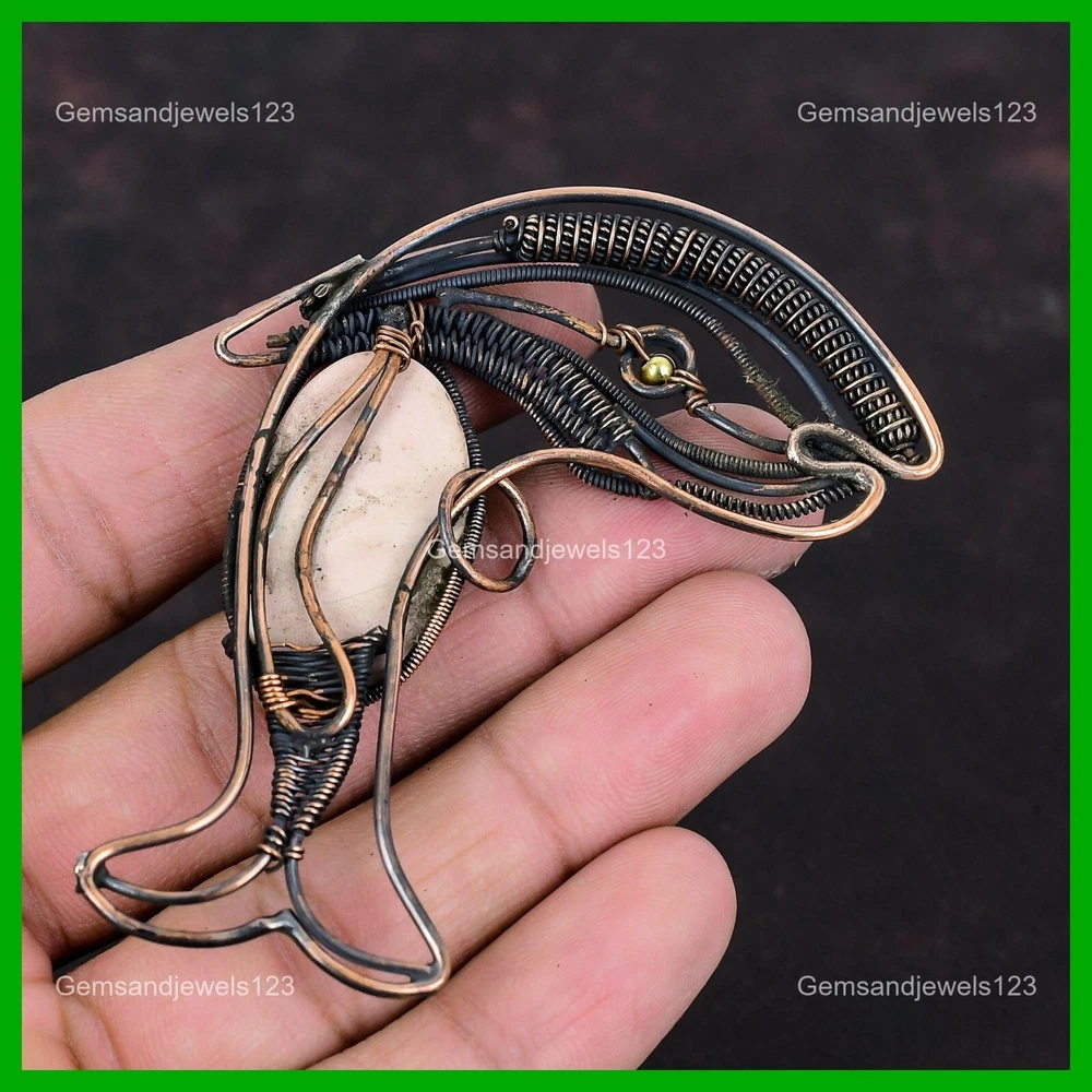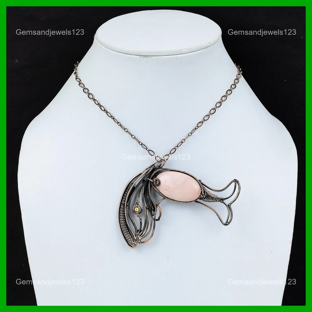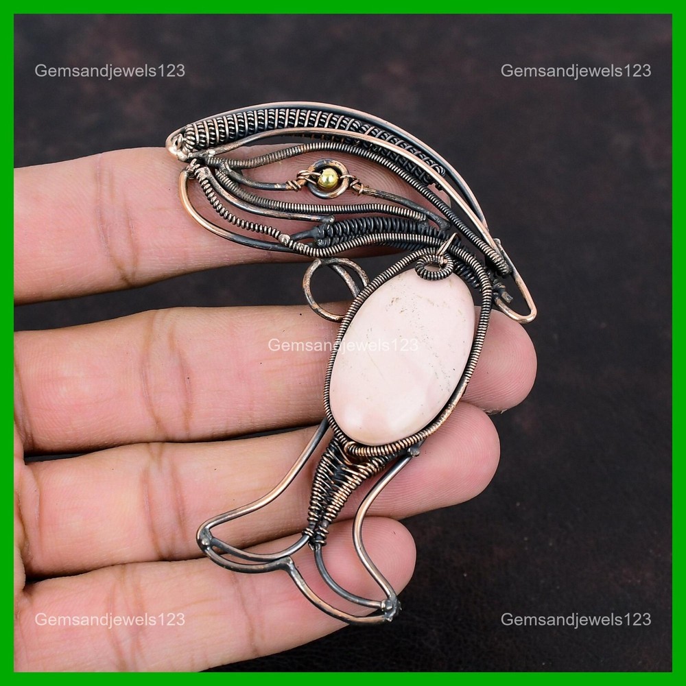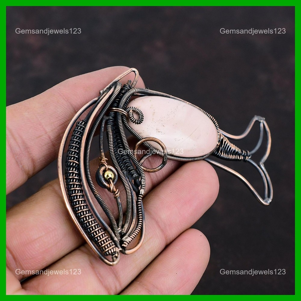 Note : Due to the natural formation of this gemstone. Slight Variation in design and color are to be expected. Welcome to gemsandjewels123 Mothers day Deal Oval Pink Opal Stone Copper Wire Wrapped Fish Pendant Jewelry Handmade Pendant, Wire Wrapped Pendant, Wire Wrapped Jewelry, Copper Pendant, Copper Wire Pendant, Wrapped Jewelry, Wire Wrap Pendant, Wire Wrap Jewelry SKU : VFWP-4233 Gemstone : Pink Opal Stone Shape : Oval Metal Purity : Unknown Copper Length : 66 Millimeters Width : 88 Millimeters Copper has been used for jewelry making for thousands of years, dating back to ancient civilizations such as the Egyptians, Romans, and Aztecs. Copper was valued for its beauty, versatility, and durability, and was often used to make everything from jewelry and coins to cookware and tools. In addition to its historical significance, copper jewelry also offers several benefits. Copper is a natural conductor of heat and electricity, which makes it ideal for energy healing and therapeutic purposes. Wearing copper jewelry is believed to have various health benefits, such as improving circulation, reducing inflammation, and boosting the immune system. Some people also believe that copper jewelry has the ability to balance energy and improve mood. For Mother's Day Gift For Father's Day Gift For Promise For Valentine's Day For Halloween Party For Christmas Day Gift For New Year Party For Mom For Her If you can't find the information you need or need some advice for your design? Feel free to contact us. We are fast to reply :) All our work is made by hand with Love and Care in our workshop Thank you so much for visiting and hope you enjoy shopping with us gemsandjewels123 is committed to delivering the best quality sterling silver jewelry to customers. As a handmade jewelry manufacturer, we offer an extensive selection of copper gemstone jewelry that showcases the brilliance of our craftsmanship. We are an experienced handmade jewelry supplier with expertise in embellishing gemstones to suit every style. We offer you the liberty to create your jewelry ensemble with sparkling, earthy, and pure gemstones. Our Talented artisans masterfully handcraft each piece of jewelry you see here. Our pieces are made with genuine gemstones. The one-of-a-kind piece you see here is the same exact piece you will receive.
