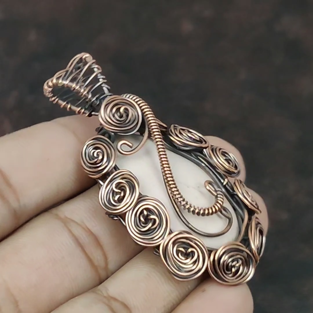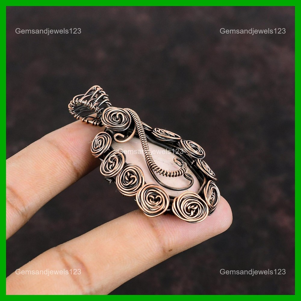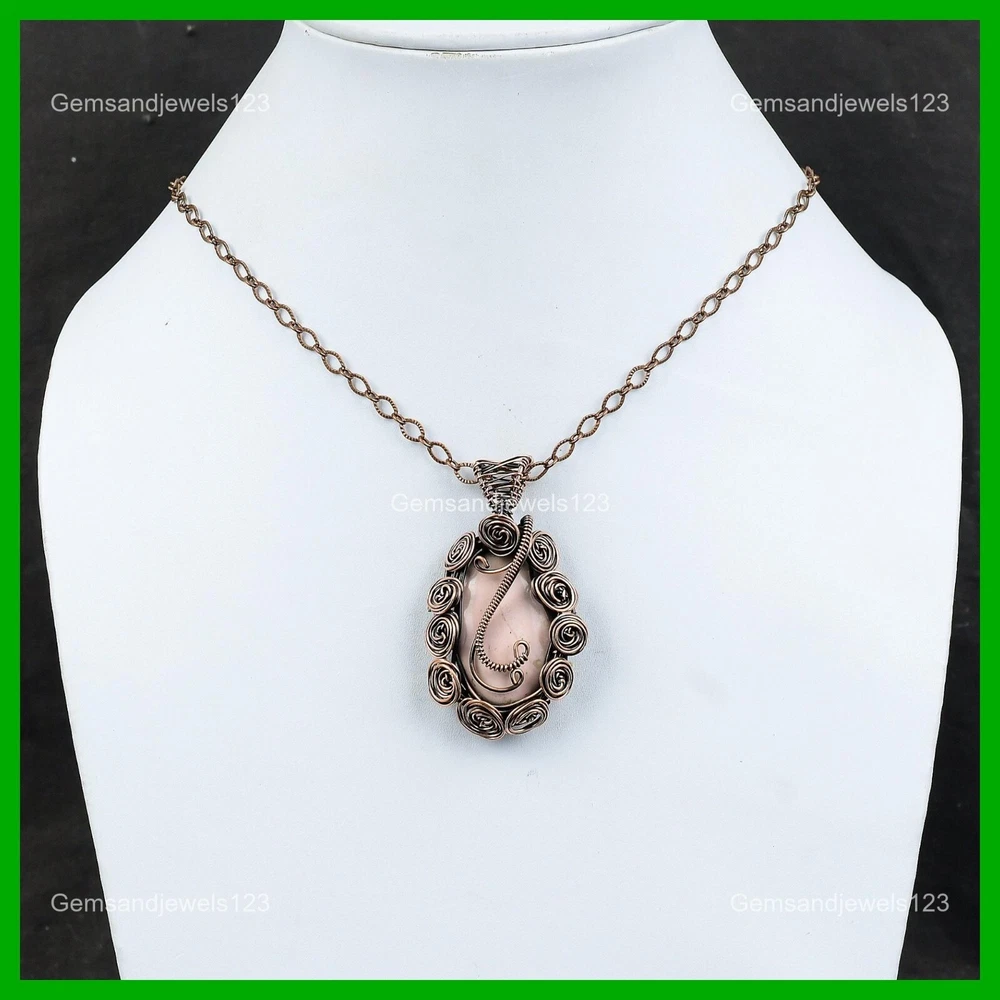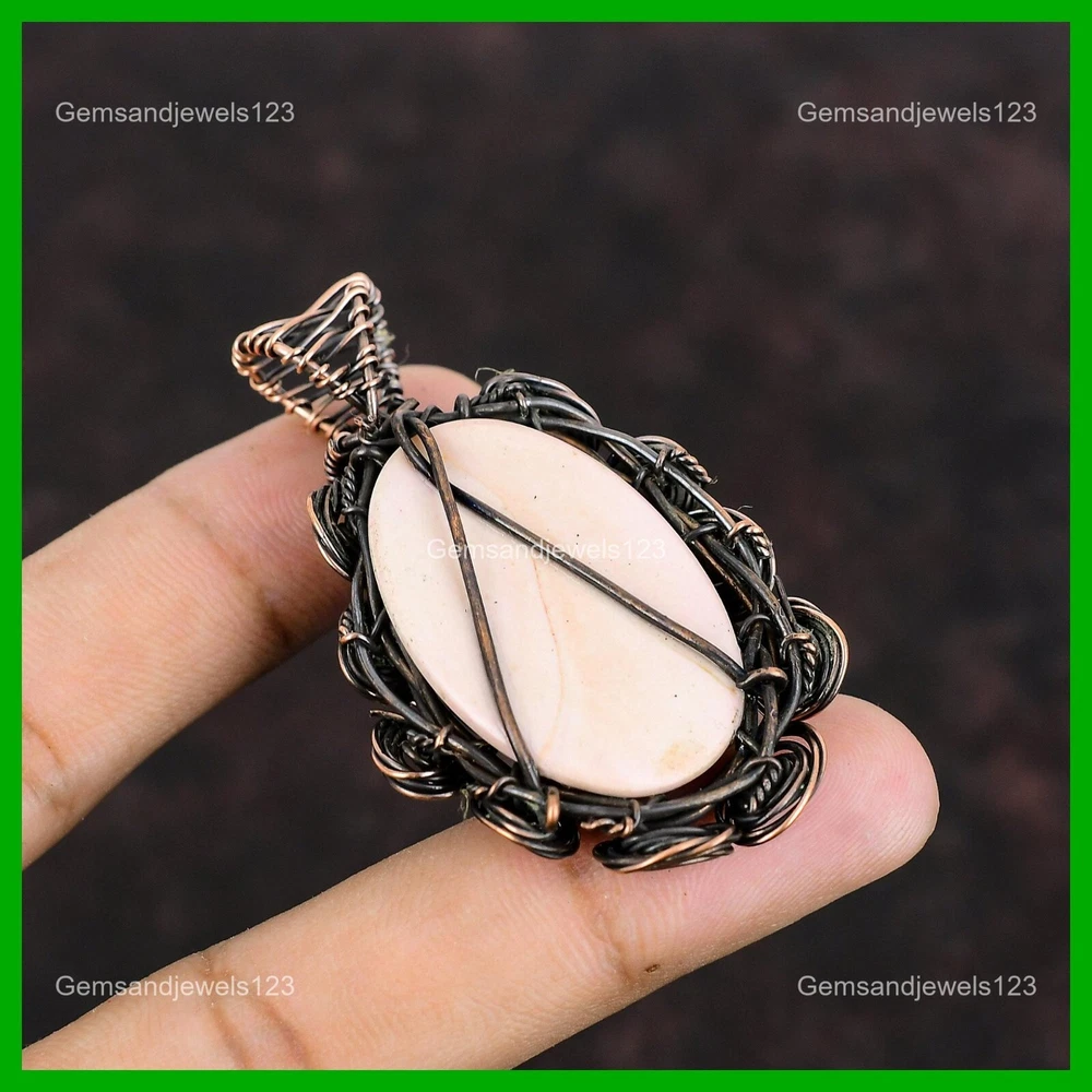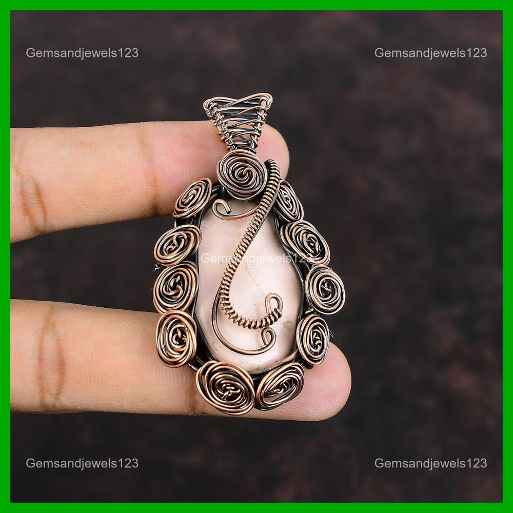 Note : Due to the natural formation of this gemstone. Slight Variation in design and color are to be expected. Welcome to gemsandjewels123 Mothers day Sale Natural Pink Opal Wire Wrapped Flower Pendant Jewelry Copper Handmade Pendant, Wire Wrapped Pendant, Wire Wrapped Jewelry, Copper Pendant, Copper Wire Pendant, Wrapped Jewelry, Wire Wrap Pendant, Wire Wrap Jewelry SKU : VFWP-1392 Gemstone : Pink Opal Stone Shape : Oval Metal Purity : Unknown Copper Length : 60 Millimeters Width : 35 Millimeters Copper has been used for jewelry making for thousands of years, dating back to ancient civilizations such as the Egyptians, Romans, and Aztecs. Copper was valued for its beauty, versatility, and durability, and was often used to make everything from jewelry and coins to cookware and tools. In addition to its historical significance, copper jewelry also offers several benefits. Copper is a natural conductor of heat and electricity, which makes it ideal for energy healing and therapeutic purposes. Wearing copper jewelry is believed to have various health benefits, such as improving circulation, reducing inflammation, and boosting the immune system. Some people also believe that copper jewelry has the ability to balance energy and improve mood. For Mother's Day Gift For Father's Day Gift For Promise For Valentine's Day For Halloween Party For Christmas Day Gift For New Year Party For Mom For Her If you can't find the information you need or need some advice for your design? Feel free to contact us. We are fast to reply :) All our work is made by hand with Love and Care in our workshop Thank you so much for visiting and hope you enjoy shopping with us gemsandjewels123 is committed to delivering the best quality sterling silver jewelry to customers. As a handmade jewelry manufacturer, we offer an extensive selection of copper gemstone jewelry that showcases the brilliance of our craftsmanship. We are an experienced handmade jewelry supplier with expertise in embellishing gemstones to suit every style. We offer you the liberty to create your jewelry ensemble with sparkling, earthy, and pure gemstones. Our Talented artisans masterfully handcraft each piece of jewelry you see here. Our pieces are made with genuine gemstones. The one-of-a-kind piece you see here is the same exact piece you will receive.