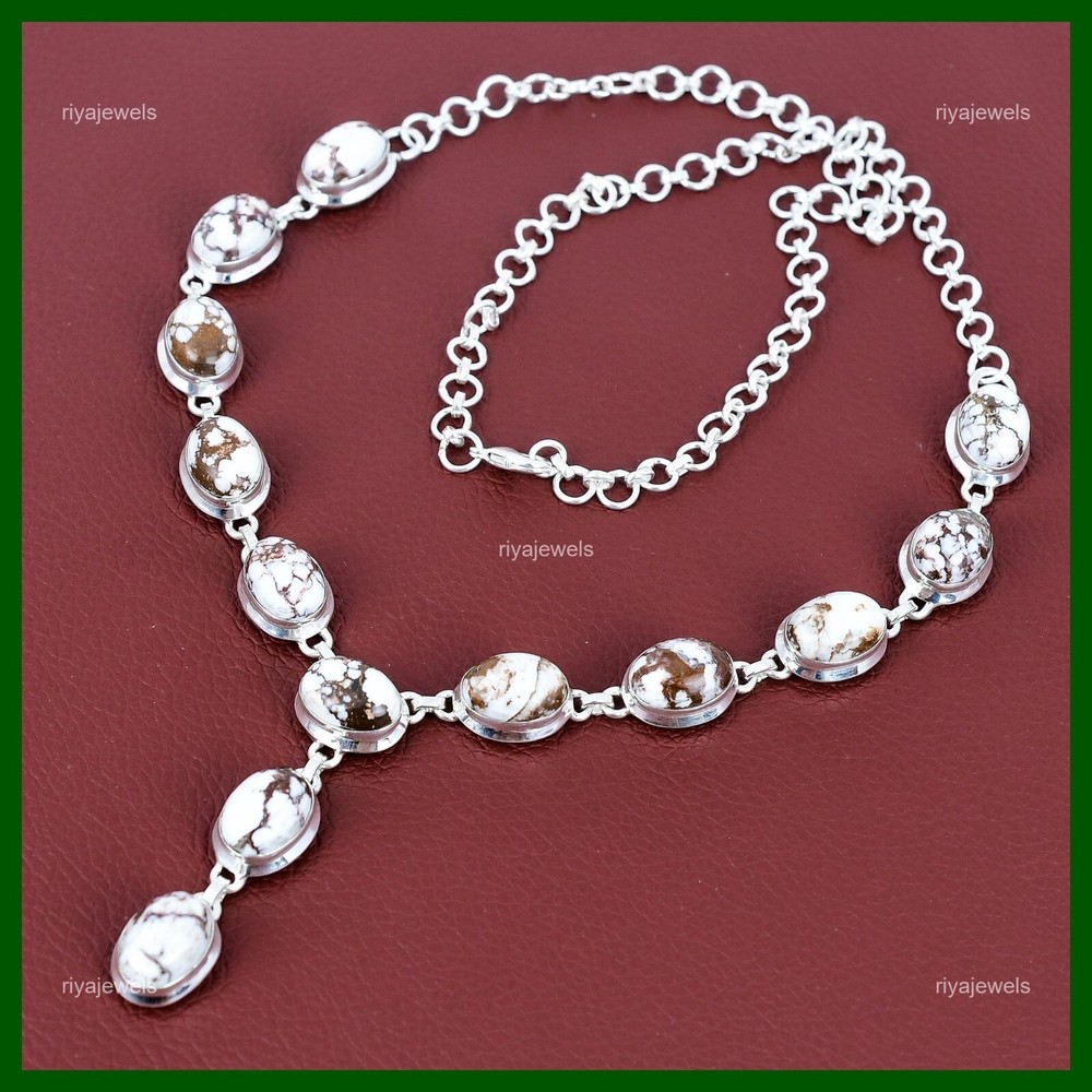 Note : Due to the natural formation of this gemstone. Slight variation in design and color are to be expected. Welcome to Riyajewels Mothers day Sale Wild Horse Magnesite Gemstone Chain Necklace Sterling Silver Handmade Necklace, Sterling Silver Necklace, Wild Horse Magnesite Necklace, Handcrafted Necklace SKU : PN-1455 Gemstone : Wild Horse Magnesite Stone Shape : Oval Metal Purity : 925 Sterling Silver Necklace Length : 20 Inches Adjustable : Yes Silver Jewelry is a popular choice for many people due to its unique properties and numerous benefits. Here are some of the key properties and benefits of wearing silver jewelry: Properties: Durability: Silver is a durable metal that can withstand regular wear and tear. Malleability: Silver is highly malleable, which means it can be easily shaped and molded into various designs. Conductivity: Silver is an excellent conductor of heat and electricity. Anti-bacterial: Silver has natural anti-bacterial properties, which can help prevent the growth of harmful bacteria. Benefits: Aesthetic appeal: Silver jewelry is known for its beauty and versatility, and can be worn with a variety of outfits and styles. Hypoallergenic: Silver is generally hypoallergenic, which means it is unlikely to cause an allergic reaction in most people. Healing properties: Some people believe that wearing silver jewelry can help with various physical and emotional conditions, such as arthritis, anxiety, and depression. Spiritual significance: Silver has been used in various cultures for its spiritual and symbolic significance, and wearing silver jewelry can help to connect with these traditions. Investment value: Silver is a precious metal that retains its value over time, and investing in silver jewelry can be a smart financial decision. Overall, silver jewelry offers a unique combination of beauty, durability, and benefits, making it a popular choice for people around the world. For Mother's Day Gift For Father's Day Gift For Promise For Valentine' Day For Halloween Party For Christmas Day Gift For New Year Party For Mom For Her If you can't find the information you need or need some advice for your design? Feel free to contact us. We are fast to reply :) All our work is made by hand with Love and Care in our workshop Thank you so much for visiting and hope you enjoy shopping with us Riyajewels is dedicated to providing customers with high-quality sterling silver jewelry. As a manufacturer of handmade jewelry, we offer an extensive range of silver gemstone jewelry that demonstrates our exceptional craftsmanship. We are skilled in adorning gemstones to complement any style, and we give you the freedom to design your own jewelry collection with dazzling, natural, and genuine gemstones. Our talented craftsmen carefully handcraft each jewelry piece, ensuring that it is unique and made with authentic gemstones.