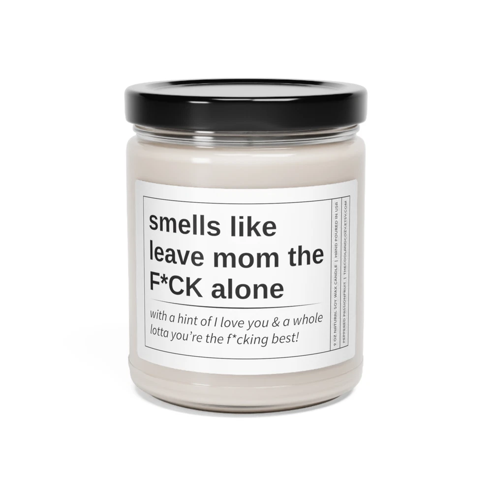 Smells Like Leave Mom The F*CK Alone Candle FREE SHIPPING Packed with immersive aromas, these scented candles come in 9oz glass jars and are one size (2.8″ × 3.5") (7.1cm × 8.8cm). Made with 100% natural soy wax blend, each candle features a 100% cotton wick and a permanent adhesive label where your custom designs can come alive. .: Materials: 100% natural soy wax blend, 100% cotton wick and a glass jar .: Compliant with ASTM safety standards .: One size: 2.8″ × 3.5" (7.1cm × 8.9cm) .: Burning time: 50-60 hours .: Glossy permanent adhesive label .: Choose from nine different aromatic scents .: Assembled in the USA from globally sourced parts .: Please note: All scents have the same wax color