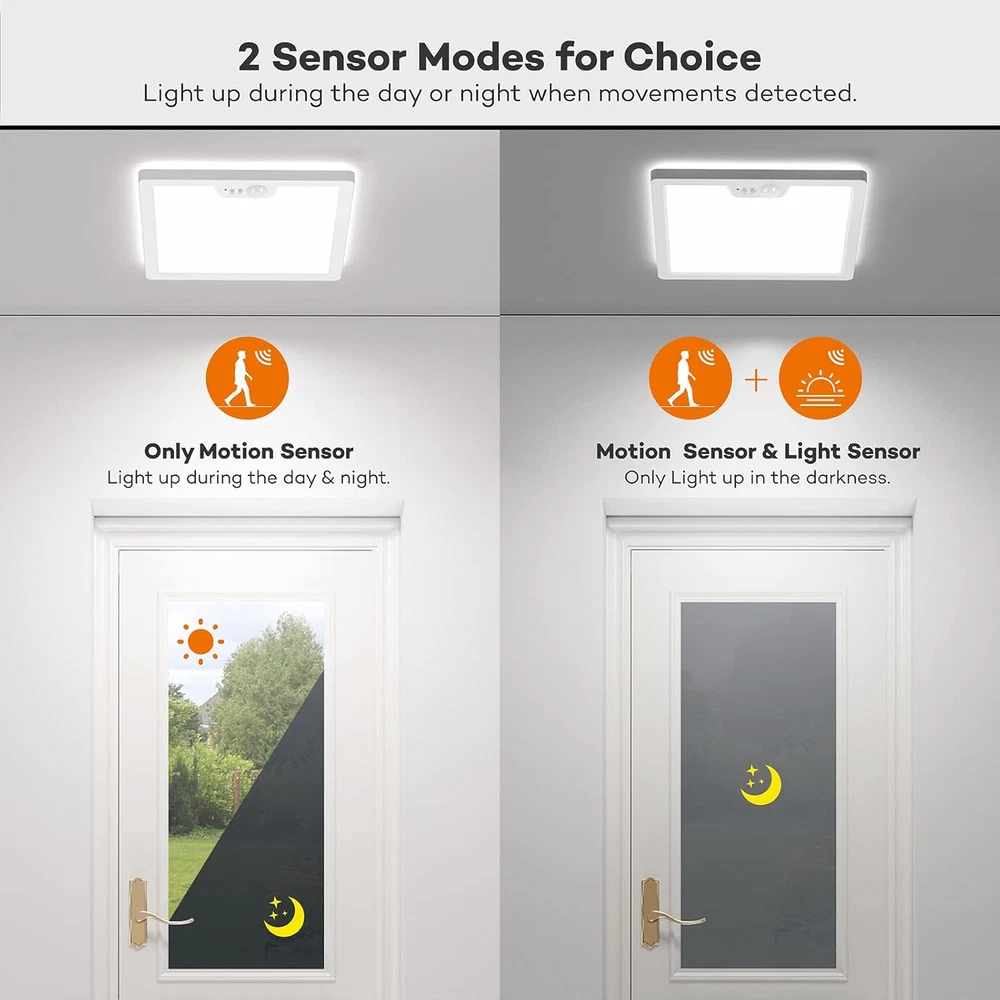 Motion Activated Ceiling Light - 8.7" Hardwired LED, 3 Color Options, Energy Sav