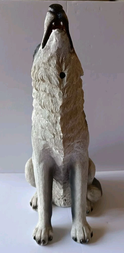 Motion Activated Howling Wolf Garden Statue Sculpture Outdoor Patio Yard Decor Preowned In Like New Condition No Chips Or Cracks In Sculpture (Measurements)-18"x 7½ X 10½ (Requires Two Double A Batteries)