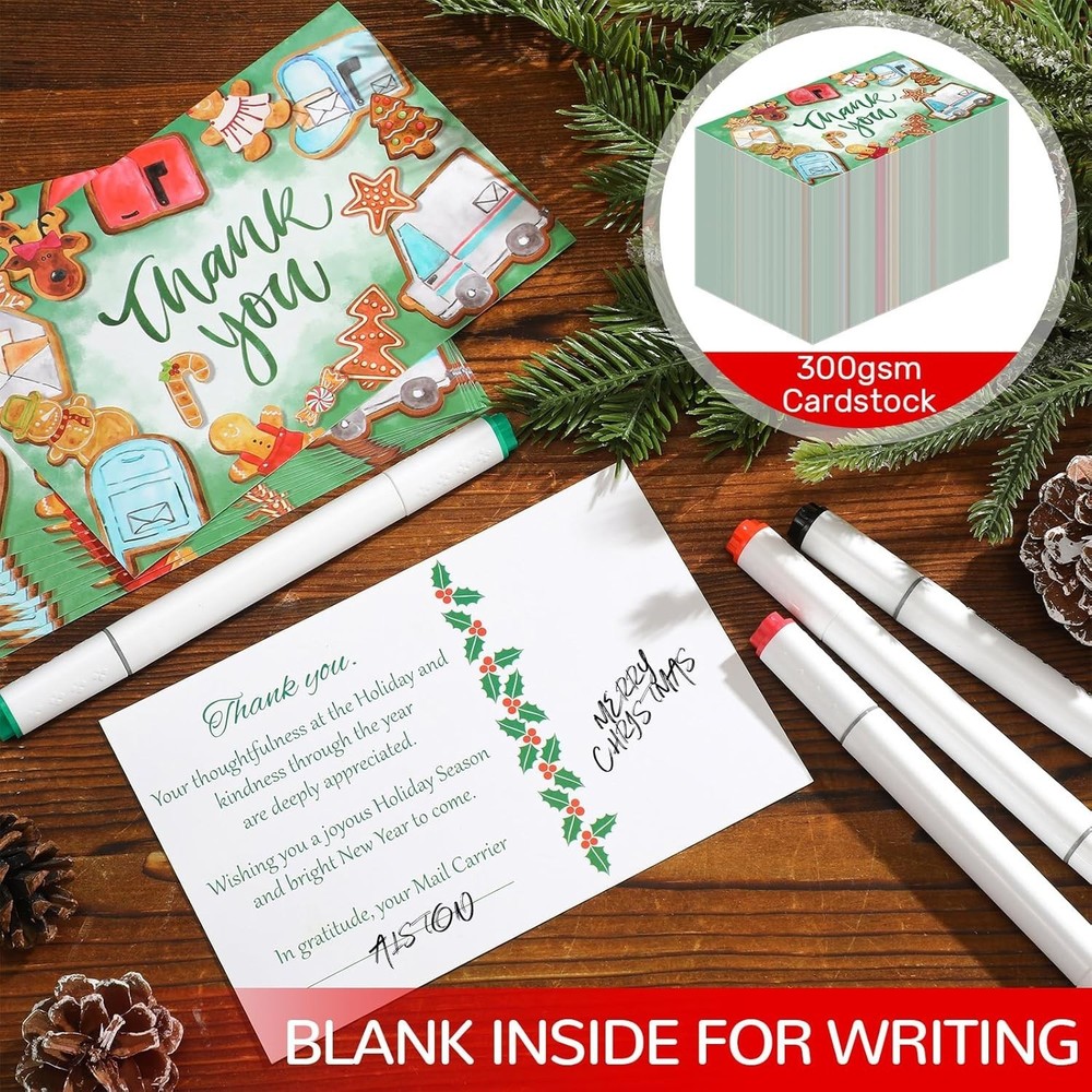 Motipuns 100 Pcs Christmas Mail Carrier Thank You Postcard Letter Carrier Tha...