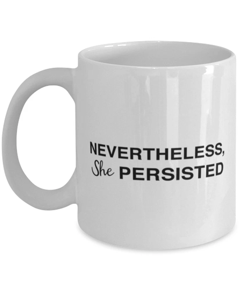 Motivational Graduation Funny Coffee Mug Nevertheless She Persisted Girl Power Product Details.. This high quality 11oz. ceramic white mug has a premium hard coat that provides crisp and vibrant color reproduction sure to last for years. Perfect for all hot & cold beverages. The highest quality printing possible is used. It will never fade no matter how many times you wash it. Material: 100% Ceramic. Print both sides. Dishwasher and Microwave Safe. High Gloss + Premium White Finish. Printed in the U.S.A. Personalized & Custom. We support personalized and custom mug to add custom, when placing an order, you can add notes to the "order note" in shipping address section. Also you can contact us directly via message. Shipping Info. Ready to ship in 1 to 2 business days, All products are made-to-order and proudly printed in the United States. Shipped by USPS and DHL, You will receive your order in 5-7 days. Replace & Refund. All products are defective during shipping broken, chipped will be replaced free of charge. You are not satisfied with the product, we will refund 100% money to you. If any other issues arise, please do not hesitate to message, we would be more than happy to assist you.