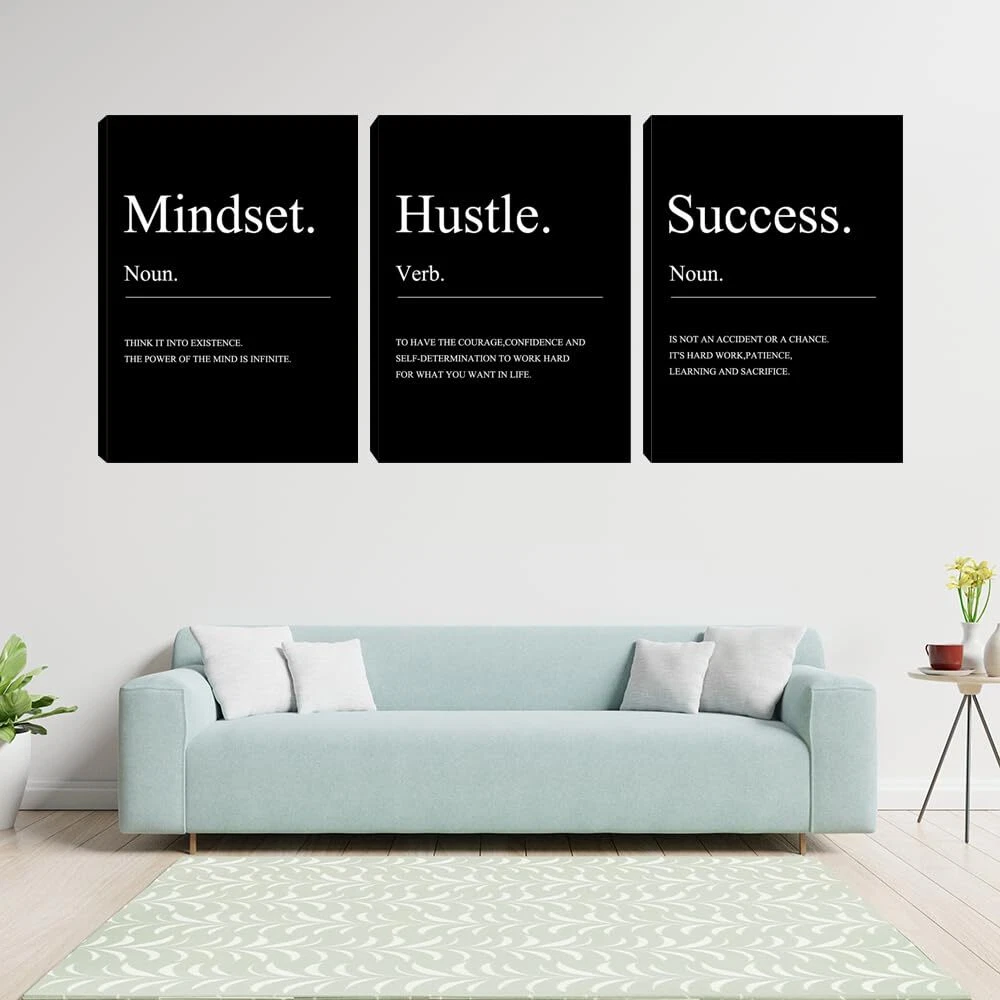 INTRODUCTION:Each panel of motivational canvas print already stretched on solid wooden frame.The solid wood mounted canvas prints wall decor is modern, stylish and attractive. It suitable for office, bedroom, living room, bathroom, kitchen, workplae, school, gym, etc.. Motivational Wall Art Decor Size : 12"x16"each panel,total 3 panels.Gallery wrapped and stretched wood frame Inspirational Office Wall Decor Poster Prints : Modern motivational wall art printing artwork. A wonderful framed canvas wall art to hang in living room,bedroom,bathroom,office,workplace,classroom,gym or kitchen Framed Picture Ready to Hang : Built to last, each inspirational wall art already mounted a hook in the back and easy for hanging Inspirational Poster Prints Feature : Motivational wall art canvas paintings are simple and generous, and look very beautiful from a distance Inspiring canvas prints art are choice for Christmas, New Year, Wedding, Birthday, Anniversary, Thanksgiving Day,Mother's Day, Father's Day, Valentine, friends, relatives,family, men,women, lovers etc