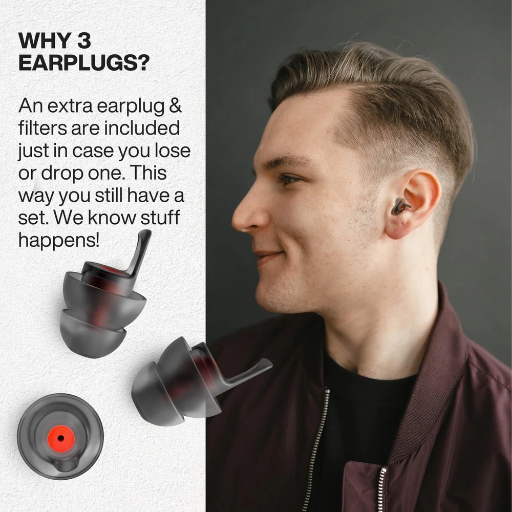 Moto Motorcycle Ear Plugs Ultra-soft, hypoallergenic ear plugs for motorcycle riding, specifically designed by to reduce harm. With Moto ear plugs, wind noise canceling capabilities are maximized by patented filters reducing noise by up to 20 dB. Comfortable and reusable motorcycle earplugs made from soft silicone. Enjoy the ride. We’ll protect your ears. Comfortable and reusable silicon motorcycle ear plugs allow you to enjoy your ride without hearing damage Wind and noise reduction up to 26 dB 3 filter sets in Medium, High, and Max. Motorcycle earplugs available in Small or Medium sizes RIDER'S ESSENTIAL: PROTECT YOUR HEARING - Don't let wind and road noise damage your hearing. You're at risk of damaging your hearing after just 15 minutes of riding at 62 MPH. Moto Original motorcycle ear plugs provide up to 26dB noise reduction, safeguarding your ears during rides. Stay safe and enjoy clear communication on the road. COMFORT UNDER YOUR HELMET - Experience hours of comfortable wear with Moto Original ear plugs. Their double cone shape fits seamlessly under your helmet, ensuring they won't interfere with your gear. Crafted from soft silicone, these ear plugs provide all-day comfort for your longest rides. CLEAR COMMUNICATION, ENHANCED SAFETY - Our high-fidelity filter technology blocks harmful noise while preserving clear communication. With three sets of interchangeable filters included, you can customize your listening experience on the go. Make Moto Original a must-have accessory for your motorcycle adventures. TESTED AND TRUSTED PERFORMANCE - Since 2008, our motorcycle ear plugs have been rigorously tested and approved following US and EU regulations. Trusted by Motorcycle., Red Bull Racing, and others, Moto Original ensures reliable performance and unmatched protection. WHAT'S INCLUDED - Each set has an aluminum carrying case and three filter sets for noise reduction: Medium, High, and Max (up to 26dB). Additionally, you'll receive set each of Small and Medium size motorcycle ear plugs, ensuring a perfect fit for every rider. Gear up with Moto Original for unmatched comfort and protection on your rides.