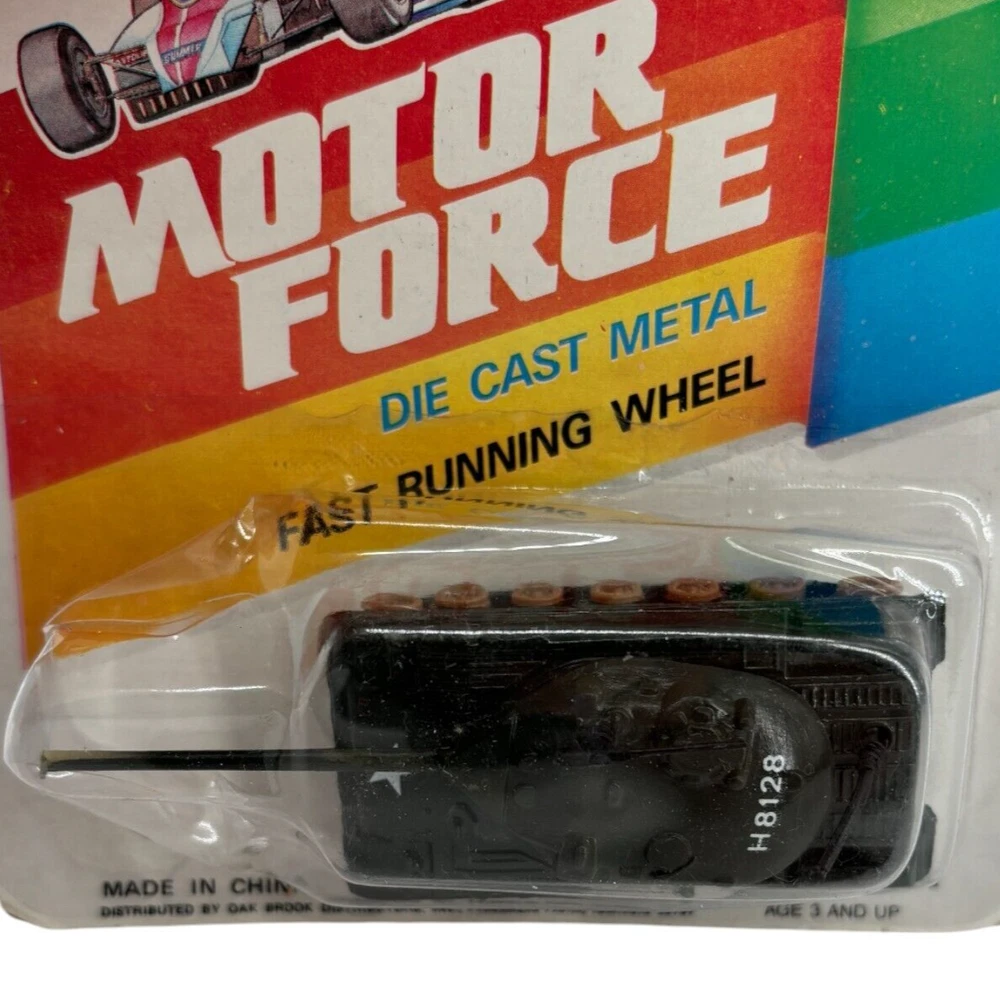 This vintage Military Tank by Motor Force is a must-have for any collector or enthusiast. The dark green color and metal material make it a durable and realistic addition to your collection. The tank's intricate details and accurate design make it a great conversation starter. Whether you're a fan of military history or just appreciate the artistry of vintage toys, this tank is sure to impress. Add it to your collection today and enjoy the satisfaction of owning a piece of history. Packaging has some minor wear. See photos.