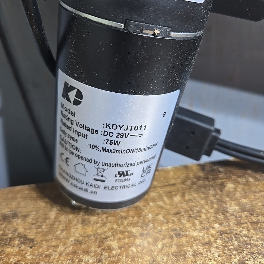 The Motor Linear Actuator Model KDYJT011-006 B by KD is designed for power recliner lift chairs, working with various brands and models. This sleek black aluminum motor features a solid pattern, a speed of 6mm/s, and a stroke of 221mm/8.70 inches. With a maximum load of 6000 N and a compact size of 400mm/15.75 inches, this modern and durable linear actuator motor is easy to install and clean, making it a reliable choice for indoor use by adults in need of a lift chair solution.