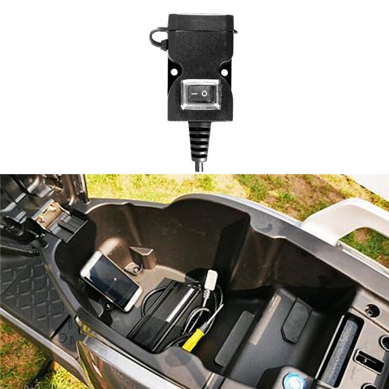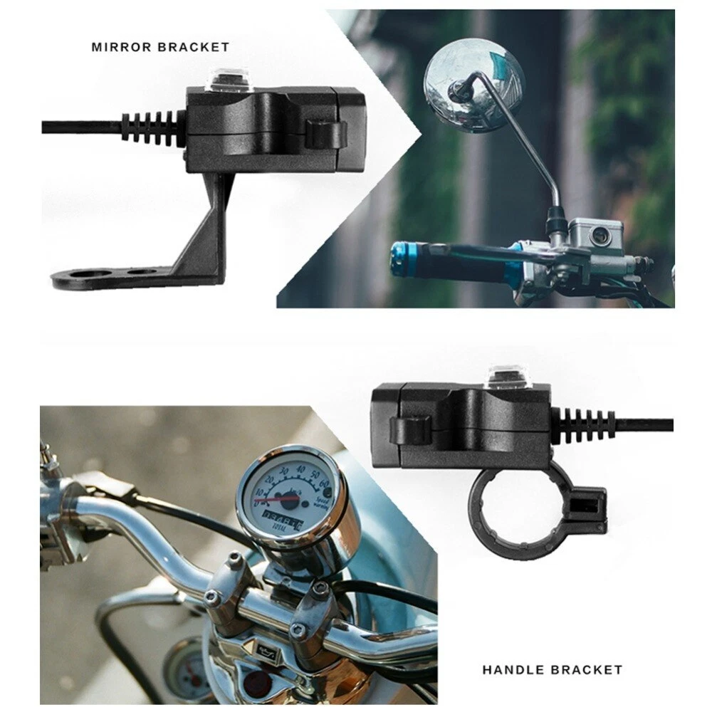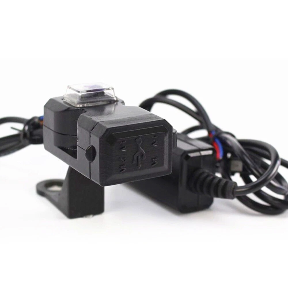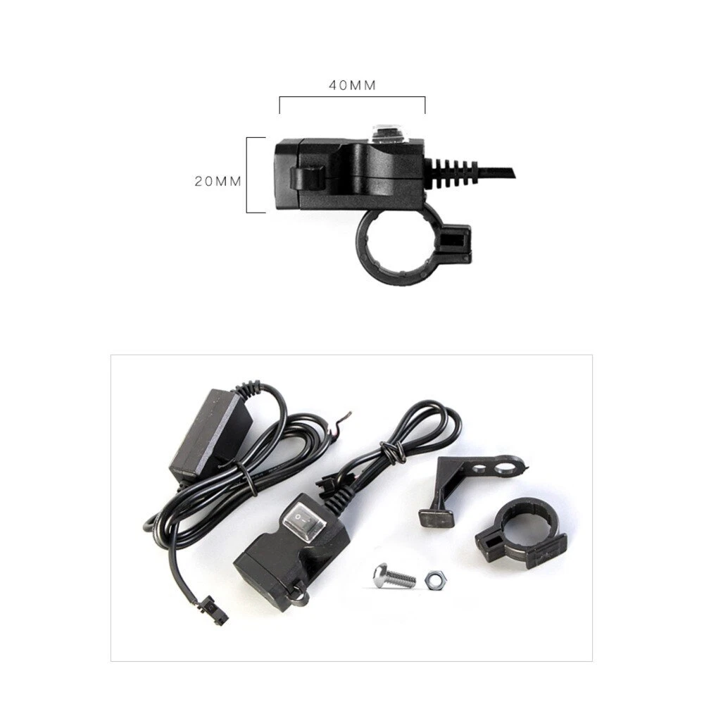 Feature: Brand new and high quality This motorcycle phone charger takes little space.You can mount it on motorcycle or even just lay it on a corner. Dual USB (2.1A/1A) can charge two devices at the same time.Suitable for mobile phones,iPads,cameras,GPS,tablets,etc. 12V-24V input.Widely used for 12-24 volt motorcycles,scooters,ATV and other vehicles. Can be mounted on both handlebar and rearview mirror,which meets your different needs. Double dustproof and waterproof protection.The switch and USB interface are covered with waterproof and dustproof cover.No worry about raining days anymore. Specification: Material: ABSPlastic Input: 12-24v Output: 5V 1A/2.1A Compatible:for any 12-24V Motorcycle,ATV... Mount Instruction: The handlebar isinstalled for diameter of 21-25mm Rear view mirrormounting suitable for diameter 10mm Red wiring"+" positive Black wiring "-"negative Note: 1.Please allow 0.1-0.3cm differences due to manual measurement, thanks. 2.Please understand because of the light irradiation or computer display difference, the picture may not reflect the actual color of the item. Thank you! Package Included: 1 x Motorcycle USB Charger NO Retail Box. Packed Safely in Bubble Bag.