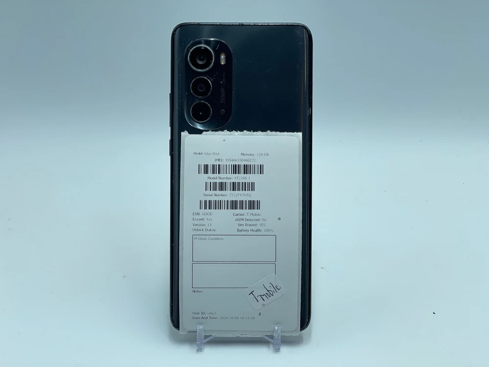 PAYMENT - Payment is due when item is ended. If payment is not received within 4 DAYS , the order will be automatically cancelled resulting in a strike on buyer's account. Buyers with 2 or more unpaid items will no longer be able to make offers or purchases from Warehouse Wireless. RETURNS - Returns are accepted within 60 days of purchase. We do not offer replacements or partial refunds. Original purchase price will be refunded after receipt of return. SHIPPING - USPS requires all electronics with lithium batteries be shipped using Parcel Select. Shipping times vary depending on location and are estimates only. Unfortunately, we are unable to offer USPS Priority, USPS Express, or FedEx Express shipping options. Motorola Edge 128GB XT2205-1 (T-Mobile) Blue CrkGls Firmware: Android 13.0 - T2STS33.105-51-11-3-1 THE PHOTOS ABOVE ARE OF THE ACTUAL DEVICE NOT STOCK PHOTOS. This item does not include a charger or any other accessories CARRIER - T-Mobile IMEI/ESN - 355486330460272 Device is CLEAR FOR ACTIVATION - Please contact us right away if you do experience any problems with activation. DESCRIPTION - This item is in POOR cosmetic condition. It reflects HEAVY USE and has SEVERAL scratches and/or blemishes. Damages: This device has CRACKED FRONT GLASS. Functional Condition Test Results: Passed Accelerometer Bluetooth Device Lock Digitizer Earpiece Flashlight Front Camera Front Camera Quality Gyroscope LCD Loud Speaker M-Network Connectivity M-Sim Reader Test Microphone Power Button Proximity Sensor Rear Camera Rear Camera Quality Screen Rotation Telephoto Camera Telephoto Camera Quality UltraWide Camera UltraWide Camera Quality Vibration Video Microphone Volume Down Button Volume Up Button WiFi+GPS Failed M-Glass Condition Glass