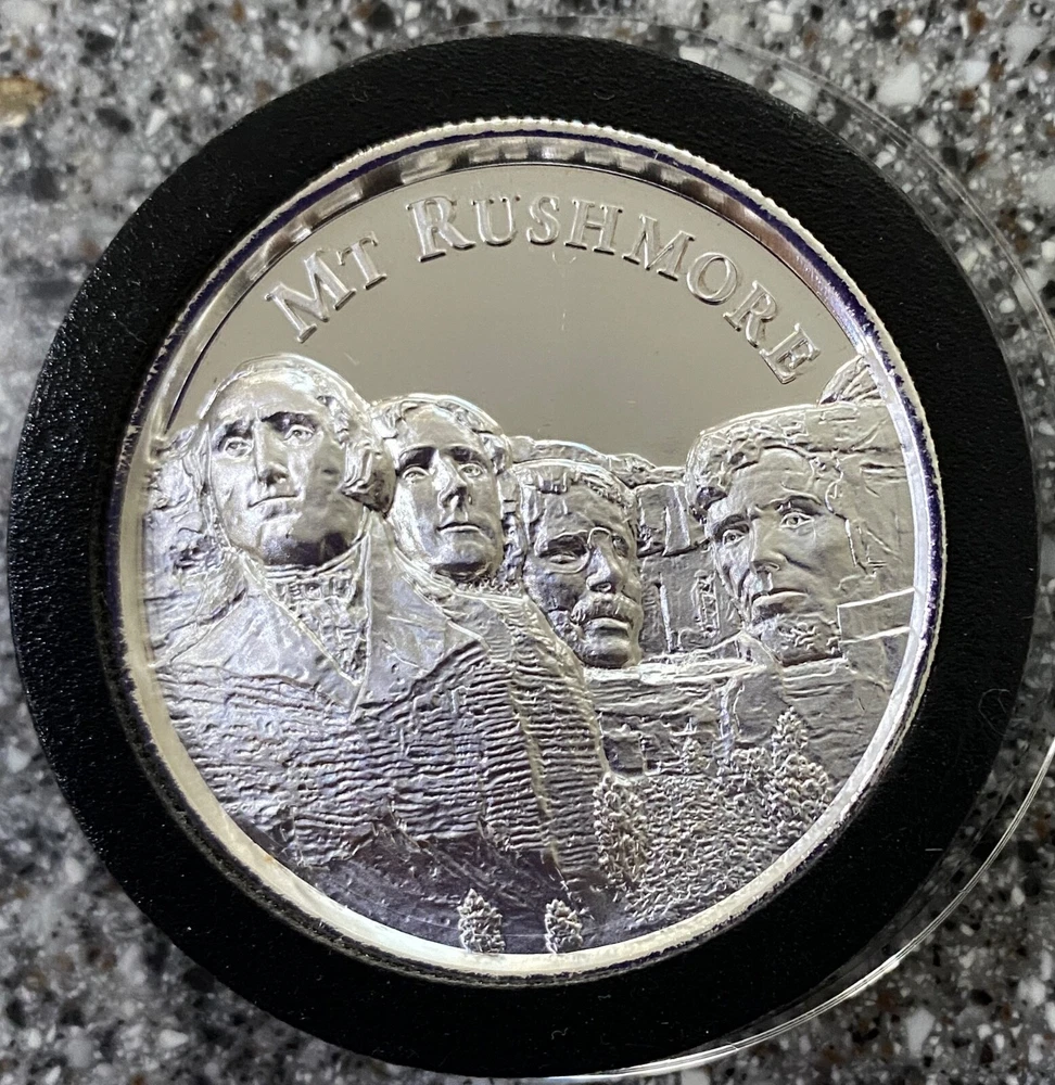 "THIS LISTING IS FOR THE SILVER ROUND SHOWN AND IS THE SILVER ROUND YOU WILL RECEIVE" Mount Rushmore American Landmarks 2 oz .999 Fine Silver ~ Ultra High Relief 2 OZ ,999 ROUND ROUND HAS SMALL SCRATCH AT TOP OF OBVERSE SIDE PLEASE, SEE PICS TO INSPECT ROUND IS IN A PLASTIC ROUND WITH BLACK BORDER SHIPPING IS $3.99 AND I PAY THE REST … "A BEAUTIFUL COIN FROM AN HONEST SELLER" QUESTIONS ? PLEASE ASK … +++ I Always leave positive Feedback after receiving Feedback from the You +++ CHECK OUT MY STORE FOR MORE COINS ! "TD SILVER COINS ETC" THANKS FOR STOPPING BY...
