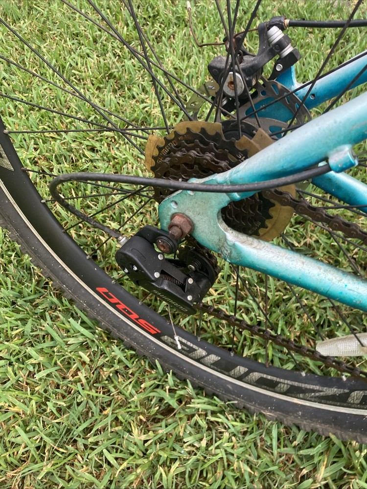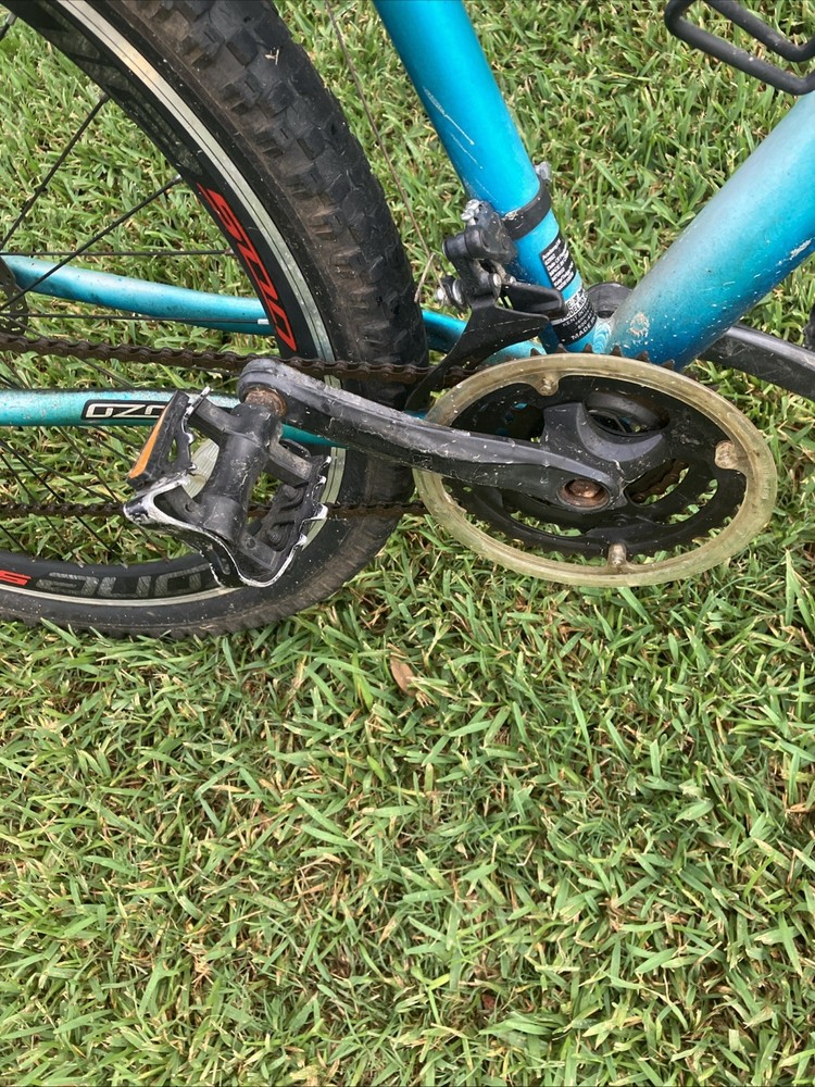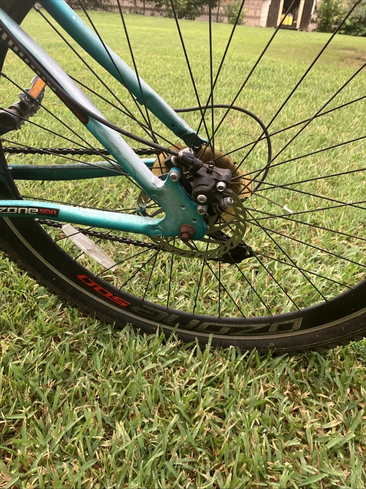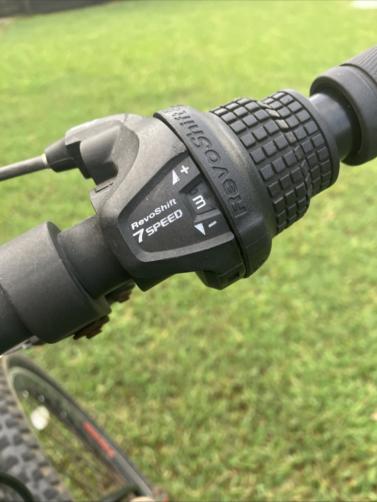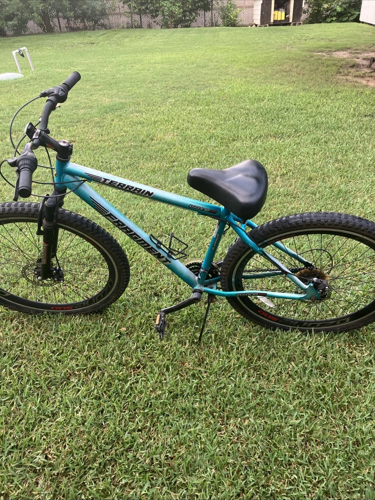 26-inch mountain bike with front suspension, dual disc brakes, 21-speed gears