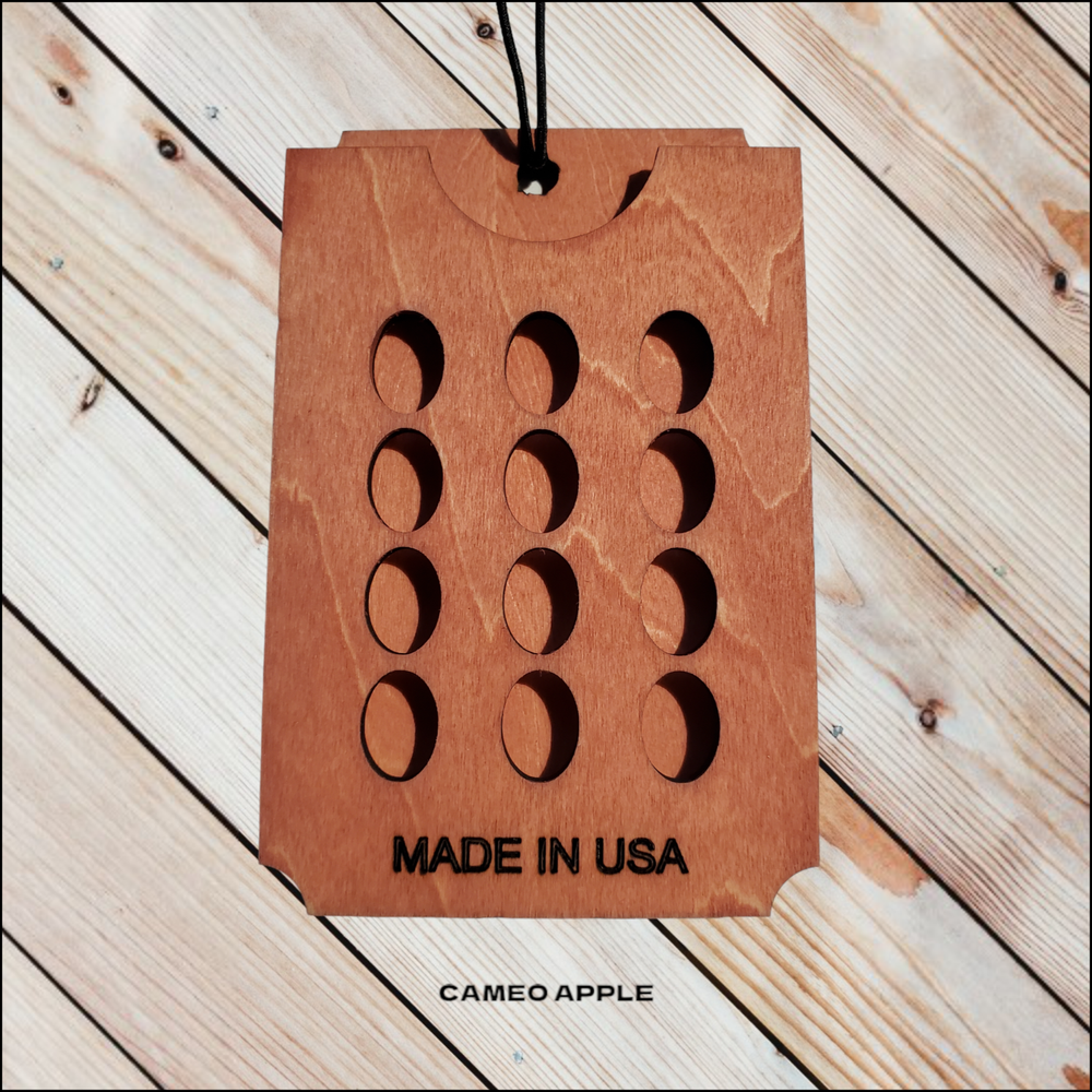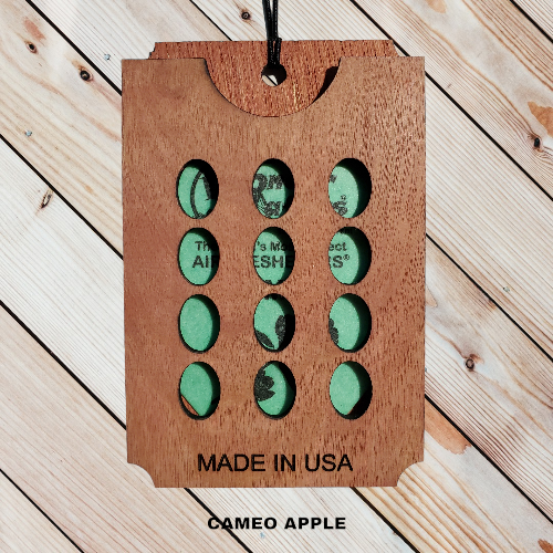 A Beautiful Handcrafted Wooden Car Air Freshener Holder. It comes with a choice of seven stylish vivid colored stains, Cameo Apple, Lime Grass, Weathered Gray, Golden Oak, Pineapple Yellow, Blue Spruce, Rose Pink or you can choose it Natural so you can apply your own stain if desired. Just slide in one of the supplied Scented Wafers or the blank felt pad with your own oils on it. Every Wooden Car Air Freshener Holder is supplied with two (2) Scented Wafers inserts and one (1) Unscented Felt Pad insert, which you can add your own scent. The Scented Wafers are pre-scented, and you can choose from over 20 different scents! Each Wooden Car Air Freshener Holder is Handmade and hand stained, so no two are ever identical! This is the perfect gift for yourself or as a thoughtful gift for someone special in your life. Can be used in Cars, RVs, Dorm Room, Homes, Lockers, Gym Bags & More! Just insert the Scented Wafer or Felt Pad into the Car Air Freshener Holder and place wherever you choose! ?DETAILS? ? Wooden Car Freshener Holders are approximately 3.8? high x 2.5? wide. ? Made from Basswood & Plywood. ? You can choose either a colored stain or natural. ? Stained with premium stain. ? Supplied with two (2) Scented Wafers inserts. ? Supplied with one (1) Unscented Felt Pad insert. ? Colors may slightly vary on screen from the physical product. ? $10 for 1 Wooden Air Car Freshener Holder, 2 Scented Wafers & 1 Unscented Felt Pad only.