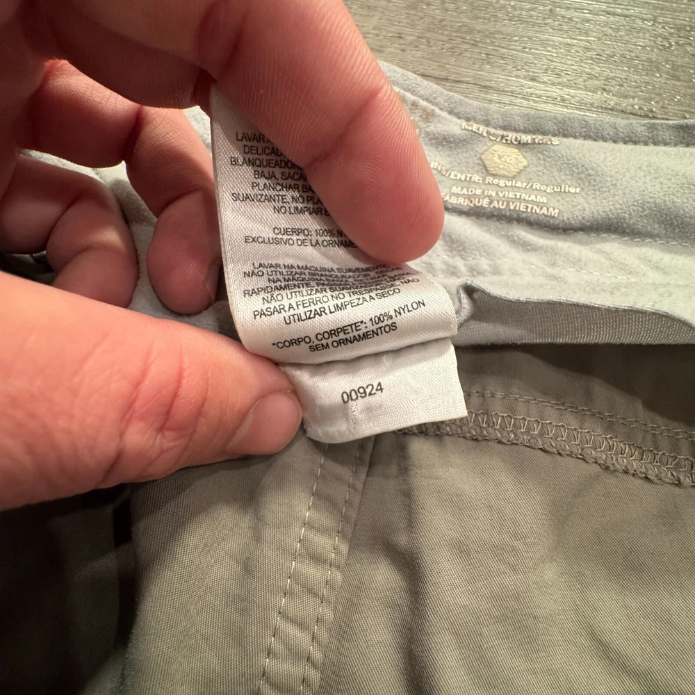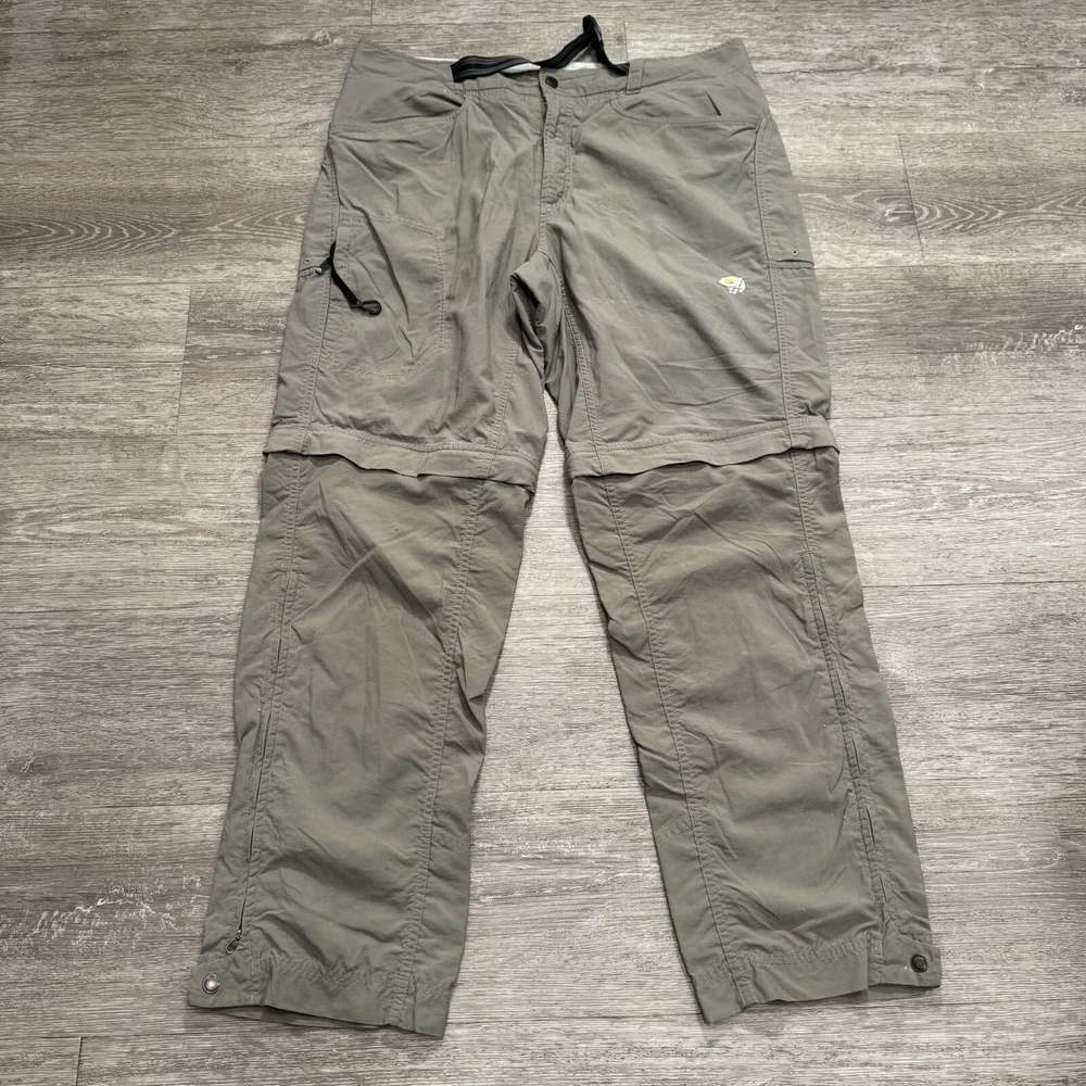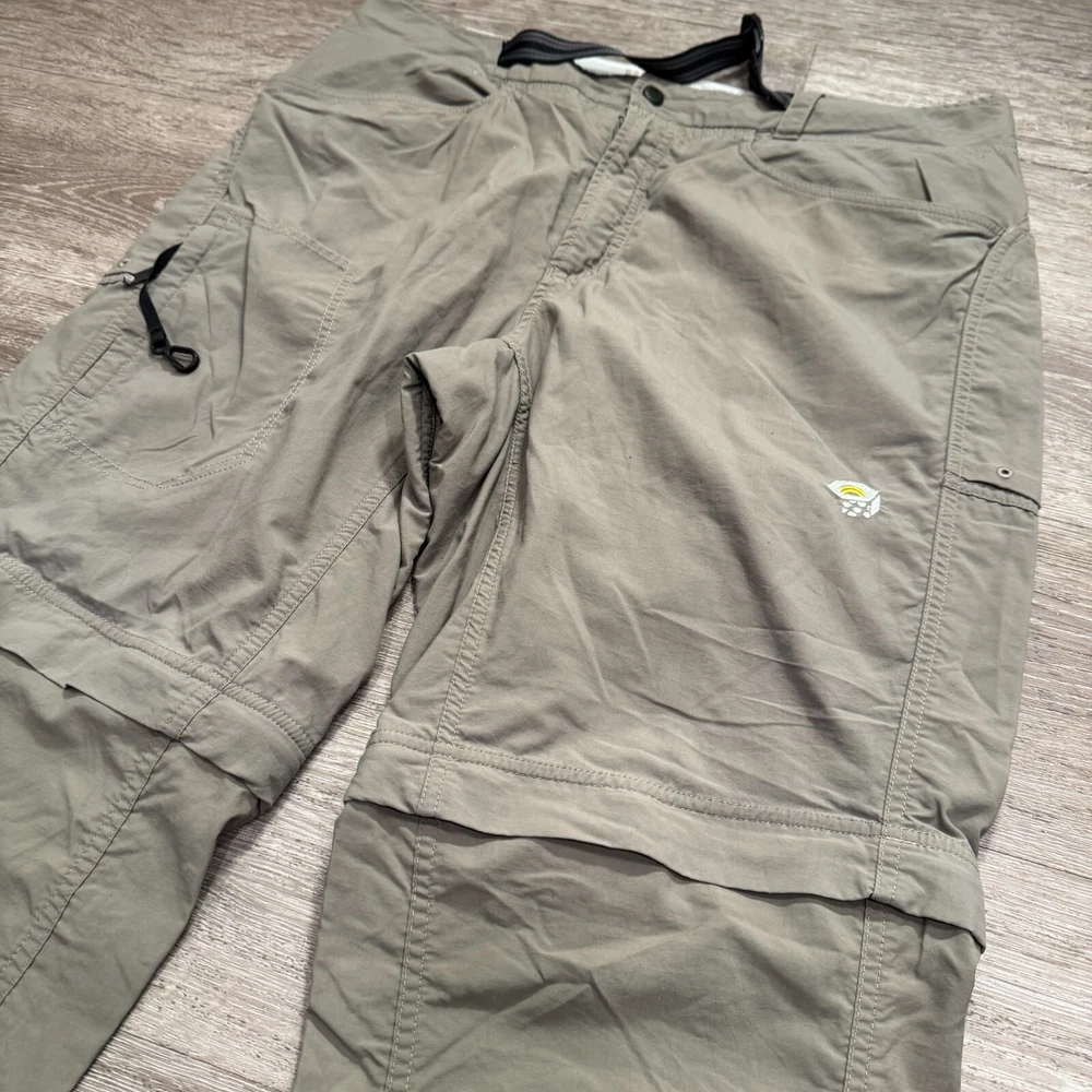 Size: L Size Type: Regular Material: Nylon Garment Care: Machine Washable Features: Belted, Convertible, Easy Care, Lightweight, Moisture Wicking, Pockets, Water Resistant, Windproof, Wrinkle Resistant Fabric Type: Knit Accents: Logo, Zipper Front Type: Flat Front Handmade: No Season: Fall, Spring, Summer, Winter Color: Gray Waist Size: 36 in Occasion: Casual, Travel Personalize: No Country/Region of Manufacture: China Inseam: 30 Pocket Type: Cargo Pocket Rise: Mid (10-12 in) Brand: Mountain Hardwear Leg Style: Straight Department: Men Fit: Regular Pattern: Solid Type: Pants Vintage: No Theme: Nature Style: Cargo Closure: Zip