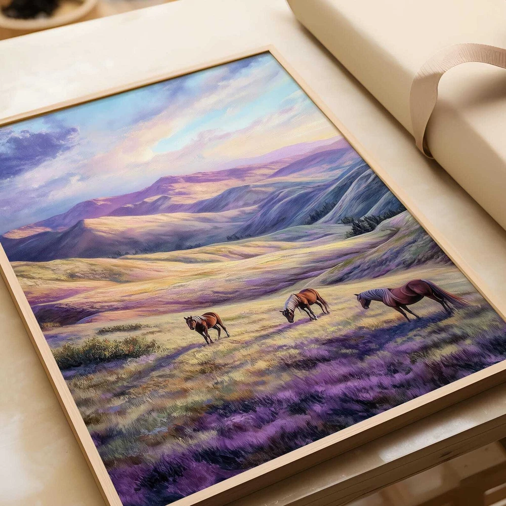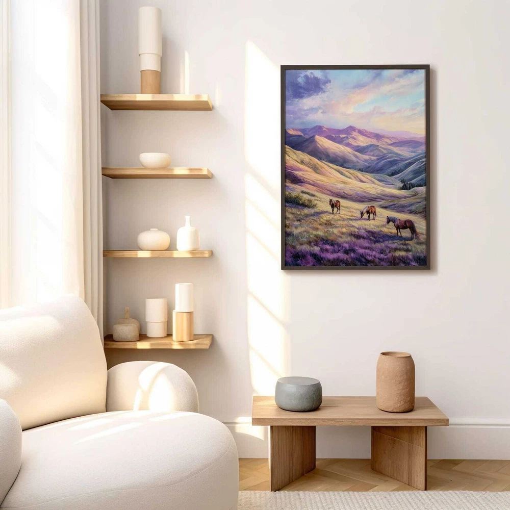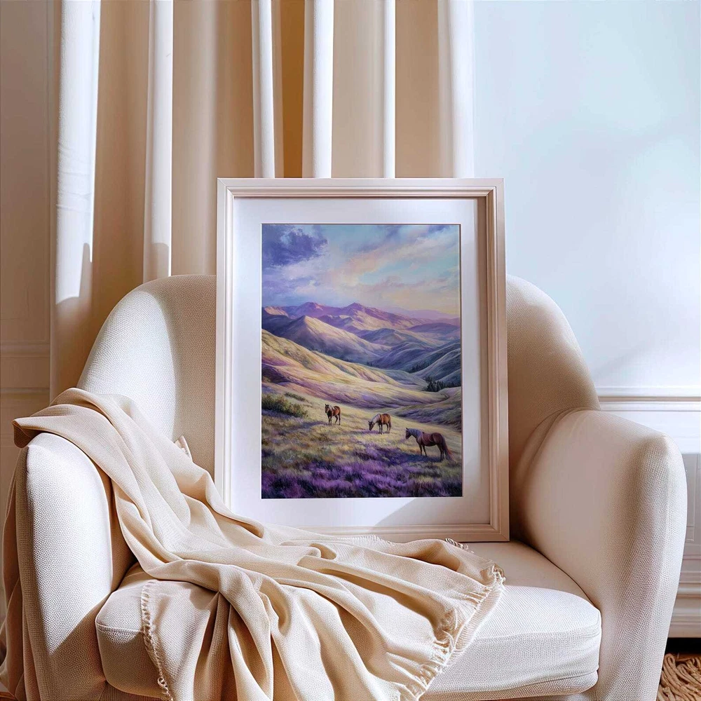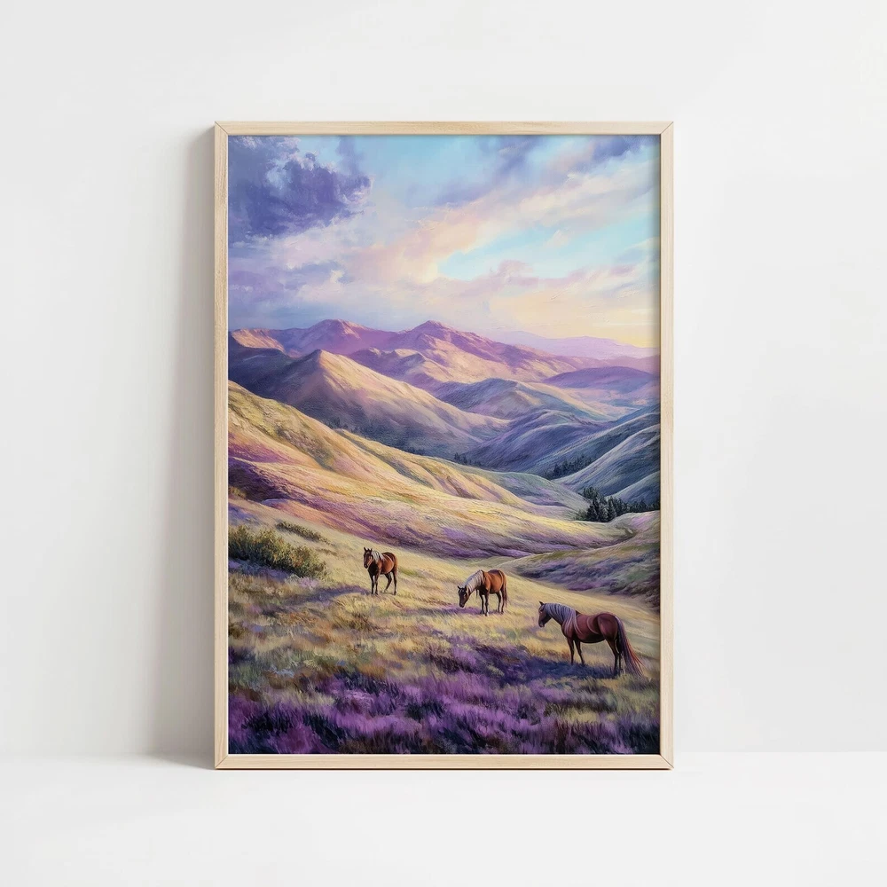 Mountain Landscape Horses Art Print Serene Nature Wall Decor Wild Horses Printable Pastel Mountain Art Peaceful Wall Art Material: Premium luster photo paper Print type: Inkjet printing One side printed + The finish provides the highest possible resolution and color saturation + Lasts up to 200 years in color and 400 years in black-and-white + Printed on high-quality resin-coated photo base paper medium + Posters can be hung with double-sided tape, tacks, or framed + Hand washing with a gentle cry cloth is recommended for extended durability I will hand select the best choice of paper for your chosen design to ensure top quality results for a beautiful, bright and luxurious print. All prints are sealed in cellophane slips for protection during transportation, and are shipped in a protective cardboard envelope.