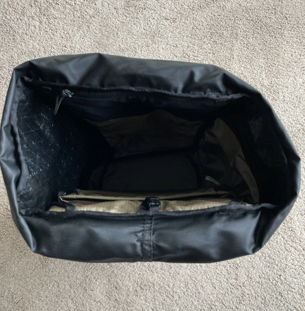 I used it for a couple months commuting to work, but I no longer have a need to carry as much stuff around. It has a massive main pocket with a small zippered pocket inside and a decent sized outside pocket with a little bit of organizing elastic pockets. This Mountain Hardwear Grotto backpack is a top-of-the-line choice for backpacking and hiking enthusiasts. With a spacious 35 L capacity, it has enough room for all your essentials and then some. The backpack features a hook and loop closure for easy access, as well as external pockets for storing your belongings. The roll top design provides added protection for your belongings, while the laptop compartment allows you to carry your work or school laptop with ease. The backpack is available in sleek black color, making it a stylish choice for any adventure.