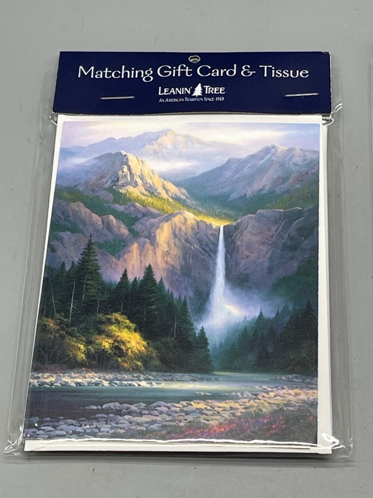 gift card with matching tissue set of 2 picture of mountains and waterfall new in package see photos Condition: New With Tags new in package see photos