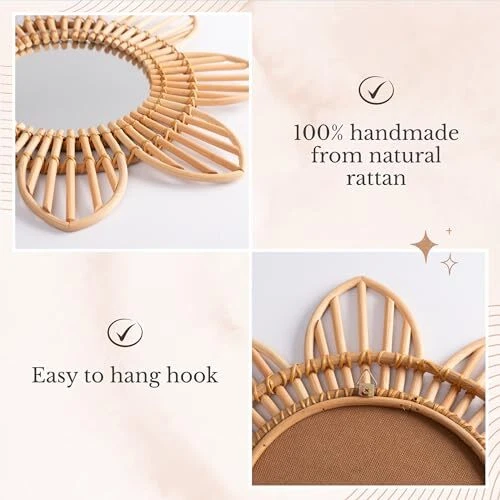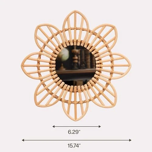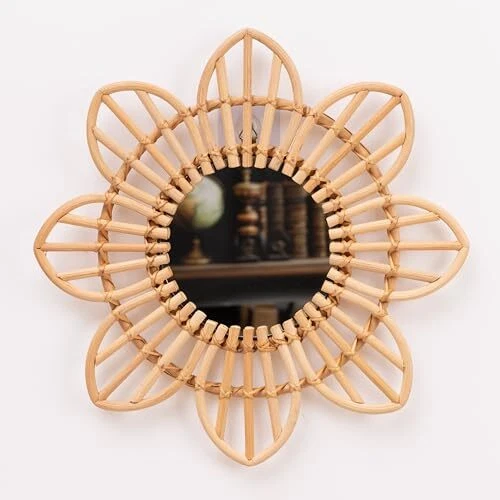 Frame Type: Framed UPC: Does Not Apply Number of Pieces: 1 EAN: Does Not Apply Item Length: 1 Style: Country Rustic Number of Items: 8 Specific Uses For Product: Home Decor Color: Natural Rattan Product Dimensions: 15.7"L x 15.7"W Frame Color: Natural Rattan Shape: Floral Finish Type: Rattan, Glass Item model number: Wall Mounted Mirror Type: Does Not Apply Assembly Required: No MPN: Does Not Apply Theme: Floral, Country Rustic Room Type: Kitchen, Living Room, Bedroom, Nursery Item Width: 1 Frame Material: Rattan Item Height: 1 Material: Rattan Date First Available: March 23, 2023 Mounting Type: Wall Mount gtin13: Does Not Apply Manufacturer: Does Not Apply Surface Recommendation: Rattan Size: Small Item Weight: 1.41 pounds Number of Drawers: Does Not Apply Brand: Does Not Apply