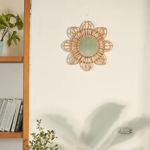 Mounted Mirror, 8 Petals Flower Wicker Rattan Decorative Mirrors for Small