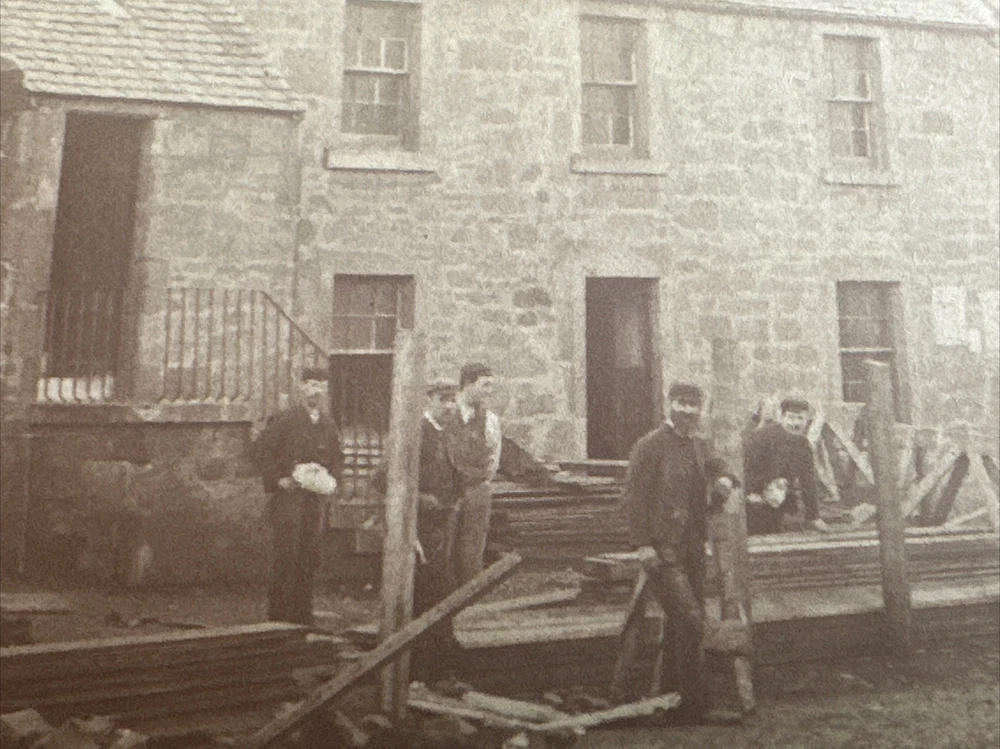 Interesting homestead or share house scene with lots of male workers outside. 4.25x6”. Image is rough around the right edge with card stock base broken also has piper left corner break. Shipping and Handling for our Photographs is $5.00. This rate is good for a single photograph or unlimited number of photographs. We ship First Class by USPS with bubble mailers when your total order is less than $100.00. If your total order exceeds $100, we will ship by USPS Priority Mail. All packages shipped will include a tracking number. We have a 14-day return policy for all items. We will leave feedback when your item is packaged and shipped. Please return this feedback as our receipt you have received the item.
