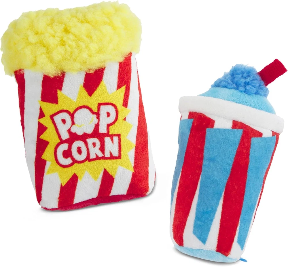 Movie Night: This movie popcorn and slushie bundle is a great way to butter up your pup! Made with crazy crinkle, 2 squeakers, and super soft fuzz, Movie Bites is perfect for binge-watching your pup play. So, don’t forget to grab some K9 concessions for your slush puppy! Hours of Fun: Each of the toys is densely packed with interactive elements: the crazy crinkle provides fun texture when chewing, the soft fuzz provides pleasant interaction, and multiple squeakers inside are ideal for, well, chewing and squeaking Interactive Dog Toy: This Multi-Part toy is designed for small dogs and puppies, designed with quality plush and crinkles. Active Lifestyle Ready: Great for playing or fetching. A fun addition to your dog's active lifestyle. Outlast and outperform other dog toys! Thoroughly tested. Keep your pup entertained and safe during playtime with a high-quality, detailed designed dog toy. Perfect for bonding and relationship-building We're dedicated to making dogs and their people 100% happy with our products, from the squeakiest and bounciest toys to U.S.-based customer support. Our Best of BarkBox collection of our most popular toys, play-tested and approved by 50 million dogs, is back and better than ever Product Description 1 All Sizes 2 Enrichment 3 Dog Happiness Best of BarkBox A collection of our most popular toys of all time. Play-tested and dog approved by 50 million dogs. Made for Play Keep your pup entertained and safe during playtime with a high-quality, detailed designed dog toys. Material Medley Our toys are created with a variety of materials to keep your dog engaged and stimulated during playtime. Burn Energy Physical and mental exercise relieves stress and burns energy for your pup. Explore our Squeaker Toys Add to Cart Add to Cart Add to Cart Add to Cart Customer Reviews 4.2 out of 5 stars 33 4.2 out of 5 stars 33 4.2 out of 5 stars 33 4.2 out of 5 stars 33 Price $22.99 $ 22 . 99 $24.99 $ 24 . 99 $12.99 $ 12 . 99 $15.99 $ 15 . 99 Available Sizes Medium/Large Small Small Small Special Feature shreddable hair crazy crinkle fun texture soft fuzz Number of Squeakers 3 4 1 1 Multi-Layer Toy ✔ ✔ ✘ ✘ Dog-Approved ✔ ✔ ✔ ✔ WE’RE DOG PEOPLE. CRAZY DOG PEOPLE. At BarkBox, we know dogs aren’t just pets. They’re family. So we believe dogs deserve the best, and we’re committed to giving them just that: the best toys, the best treats, the best playtime ever. Our goal is to bring you and your pup together every month—with thoughtful toys you can’t find anywhere else, delicious treats that help them stay healthy, and a personalized experience that lets you focus on what matters most: spending time with the one(s) you love.
