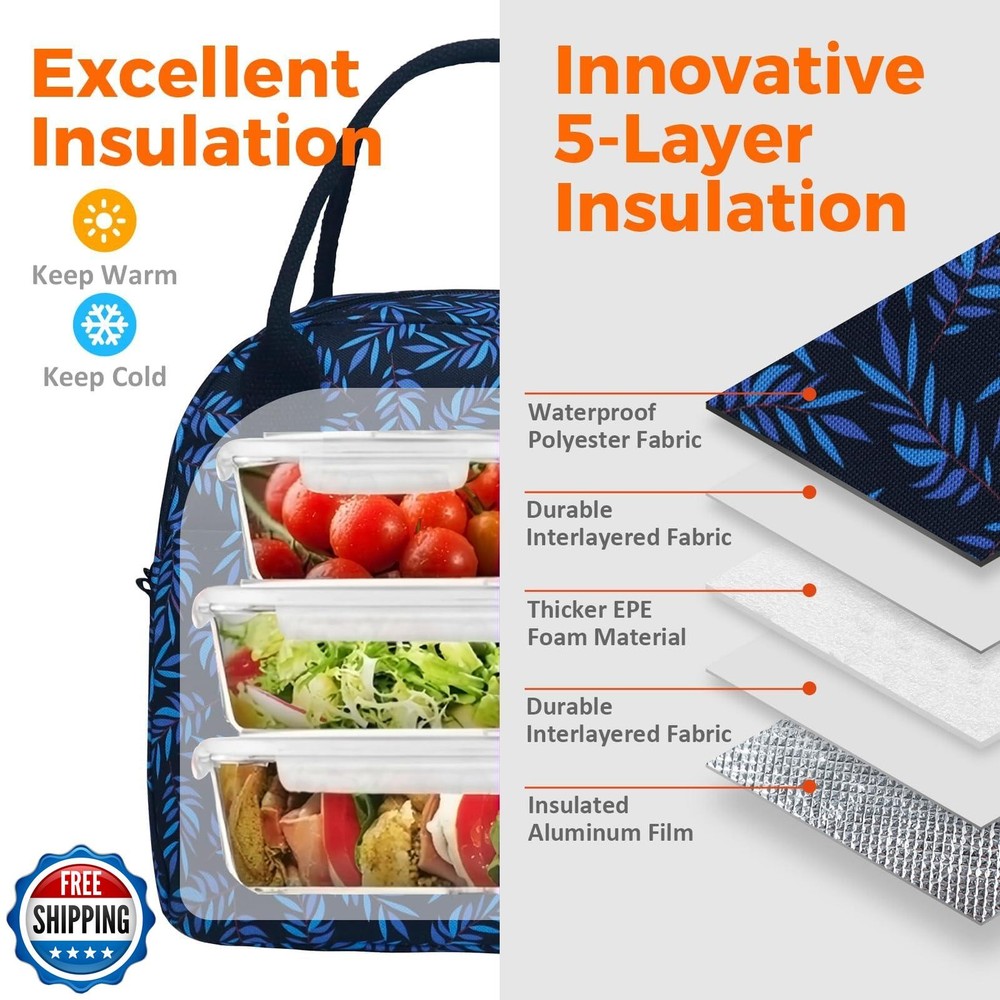 Moyad Insulated Lunch Bag for Women, Lunch Cooler Bag Thermal Lunch Tote for Adult for Work, Travel, Picnic, Blue Acacia Pennata and Black Features SPACIOUS AND VERSATILE - Maximize your mealtime with our spacious lunch bag, measuring 10.63" × 6.3" × 9.84" with a generous 10L capacity. It's perfect for packing everything from 12 cans of soda to a full lunch spread including sandwiches, salads, and fruits. Whether you're heading to the office, the beach, or on a road trip, it’s your go-to for stylishly carrying all your essentials. SUPERIOR TEMPERATURE RETENTION - Enjoy meals just the way you like them with our Moyad lunch bag's advanced 5-layer thermal insulation. Made from durable, waterproof materials and featuring an easy-to-clean aluminum foil lining, it keeps your food cold or warm for hours. Relish in the fresh taste of your meals, preserved perfectly for whenever you're ready. MULTI-FUNCTIONAL CONVENIENCE - Our lunch bag doubles as your everyday essential, offering a convenient front pocket for utensils, keys, and more. It transitions seamlessly from a cooler to a shopping bag, picnic bag, or even a chic makeup bag, providing versatility for every part of your day. ENHANCED DURABILITY & SMOOTH FUNCTIONALITY - Our lunch bag boasts a seamless top zip closure that effortlessly slides, guaranteeing a snag-free experience. Expertly constructed with a focus on long-term use, it features sturdy dual handles for unmatched reliability. STYLISH GIFT CHOICE - Elevate your gifting game with a Moyad lunch bag, featuring a delightful design and modern charm. It's a unique gift that combines elegance and functionality, making it a perfect match for anyone looking to make a stylish statement. Shipping Free & Fast Shipping: We offer free shipping to most of the USA with a normal delivery time of 3-7 days. However, due to the current situation, additional delivery time (up to 3 weeks) may be required for some items. Alternative Carriers: We may use alternative carriers (e.g., USPS, FedEx, UPS) to ensure your package arrives safely and on time. Due to the use of multiple carriers, we are unable to provide a tracking number automatically. Handling Time: Orders are processed and shipped within 1-2 business days of receiving cleared payment. Shipping Restrictions: Shipping to Alaska, Hawaii, Puerto Rico, Guam, and other US territories may incur shipping charges or delivery restrictions. Please contact us before ordering, or your order can be refunded/cancelled. State Restrictions: Certain items may not be shipped to California due to state regulations. Contact for Tracking Updates: If you require tracking updates or have any concerns about the delivery of your order, please feel free to contact us, and we will be happy to assist you. Return Policy 30-Day Hassle-Free Returns: If you are not completely satisfied with your purchase, you can return the item for free within 30 days of receiving it for a full refund or exchange. Easy Return Process: Contact us, and we will provide you with a prepaid return shipping label and detailed instructions. No Restocking Fee: There are no restocking fees for returns. However, the buyer is responsible for return shipping costs if the return is not due to a seller"s error. Refund Processing: Refunds will be processed within 1 business day of receiving the returned item in its original condition. Feedback Your feedback is extremely important to us. We strive to provide the best products and customer service possible. If you are satisfied with your purchase, please take a moment to leave us a positive review. If you have any concerns or issues with your order, please contact us before leaving negative feedback. We are committed to resolving any problems and ensuring your satisfaction. Contact Us If you have any questions or concerns, please feel free to reach out to our customer support team. You can contact us through the eBay messaging system. We are available Monday to Friday, 9:00 am to 5:00 pm EST, and we will do our best to respond to your inquiry within 24 hours. Thank you for supporting our small family business!