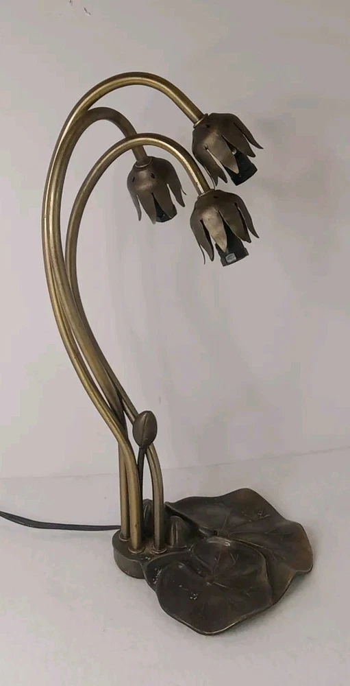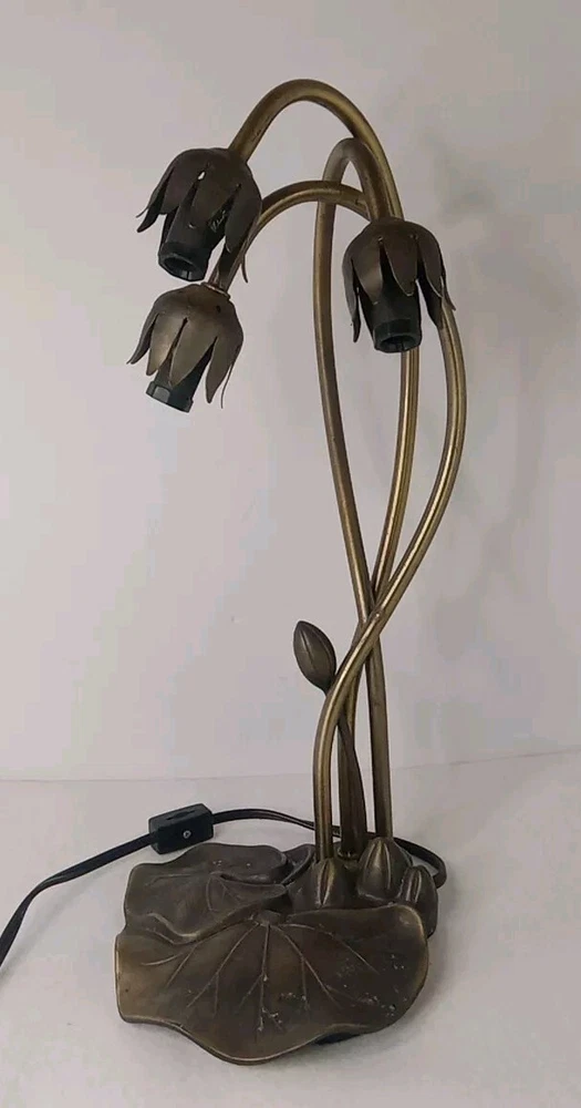 Used. Tested and working. As is. Add a touch of elegance to your living space with this stunning Mozza Pond Lily Bronze 16" Table Lamp by Astoria Grand. The lamp features a beautiful flower pattern and is made of high-quality bronze material with an antique finish. The lamp is corded electric and has a switch control feature. This medium-sized table lamp is perfect for any room in your home and will complement any decor style. The lamp has a white light color and black cord color, which adds to its unique and vintage design. This original piece is perfect for collectors and lovers of art deco style.