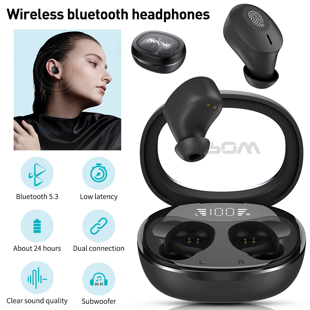 Wireless Earbuds 5.3 Bluetooth Mode Deep Bass LED Digital Display True Earphone in-Ear Waterproof TWS bean type headphones for Work Sports Black Feature: [Advanced Bluetooth 5.3 Technology] This wireless in-ear earphone adopts the latest Bluetooth 5.3 technology, providing faster transmission speed, lower power consumption and more stable signals, ensuring a smooth and pleasant listening experience. [LED Power Display & Long Playtime] Mpow Bluetooth 5.3 Wireless Headphones Earbuds Noise Cancelling in Ear Earphones Wireless Earbuds 5.3 Bluetooth Mode Deep Bass LED Digital Display True Earphone in-Ear Waterproof TWS bean type headphones for Work Sports Black Feature: [Advanced Bluetooth 5.3 Technology] This wireless in-ear earphone adopts the latest Bluetooth 5.3 technology, providing faster transmission speed, lower power consumption and more stable signals, ensuring a smooth and pleasant listening experience. [LED Power Display & Long Playtime] The Bluetooth earbuds are equipped with an LED power display for the charging case and earbuds, which can provide up to 48 hours of music playback time. The charging case with a 300mAh battery capacity can fully charge the earbuds 7 times, and each earbud can play for 3 hours on a single charge. (It only takes 2 hours to charge the charging case) [Simple and intelligent operation] This lightweight Bluetooth earphone is designed for simple and intuitive control. Intelligent touch control allows you to switch songs, adjust the volume, answer or reject calls with a single touch,and enjoy seamless control. [Convenient master-slave switching] This wireless Bluetooth earplug has the flexibility to use earplugs in single mode or dual mode. The master-slave switching function allows you to easily Swith between single ear and both ears. Picking up any earplug and you can hear stereo sound. [Immersive high quality sound] This miniature wireless earplug provides unparalleled sound quality, with strong bass, natural midrange and clear high frequency to bring dynamic audio experience. Effective noise filtering ensures that every detail of music or movies can be heard. [IPX4 Waterproof ] This wireless in-ear earplug is equipped with IPX4 Waterproof rating, which can be waterproof and rainproof, so it is very suitable for you to use when traveling or exercising, and you can enjoy wonderful music anytime and anywhere. Specifications: Bluetooth Version: V5.3 Bluetooth Range: 33 feet without obstacle Support Profile: HSP/HFP/A2DP/AVRCP Noise Cancellation:DSP Earbud Battery: 30mAh Charging Case Battery: 300mAh Charge Time: 1-1.5 hour Case Charging port: Type-C Package : 1 x Pair true wireless earbuds 1 x Charging case 3 x Pair Silicone eartips (S, M,L. Size M is preinstalled on earbuds.) 1 x Type-C charging cable 1 x User manual Item Specifics Number of Earpieces : Double Color : Black Colour : Black Brand : Mpow Form Factor : In-Ear Only Type : Earbud (In Ear) Bluetooth Version : 5.3 Wireless Technology : Bluetooth Connectivity : Bluetooth Features : Built-in Microphone HD Voice Noise Cancellation Rechargeable Battery Stereo Wireless Microphone Type : Built-In Model : S46 Payment We Accept Paypal Only. Shipping We will ship to your eBay address. Please make sure your eBay address is correct before you pay. We will ship out your order within 2 business days after receiving your verified payment (Excluding Weekends and Public Holidays)! Item located in the USA, We will ship out your order via USPS or UPS . It will take 3-8 business days to you. If you can't track your parcel or didn't receive your parcel, please kindly contact with us. Returns We offers 30-day refund, and 1 year manufactured warranty on all products, Warranty period starts from the date of purchase.We are not responsible for any kind of compatible issues, or problems related to any specific software or games. Please check our description carefully before purshing. If there is not anything wrong with our product or description, we wont bear the return shipping. In order to return an item you must contact us to request a Return Merchandise Authorization Number (RMA) Contact Us We try to make sure you have a pleasant shopping experience with us, so that we could do more business with you. If there is any dissatisfaction, please email us. We will try our best to resolve the issues. Please give us the opportunity to resolve any problem. PS. you may contact us by 'Ask a question' FM tranimitter On Sale Store Promotion You may like Store Category Store Home Home&Garden (G&V) Big discount Other Hot Item Wireless Bluetooth 5.0 Headset Earpiece Driving Trucker Earbuds Noise Cancelling USD 19.60 Bluetooth Headset 5.0 TWS Wireless Earphones Earbuds Stereo Ear Hook Headphones USD 20.37 Bluetooth 5.0 Headset Wireless Earphones Earbuds TWS Stereo Headphones Ear Hook USD 23.48 Sweatproof Retractable Headset Wireless Headphone Bluetooth Earbuds Neckband Mic USD 25.99 Wireless Bluetooth 5.1 Earpiece Trucker Headset Dual Mic Earbud Noise Cancelling USD 14.99 New List Item Mpow Waterproof Bluetooth 5.4 Earbuds Stereo Sport Wireless Headphones with Hook USD 26.25 Mpow Bluetooth 5.3 Earbuds Stereo Waterproof Sport Wireless Headphone with Hook USD 26.29 Mpow Bluetooth Headset TWS Wireless Earphones Earbuds Stereo Headphones Ear Hook USD 23.16 Mpow Bluetooth 5.3 Earbuds Stereo Waterproof Sport Wireless Headphone with Hook USD 23.47 Mpow Wireless Bluetooth 5.0 Headset Sports Headphones Waterproof Earbuds TWS USD 23.85 Mpow Bluetooth 5.3 Wireless Headphones Earbuds Noise Cancelling in Ear Earphones Wireless Earbuds 5.3 Bluetooth Mode Deep Bass LED Digital Display True Earphone in-Ear Waterproof TWS bean type headphones for Work Sports Black Feature: [Advanced Bluetooth 5.3 Technology] This wireless in-ear earphone adopts the latest Bluetooth 5.3 technology, providing faster transmission speed, lower power consumption and more stable signals, ensuring a smooth and pleasant listening experience. [LED Power Display & Long Playti