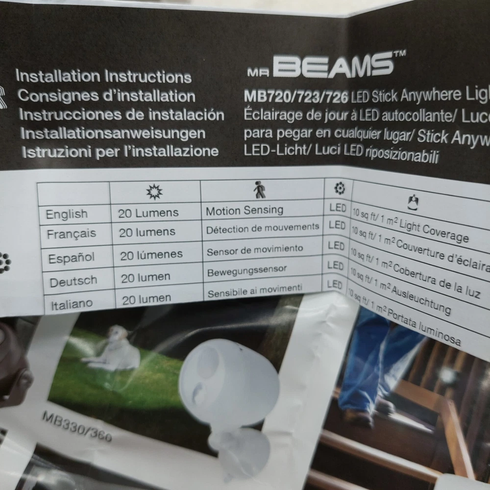 UPC: 837316007238 Lighting Technology: LED gtin13: 837316007238 Brand: Mr Beams MPN: MB723 Manufacturer: Mr. Beams Type: Not Applicable PartNumber: MB723 Power Source: Battery Model: Mr. Beams MB 723 MB723 Color: White Sensor Type: Motion