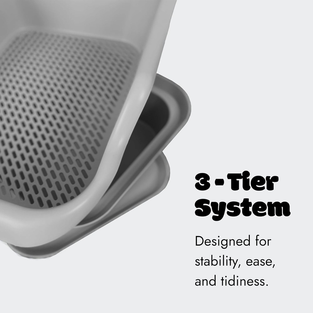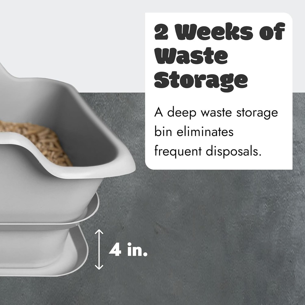 LARGE SPACE OF WASTE STORAGE: Sifter box positioned above the waste storage tray creates 4-inch space for 7-14 days of waste storage, effectively avoiding the need for daily waste disposal. EFFECTIVE ODOR CONTROL: Utilizes the natural byproduct of wood pellets - sawdust - to cover and encapsulate waste in the storage pan, sealing in odors for up to 7 days, ensuring effective odor elimination. TAILOR-MADE FOR NORTH AMERICAN HOMES: Specifically crafted for homes with weekly garbage collection, our 3-layer system includes a spacious sifting pan for multi-cat households and a smart middle storage box for convenient daily waste storage. EFFORTLESS ONE-HAND SCOOPING: Featuring a front-edge handle on the sifting pan, it allows for easy one-hand scooping into the lower storage pan, simplifying your cleaning routine. EASY-TO-CLEAN DESIGN FROM JAPAN: Inspired by the attention to detail in Japanese design, Mr. Catman litter box is a breeze to clean. With smooth, all edge-free surfaces made from non-stick plastic, it prevents leakage and significantly reduces cleaning time, making upkeep simple and hassle-free.
