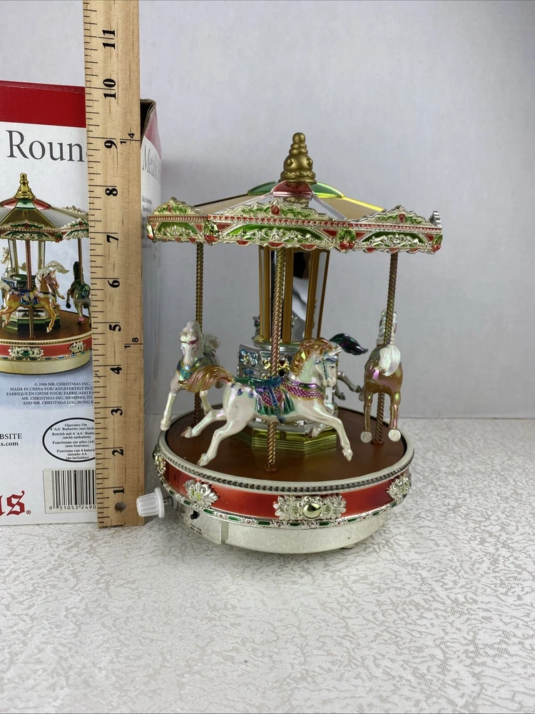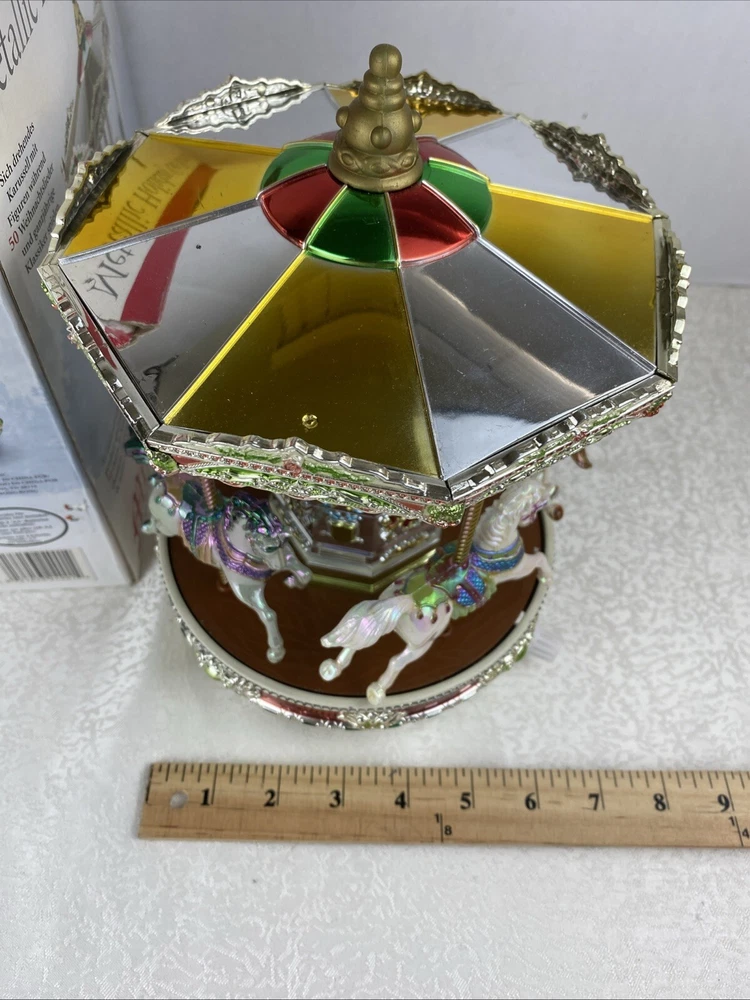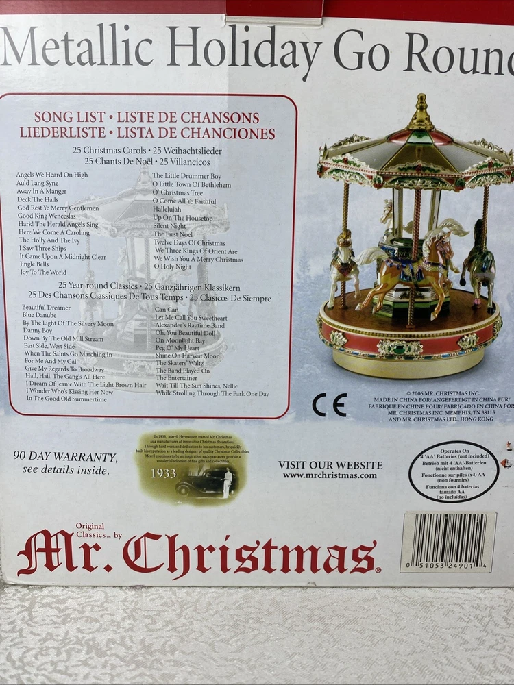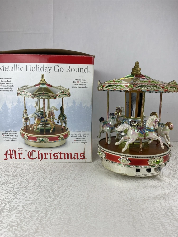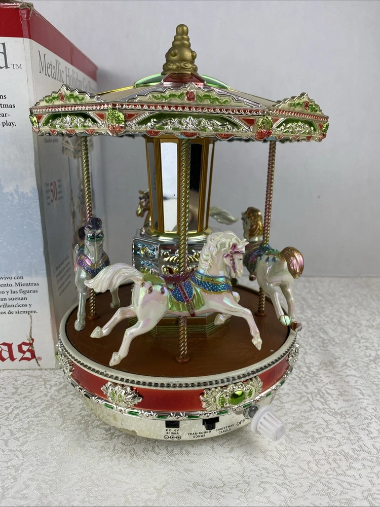 Metallic Holiday Go Around 4 Horses Tested Works 2006 Mr. Christmas Home Decor Play 25 Songs With The Box Pre-Owned Review Photos For Details And Measurements