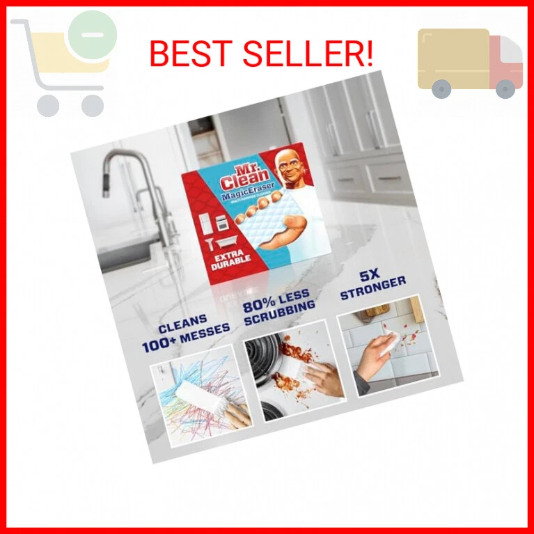 Mr. Clean Magic Eraser, Extra Durable, Multi Purpose Cleaner, Shoe, Bathroom, Shower, and Car Window and Windshield Cleaner, Cleaning Pads, 10 Count - EXTRA DURABLE SCRUBBER: Mr. Clean Magic Eraser Extra Durable scrubber is 5 times stronger*. It requires 80% less scrubbing* *Cleaning performance vs. the leading all-purpose bleach spray - 2. VERSATILE CLEANING: This melamine sponge is a versatile cleaner, effective on surfaces such as walls, bathtubs, oven doors, and can fight marks on light switches, doors and much more - 3. POWERFUL CLEAN: The Mr. Clean Magic Eraser provides a powerful clean with water alone, making it a convenient an effective cleaner - 4. VARIETY OF USES: Magic Erasers are also available in Ultra Thick, Ultra Foamy, Ultra Bath and Original forms, catering to a wide range of cleaning needs The Fine Print Payments We accept the following payment methods Visa/Mastercard PayPal Apple Pay Google Pay Please pay as soon as possible after winning an auction, this will allow for quicker shipping times! Returns We accept returns . You can return unopened items in the original packaging within 30 days of your purchase with receipt or proof of purchase . If 30 days or more have passed since your purchase , we cannot offer you a refund or an exchange . Upon receipt of the returned item , we will fully examine it and notify you via email , within a reasonable period of time , whether you are entitled to a return . If you are entitled to a return , we will refund your purchase price, and a credit will automatically be applied to your original method of payment . Only regular priced items may be refunded . Sale items are non -refundable . Buyer is responsible for return shipping costs + a 20% restocking fee. Shipping Shipment processing time All orders are processed within 2-3 business days. Orders are not shipped or delivered on weekends or holidays. If we are experiencing a high volume of orders, shipments may be delayed by a few days. Please allow additional days in transit for delivery. If there will be a significant delay in shipment of your order, we will contact you via email or telephone. Shipping rates & delivery estimates Shipping charges for your order will be calculated and displayed at checkout.