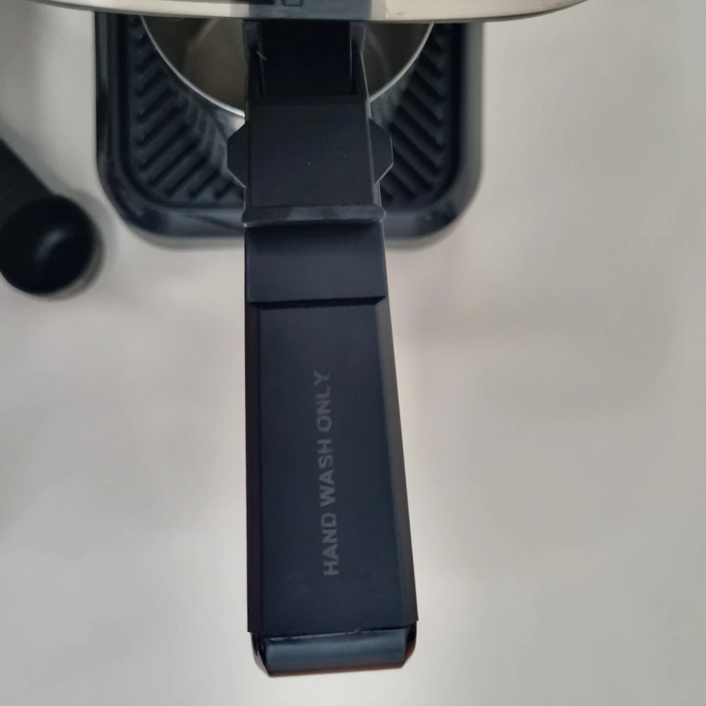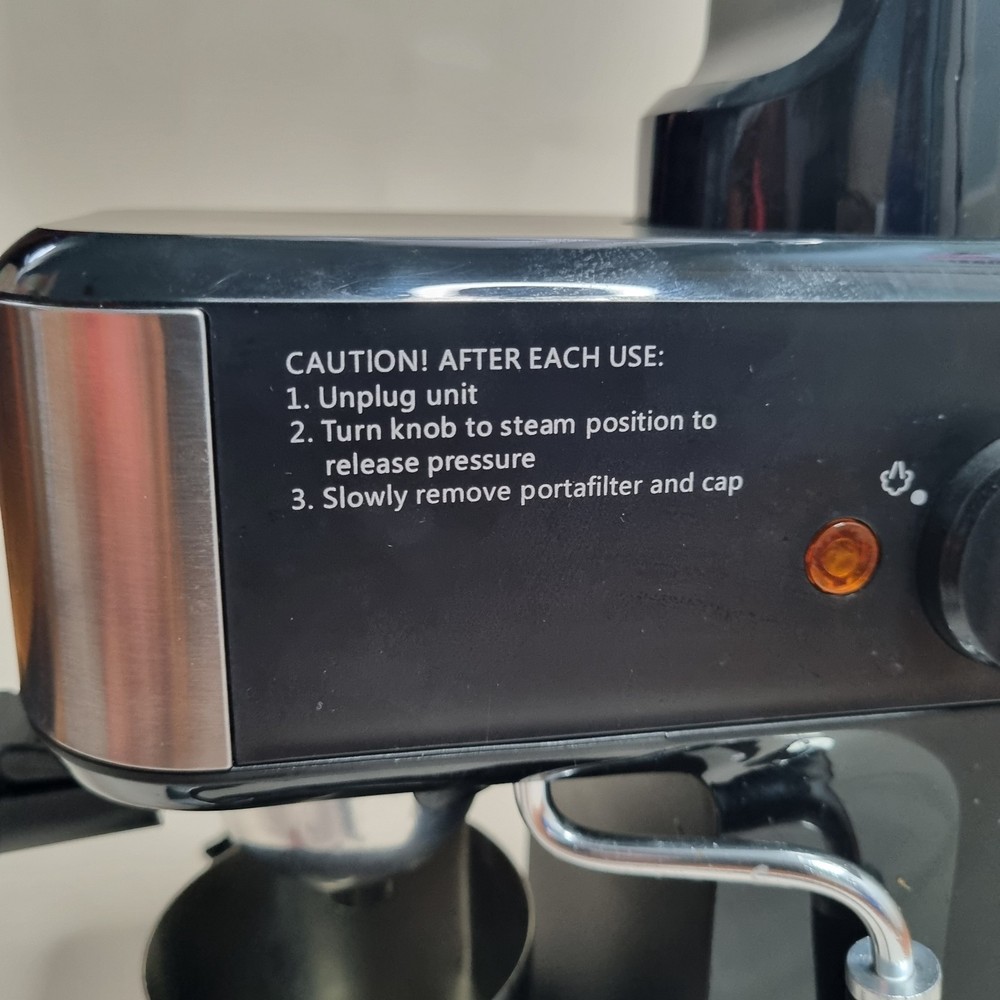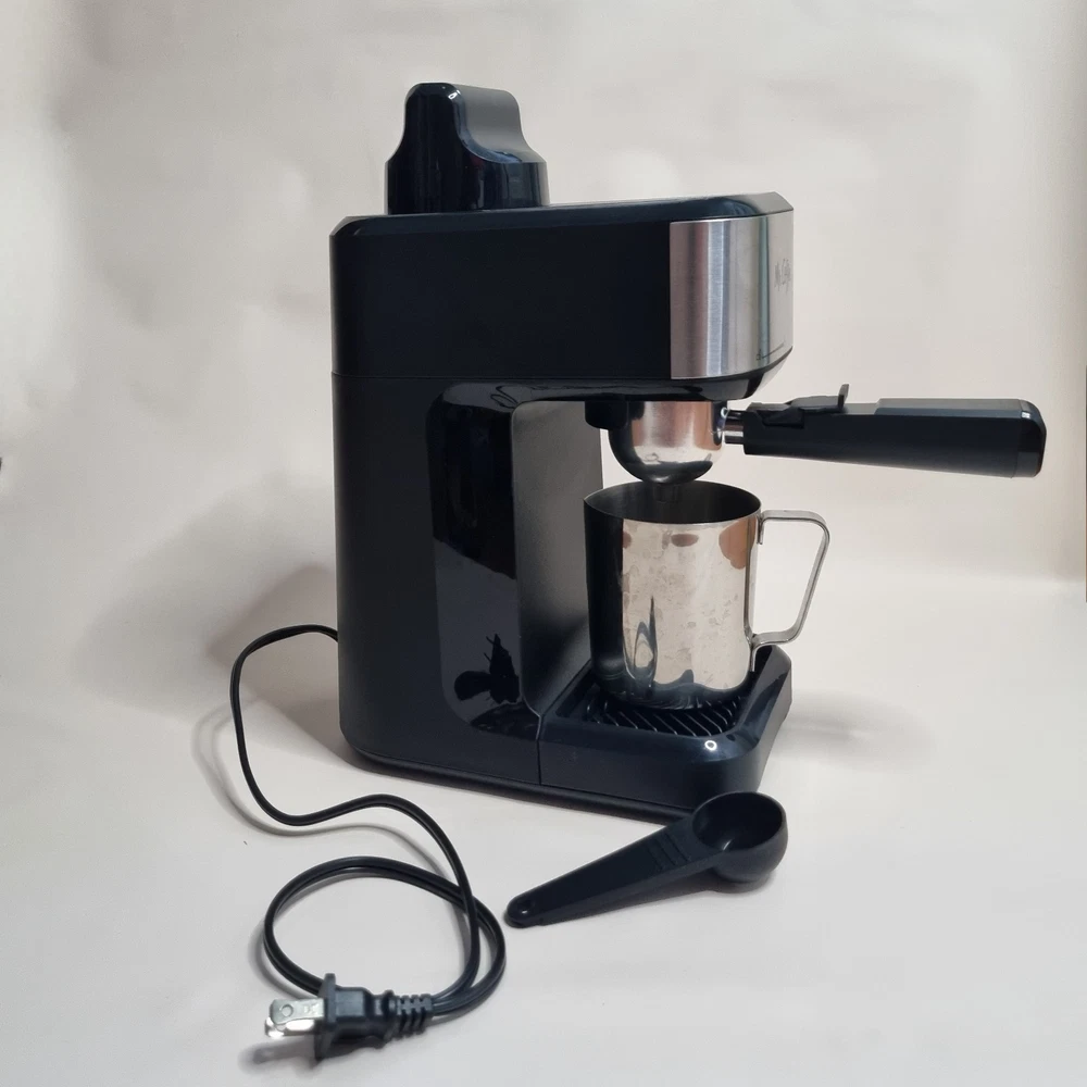 Mr. Coffee Espresso Machine Black & Stainless Steel with Milk Frother Wand Get your daily dose of delicious espresso, cappuccino, or latte with this Mr. Coffee Espresso Maker! This compact and stylish machine features a sleek black and stainless steel design that will look great in any kitchen. It comes equipped with a steam frothing wand, perfect for creating creamy milk for your favorite lattes and cappuccinos. The included portafilter and tamper (spoon with tamper end) make it easy to brew your espresso shots. Key Features: Versatile Brewing: Brews espresso, and with the integrated steam wand, you can easily froth milk for cappuccinos and lattes. Easy to Use: Simple controls for brewing and steaming. Steam Wand: Articulates for convenient milk frothing. Removable Drip Tray: For easy cleaning. Compact Design: Ideal for smaller kitchens or limited counter space. Included Accessories: Comes with a portafilter, a metal frothing pitcher, and a measuring scoop with a tamper end. Important Safety & Usage Information (From product labels): Warning (Water Reservoir Cap): To avoid injury, relieve pressure before removing the cap or portafilter. Use water only. Caution (After Each Use): Unplug unit. Turn knob to steam position to release pressure. Slowly remove portafilter and cap. Portafilter Handle: Hand wash only. What's Included: Mr. Coffee Espresso Machine Portafilter Stainless Steel Frothing Pitcher Measuring Scoop with Tamper Why Buy This Machine? This Mr. Coffee espresso maker is perfect for coffee enthusiasts who want to enjoy cafe-quality drinks at home without a hefty price tag. It's user-friendly and delivers satisfying results.
