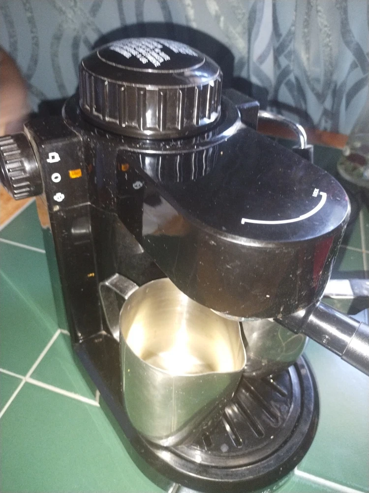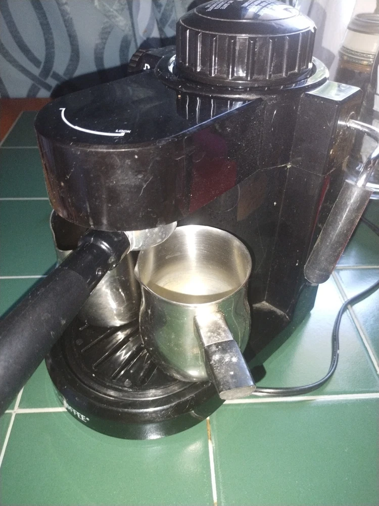 Get ready to enjoy café-style coffee at home with this Mr. Coffee Expresso and Cappuccino Coffee Maker. This machine comes in a sleek black color and is perfect for making cappuccino and espresso coffee. It has a removable drip tray, water tank, and frother to make your coffee-making experience easier and more convenient. With a capacity of 4 cups, you can make coffee for the whole family or a group of friends. This machine is easy to use and comes with a range of features that make it stand out from other coffee makers. It is a great addition to any kitchen and is perfect for coffee lovers who want to enjoy their favorite coffee at home anytime they want. handle of frothe jar broken it is still usable. there in free organic coffee from Mexico! best deal of the day!