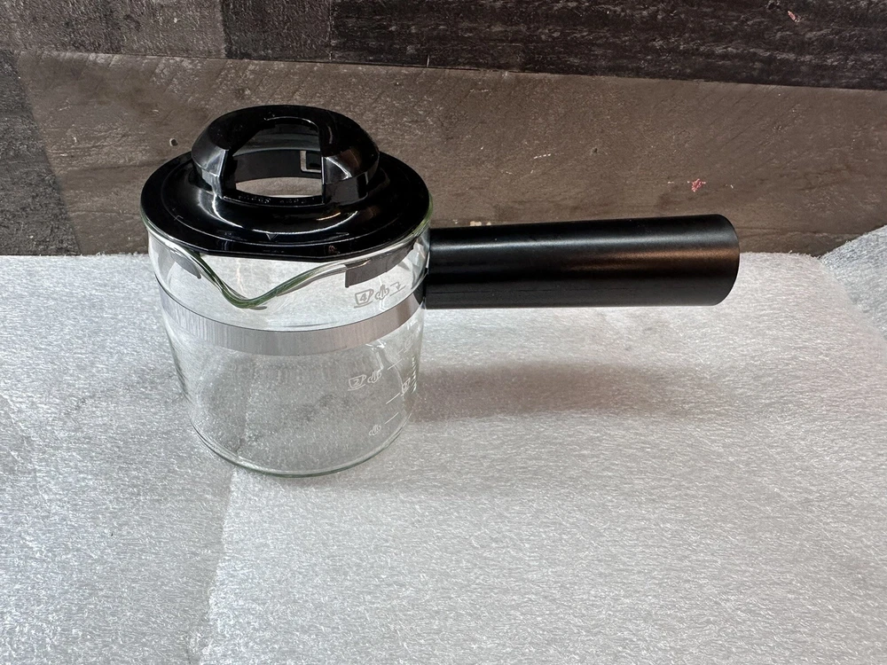 Mr. Coffee Steam Espresso Maker BVMC-ECM27 Replacement Carafe w/ Lid is in very good condition, with light scuffs on the black plastic lid. It has been hand washed and overall looks great. Carafe has been well protected to prevent damage during shipment. This will ship via USPS Ground Advantage to most destinations.