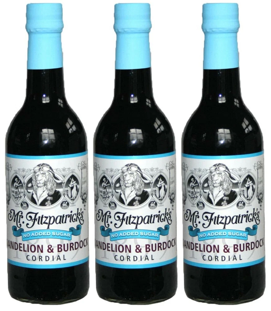 Mr Fitzpatricks Dandelion & Burdock No Added Sugar Cordial Non-Alcoholic Drink 3x 6x 12x500ML WITH NO ADDED SUGAR. A fabulous blend of Burdock Root and Dandelion infusions with added botanical notes create the unmistakeable taste of this traditional, mellow classic beverage. All flavourings and colourings are from natural sources. We advise dilution is best at 1 part cordial to 4-5 parts water and all of our range are lovely with hot, cold and sparkling water, perfect cocktail base, splash mixer etc, they make super milkshakes and tasty drizzles for desserts!