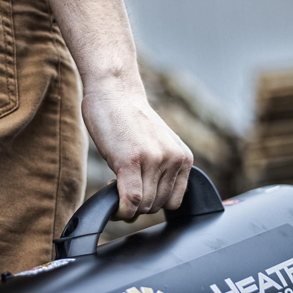 The Mr. Heater 60,000 BTU Propane Forced-air Heater. SAVE BIG! Jobsite-tough and ready to fend off frozen fingers. This rugged Propane Heater is built for the jobsite. Just hook up to your propane tank, plug in to any 110VAC outlet and you've got reliable, steady heat for hours. Variable 30,000-60,000 BTU output. Heats up to 1,250 sq. ft.. Runs on a 20-lb. propane tank. 14-hr. max. runtime on full tank. High temperature limit switch. QBT technology makes this Heater 50% quieter than a standard propane heater. Rugged and durable steel construction. Economical, efficient and clean burning. Heavy-duty high output fan. Continuous ignition. 10' hose and regulator included. CSA Certified. QBT Technology - 50% Quieter than a standard propane heater 60,000 BTU Propane Forced-air Heater" Variable 30,000-60,000 BTU Output (Runs Up To 14 hrs on 20 lb. tank (low setting)) Heats Up To 1,500 Sq.Ft. Continuous ignition