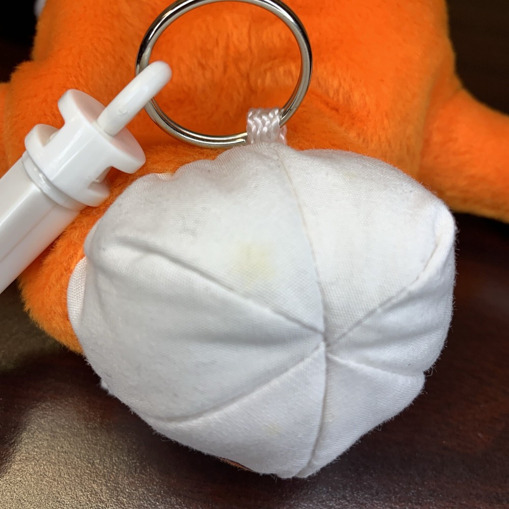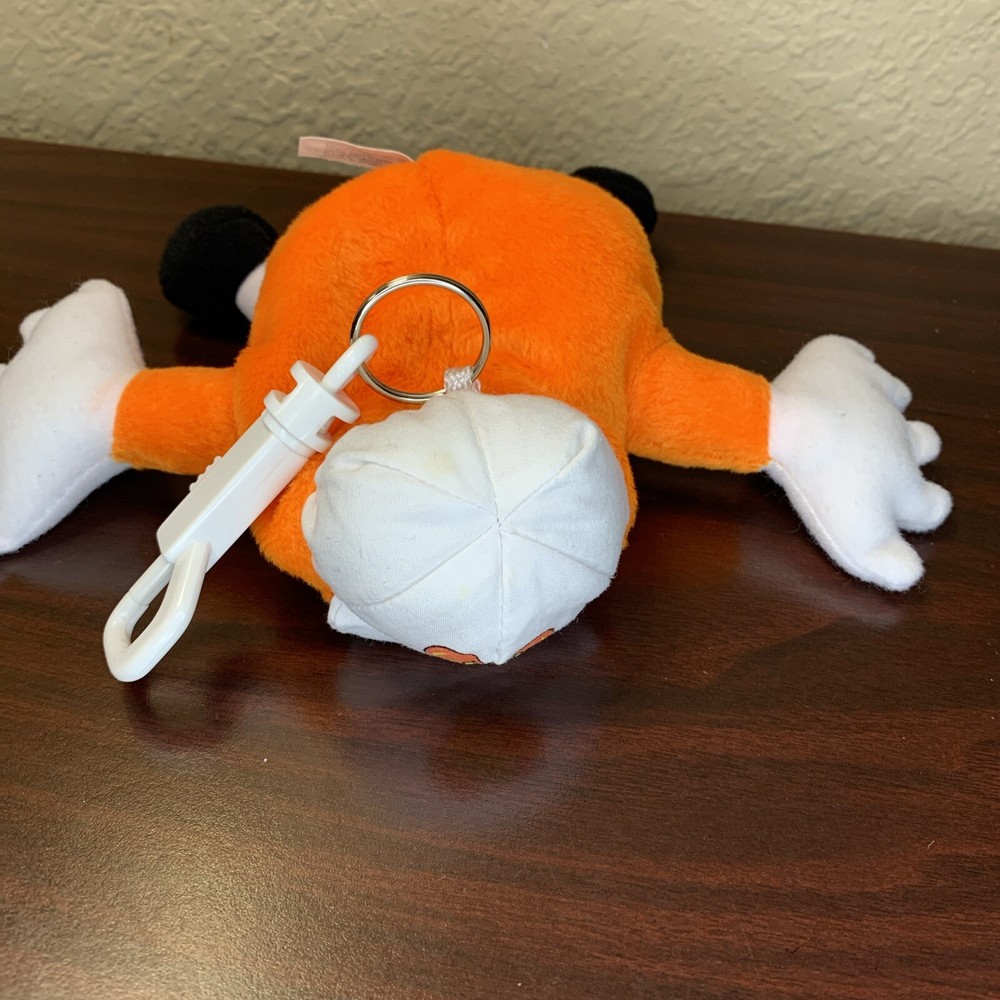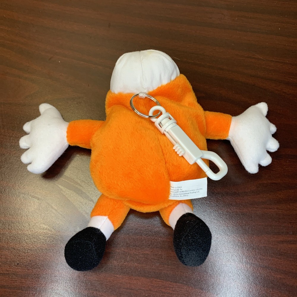 Mr. Jelly Belly Tangerine 7" vintage bean bag plush stuffed with clip, 1999 Approximate dimensions: 7" long, 4" wide, and 2" thick Has a slight stain on his cap that you probably wouldn't have noticed if I didn't point it out.