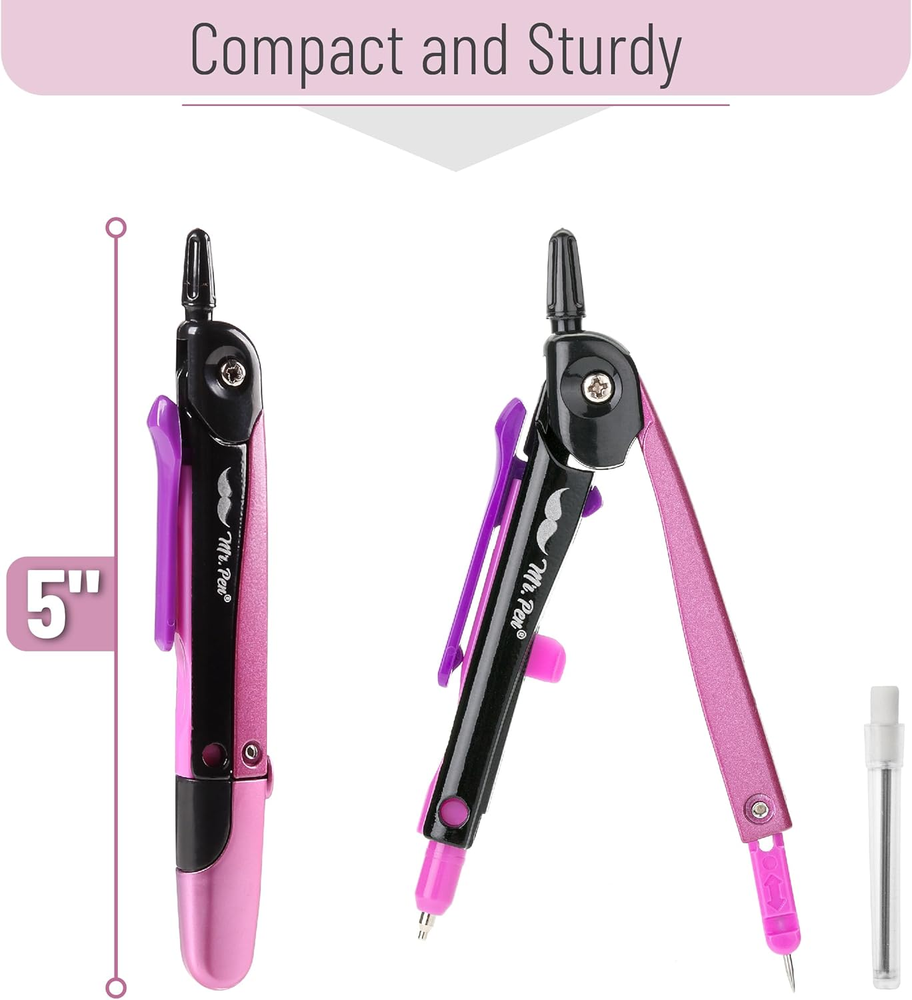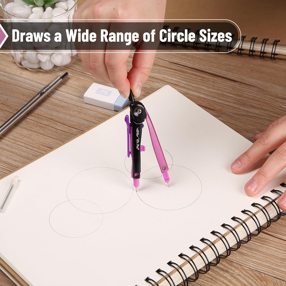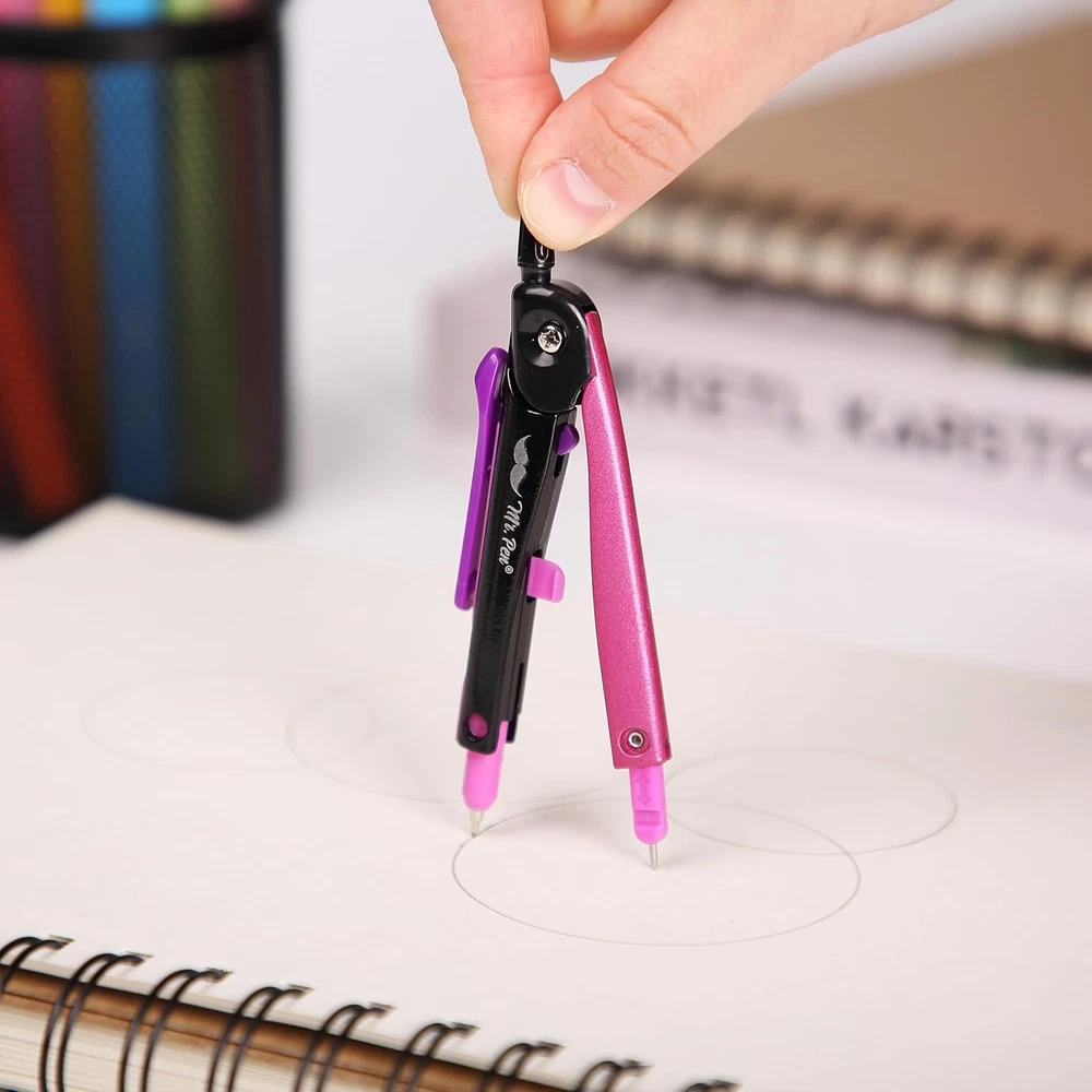 Mr. Pen compass is engineered for accuracy and ease, featuring a sleek design that allows for precise radius settings and smooth adjustments. Perfect for geometry, drafting, and art, this compass is capable of drawing circles and arcs with ease and precision. Built with a robust metallic frame and a vibrant, eye-catching pink finish, this compass withstands the rigors of classroom and professional use. The pen-style grip provides a familiar feel, making it easy to control for both students and professionals, while the center wheel offers fine adjustments. This compass set includes a spare lead tube, ensuring that you're always prepared for any project without the need for immediate refills. Mr. Pen compass is engineered for accuracy and ease, featuring a sleek design that allows for precise radius settings and smooth adjustments. Perfect for geometry, drafting, and art, this compass is capable of drawing circles and arcs with ease and precision. Built with a robust metallic frame and a vibrant, eye-catching pink finish, this compass withstands the rigors of classroom and professional use. The pen-style grip provides a familiar feel, making it easy to control for both students and professionals, while the center wheel offers fine adjustments. This compass set includes a spare lead tube, ensuring that you're always prepared for any project without the need for immediate refills.