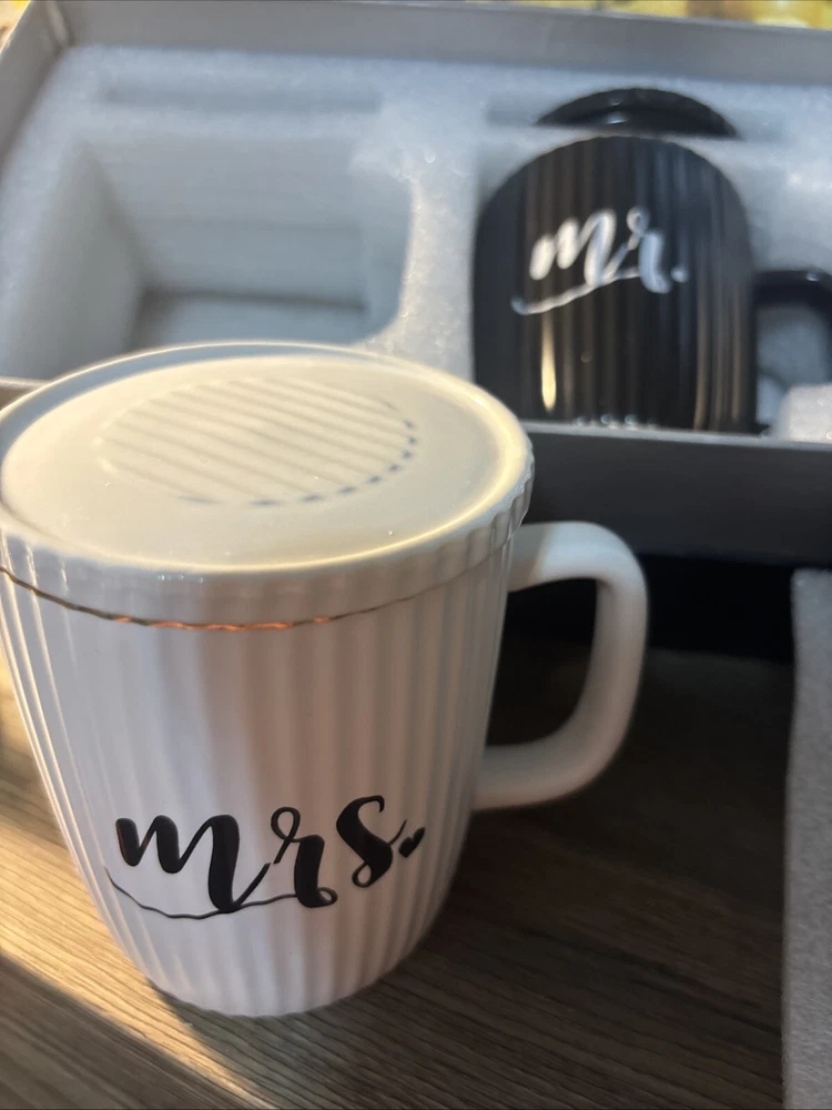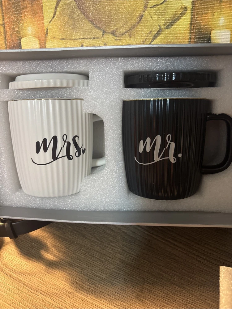 Mr and Mrs Coffee Tea Mugs Set - Wedding Engagement Gifts for Bride and Groom. Condition is New. Shipped with USPS Ground Advantage.