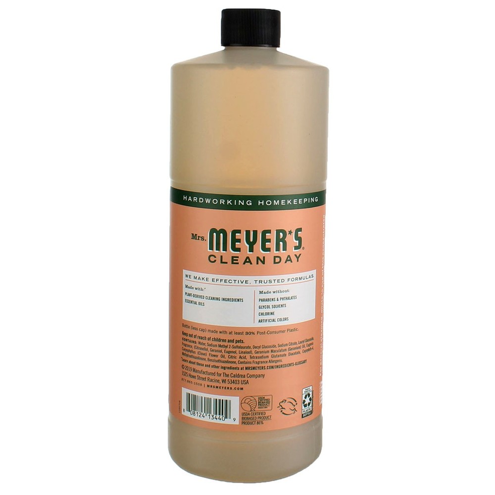 Product Description Mrs. Meyer's Clean Day Multi-Surface Concentrate features gentle yet strong cleaning agents, while also providing a special, singular scent for your entire home. The geranium scented cleaner uplifts and soothes with its refreshing floral scent. Its blossoms so bold and cheery to see, and clearly quite rosy to smell. This garden-fresh scented multi purpose cleaner effectively cleans non-porous multi-surfaces such as floors, counters, and surfaces in bathrooms, kitchens or any room both inside and outside. This biodegradable cleaner is concentrated and hard-working. It contains plant derived and other thoughtfully chosen ingredients. Made without parabens, phthalates, animal derived ingredients and always cruelty free. Requires dilution for use. Available in other garden inspired scents and biodegradable products such as dish soaps and laundry detergents! Mrs. Meyer's – rooted in goodness. Hard-working multi surface cleaner concentrate that is tough on dirt Biodegradable cleaners for all non-porous multi-surfaces Garden-fresh geranium cleaner has an uplifting and pleasant rosy scent Safe to use as a floor cleaner, tile cleaner, on countertops, walls, and more Mrs. Meyer's produces cruelty free cleaners. None of our products are tested on animals Ingredients Water, Decyl Glucoside, Sodium Methyl 2-Sulfolaurate, Polysorbate 20, Sodium Citrate, Geranium Maculatum (Geranium) Oil, Rosa Centifolia (Rose) Flower Oil, Eugenia Caryophyllus (Clove) Flower Oil, Fragrance, Citric Acid, Tetrasodium Glutamate Diacetate, Sodium Sulfate, Sodium Hydroxide, PEG-5 Cocoate, Methylisothiazolinone, Benzisothiazolinone Product Description Mrs. Meyer's Clean Day Multi-Surface Concentrate features gentle yet strong cleaning agents, while also providing a special, singular scent for your entire home. The geranium scented cleaner uplifts and soothes with its refreshing floral scent. Its blossoms so bold and cheery to see, and clearly quite rosy to smell. This garden-fresh scented multi purpose cleaner effectively cleans non-porous multi-surfaces such as floors, counters, and surfaces in bathrooms, kitchens or any room both inside and outside. This biodegradable cleaner is concentrated and hard-working. It contains plant derived and other thoughtfully chosen ingredients. Made without parabens, phthalates, animal derived ingredients and always cruelty free. Requires dilution for use. Available in other garden inspired scents and biodegradable products such as dish soaps and laundry detergents! Mrs. Meyer's ‚Äì rooted in goodness. Hard-working multi surface cleaner concentrate that is tough on dirt Biodegradable cleaners for all non-porous multi-surfaces Garden-fresh geranium cleaner has an uplifting and pleasant rosy scent Safe to use as a floor cleaner, tile cleaner, on countertops, walls, and more Mrs. Meyer's produces cruelty free cleaners. None of our products are tested on animals Ingredients Water, Decyl Glucoside, Sodium Methyl 2-Sulfolaurate, Polysorbate 20, Sodium Citrate, Geranium Maculatum (Geranium) Oil, Rosa Centifolia (Rose) Flower Oil, Eugenia Caryophyllus (Clove) Flower Oil, Fragrance, Citric Acid, Tetrasodium Glutamate Diacetate, Sodium Sulfate, Sodium Hydroxide, PEG-5 Cocoate, Methylisothiazolinone, Benzisothiazolinone Disclaimer The product descriptions and instructions provided by Vitabox are for informational purposes only and are qualified in their entirety by the information available from manufacturers of the products. You should carefully read all product packaging, and contact the manufacturer with any questions before using a product. While we endeavor to ensure that product descriptions are current, manufacturers sometimes change their products. We are not liable for inaccuracies or misstatements about products. We do not provide medical advice or recommendations. You should not use the information provided by Vitabox for diagnosing or treating a health problem or disease. If you have or suspect that you have a medical problem, immediately contact your health care provider. Information and statements regarding dietary supplements have not been evaluated by the Food and Drug Administration or any other government agency and are not intended to diagnose, treat, cure, or prevent any disease.